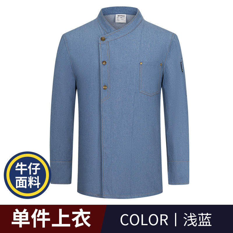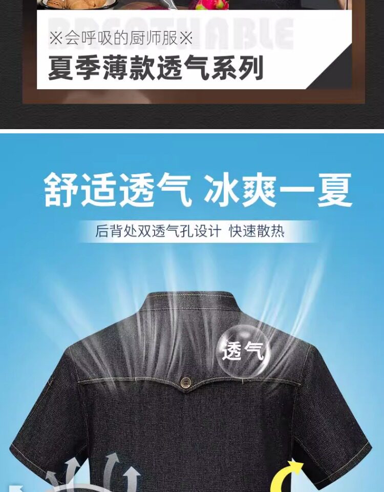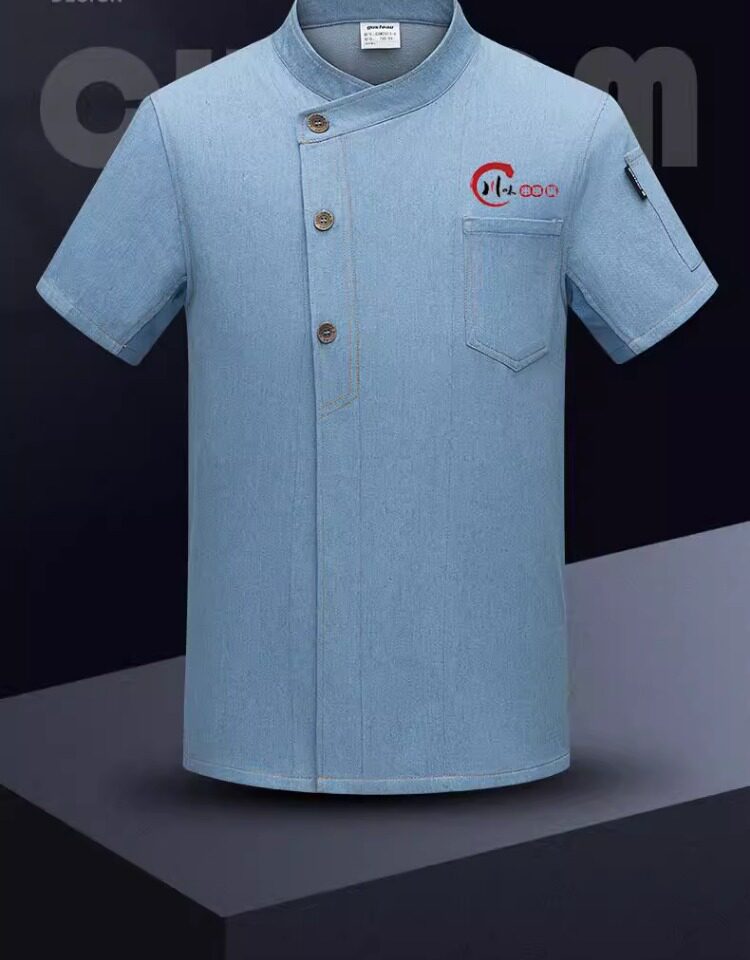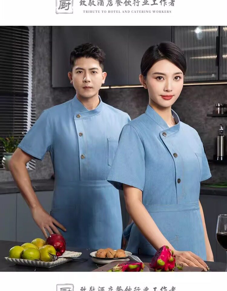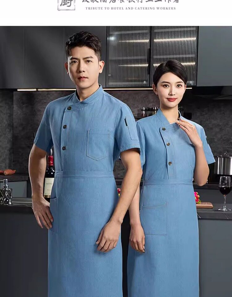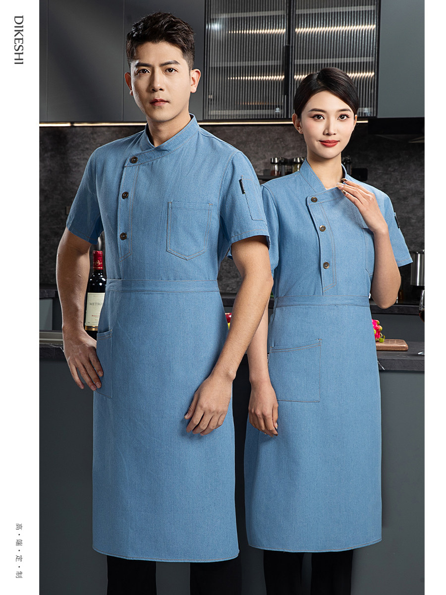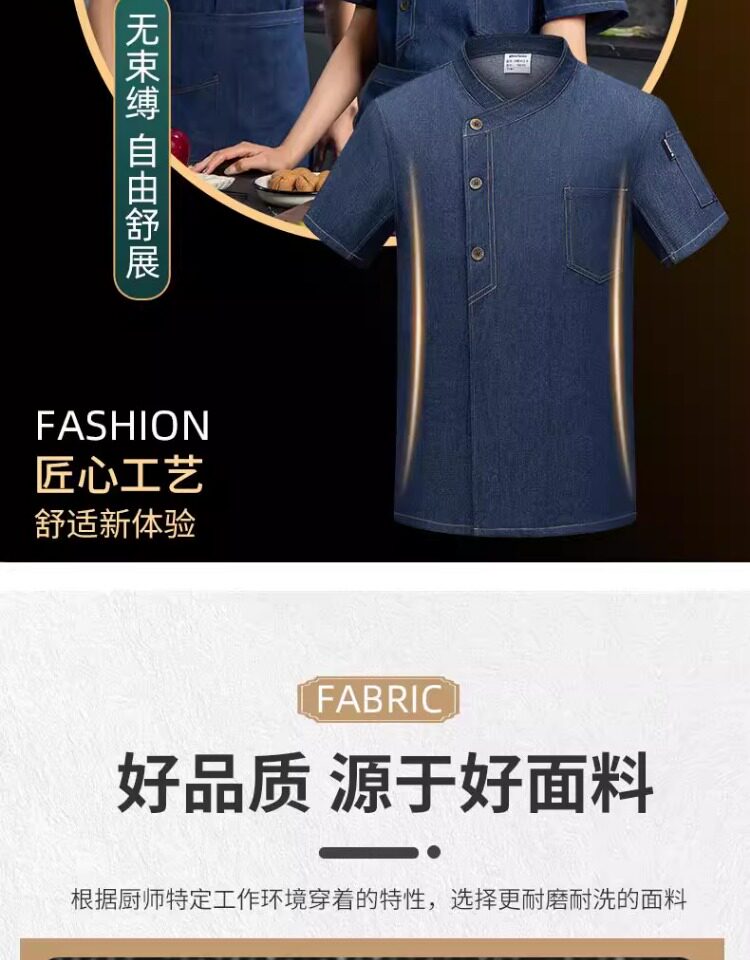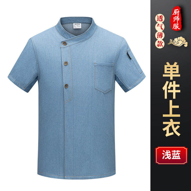 高端牛仔厨师工作服西餐厅饭店酒店后厨房餐饮专用短袖工装制服男
