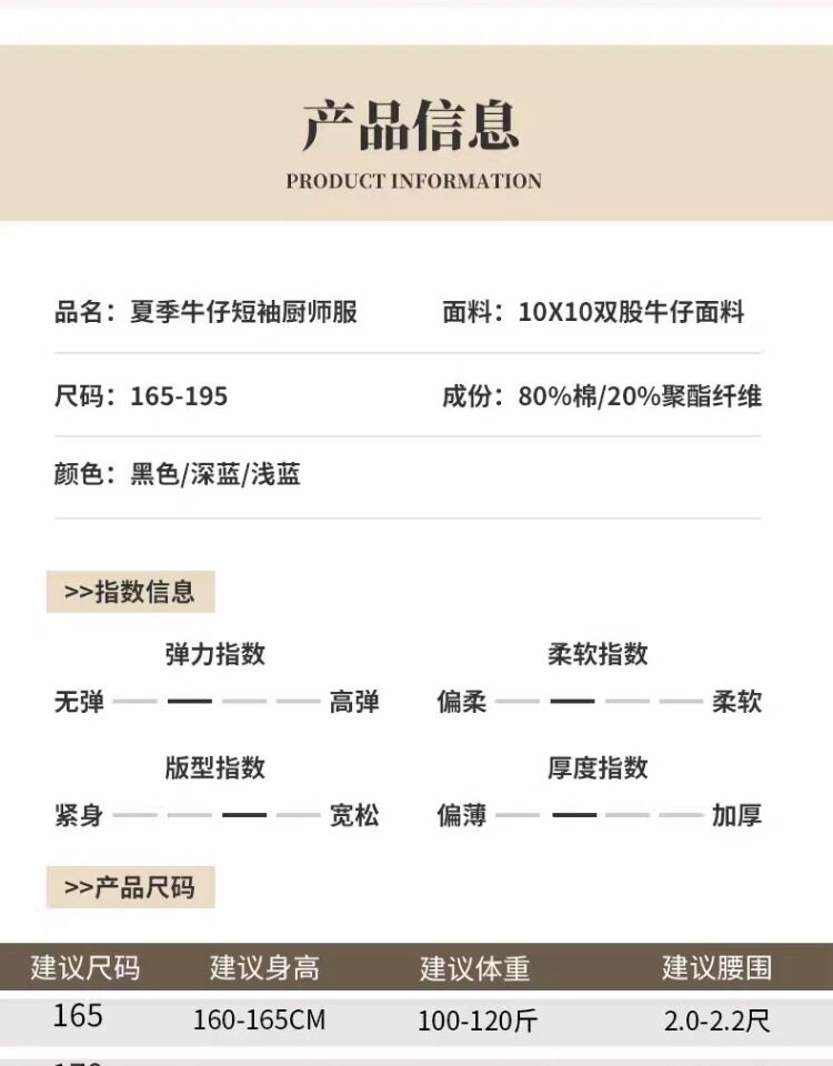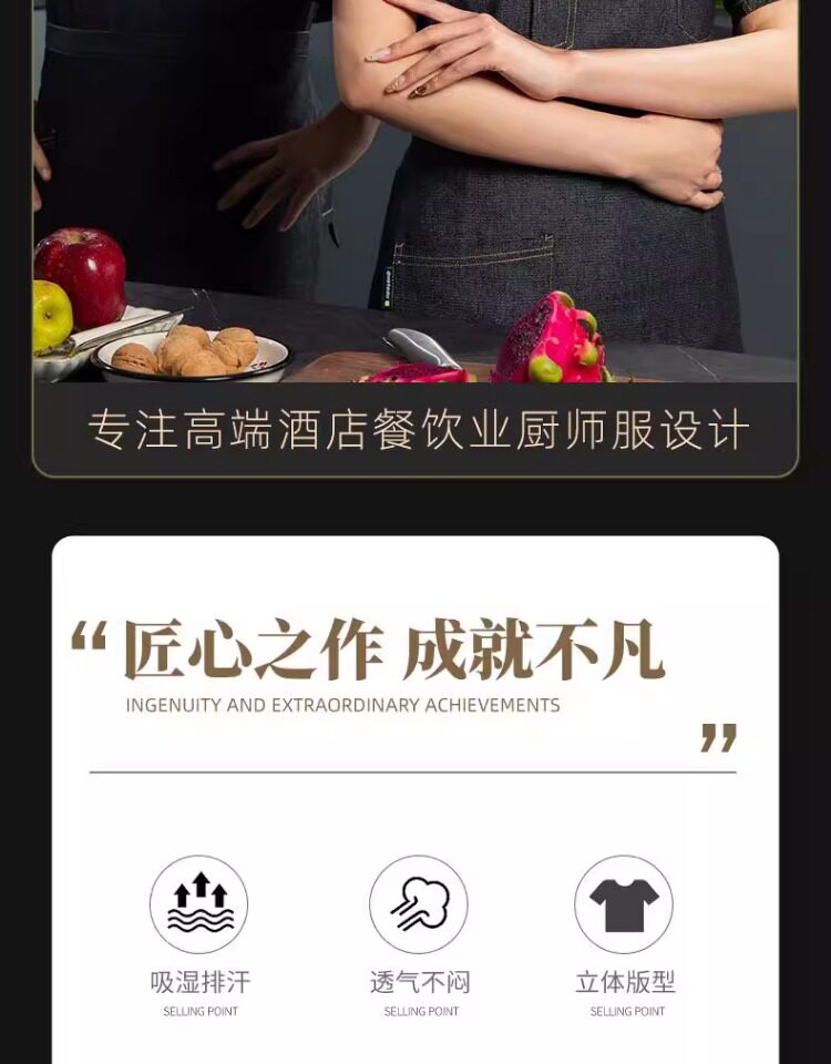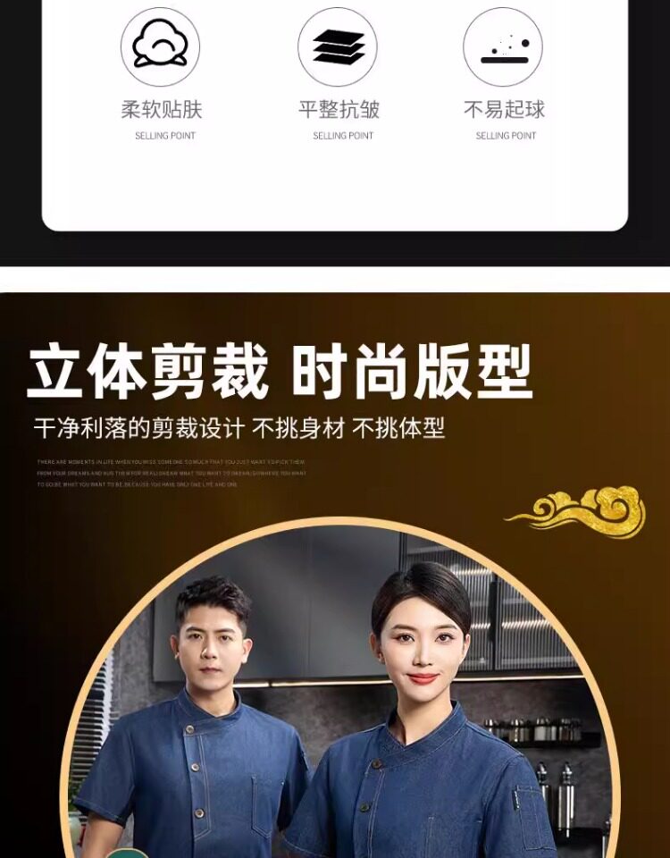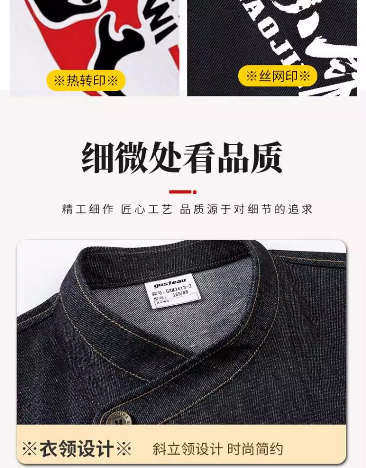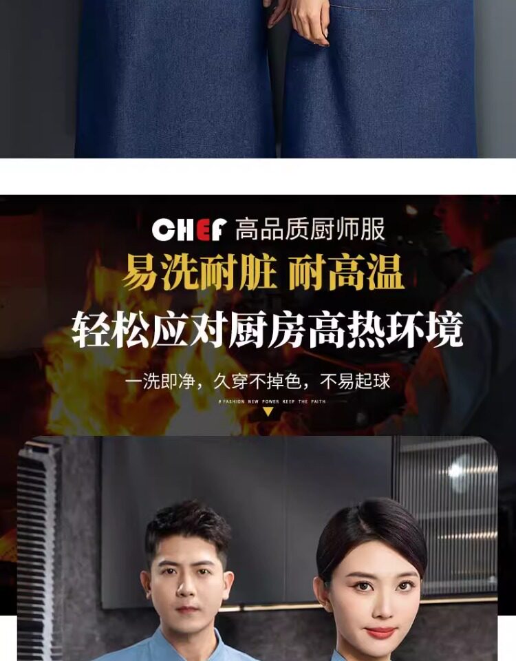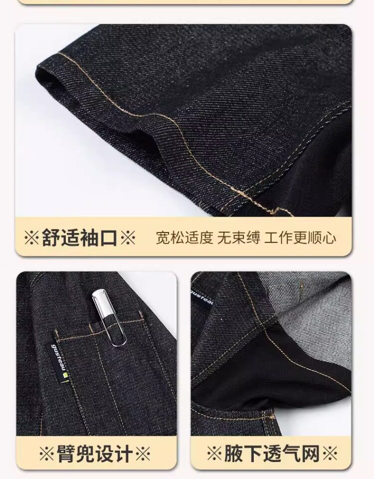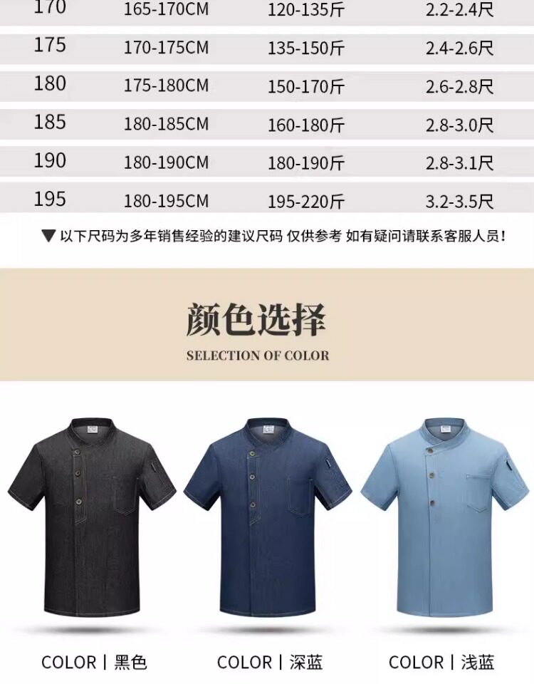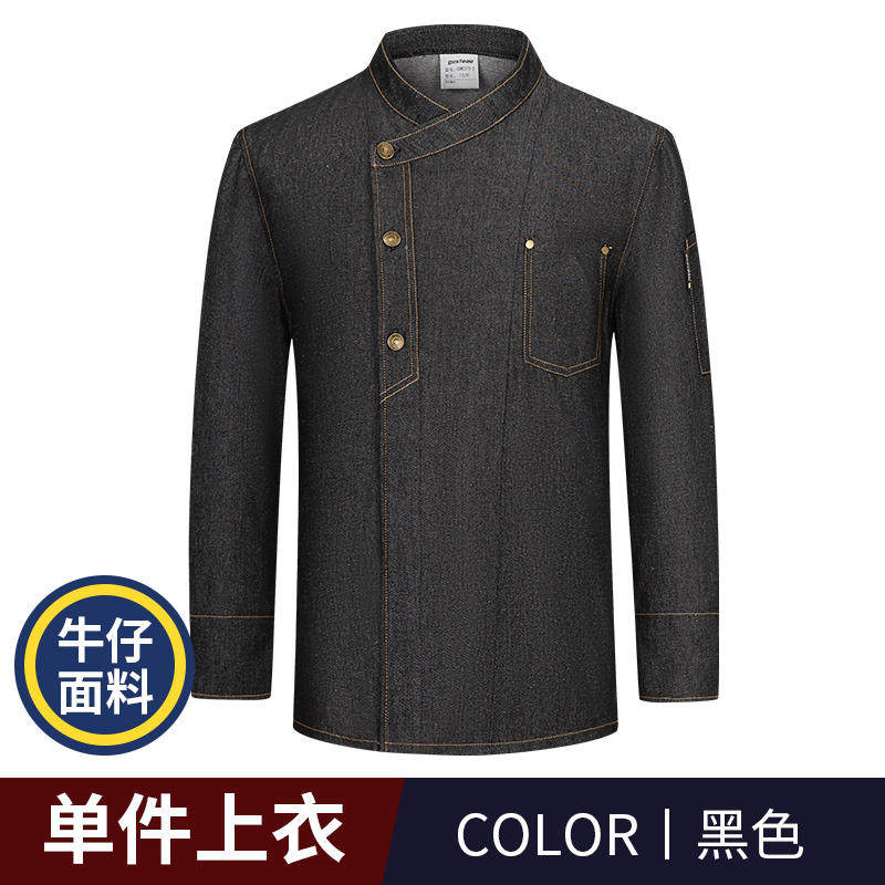 高端牛仔厨师工作服西餐厅饭店酒店后厨房餐饮专用短袖工装制服男
