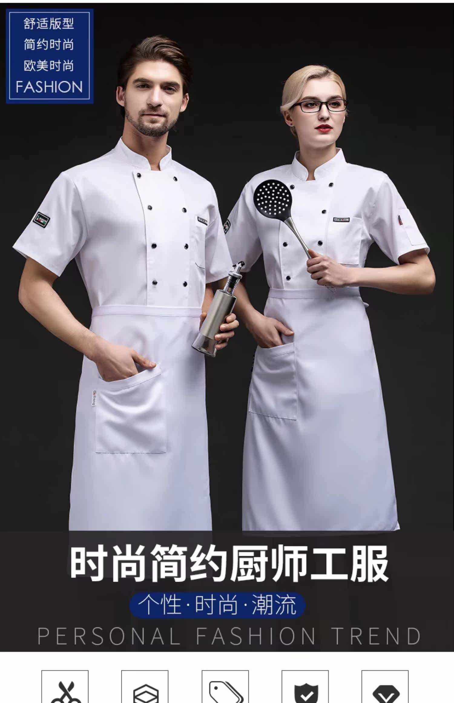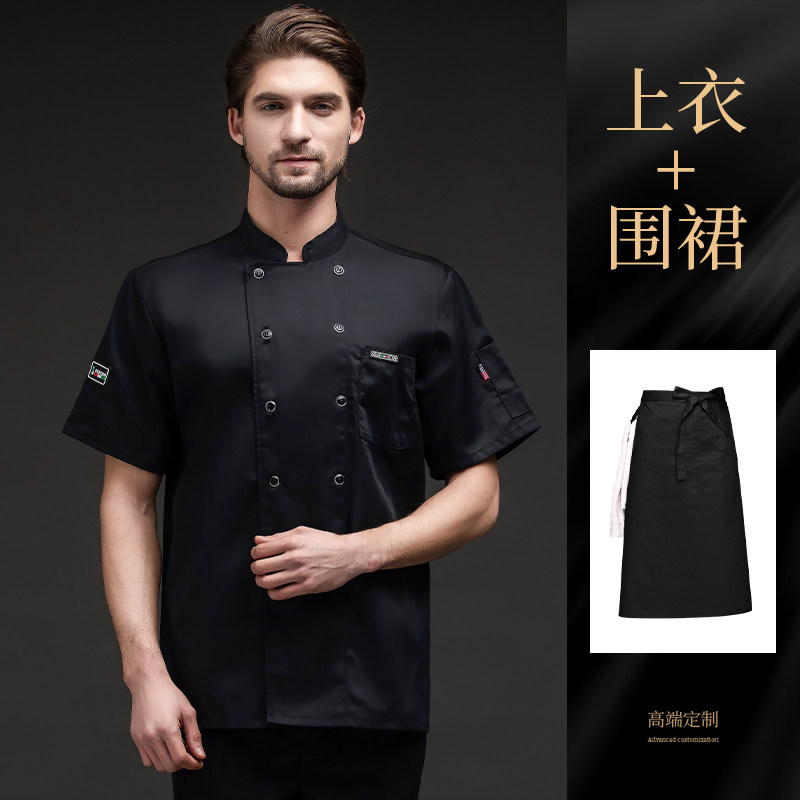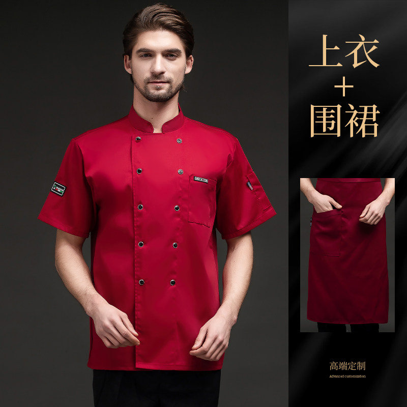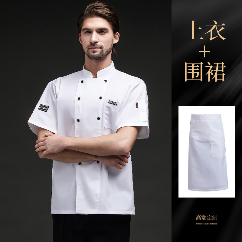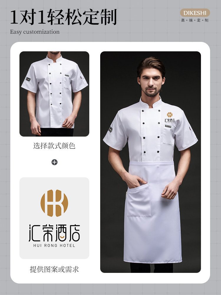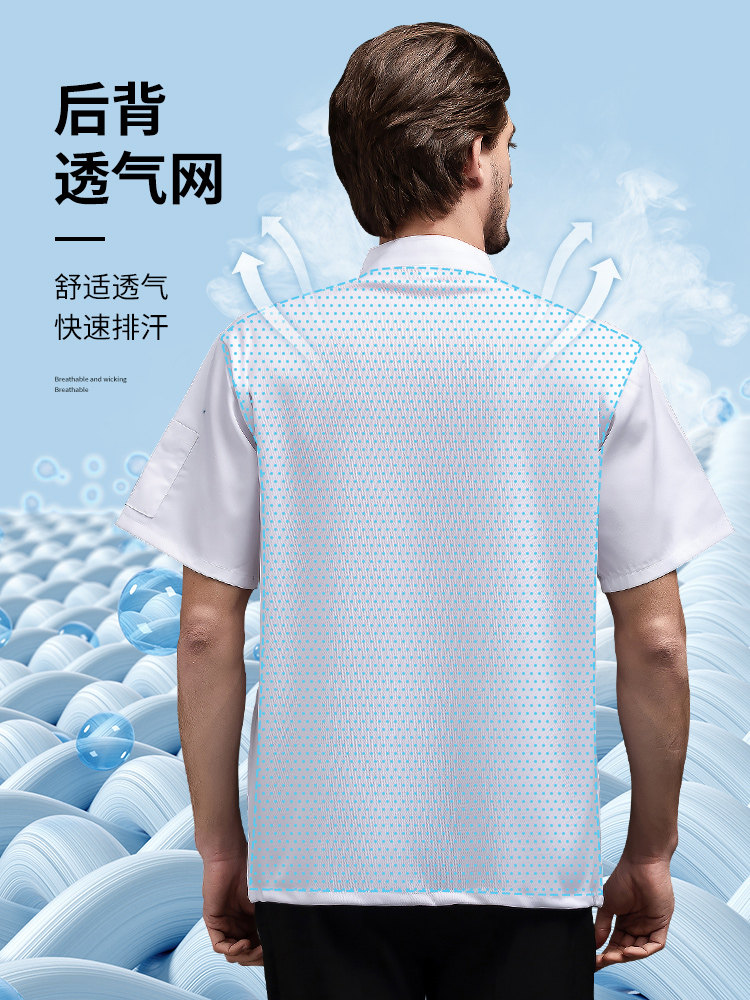 夏季厨师工作服透气薄款短袖餐饮酒店烧烤食堂后厨工装工衣男定制