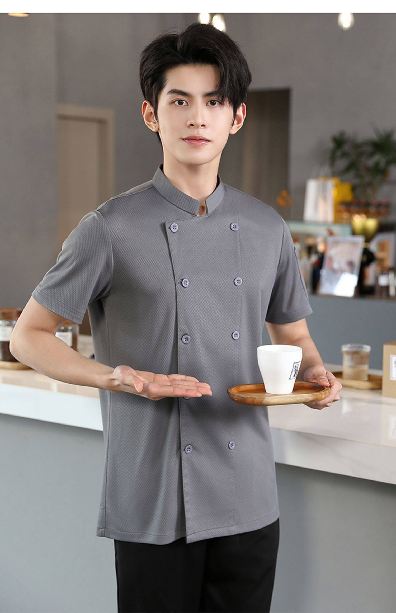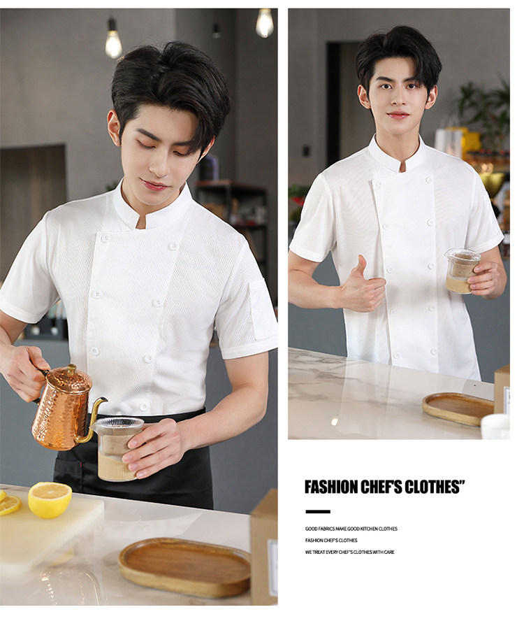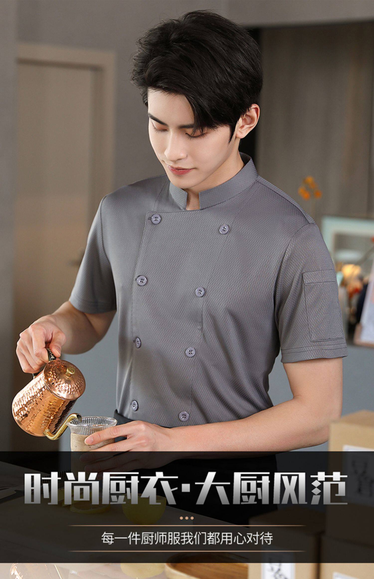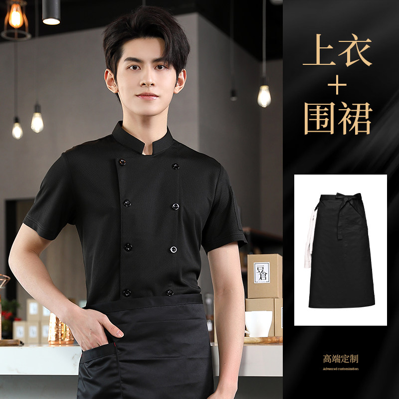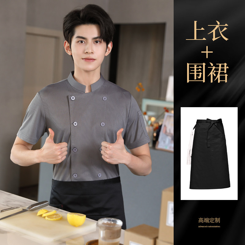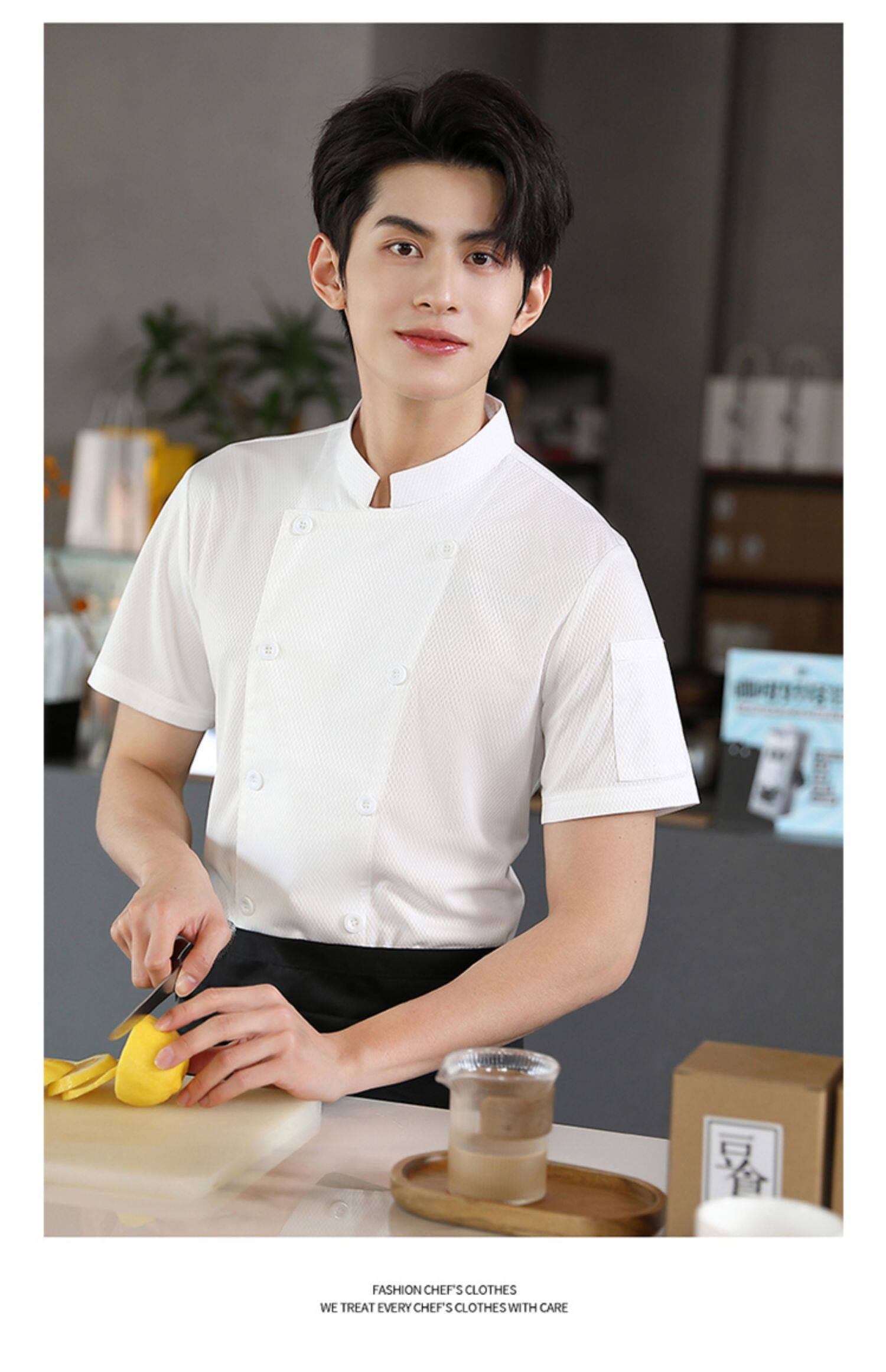 高端厨师工作服短袖透气工装男夏季餐饮酒店早点西餐厅后厨房厨衣