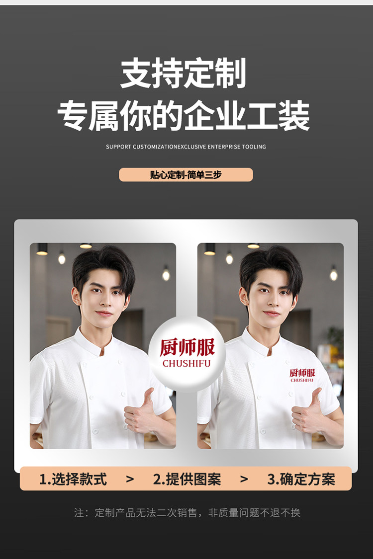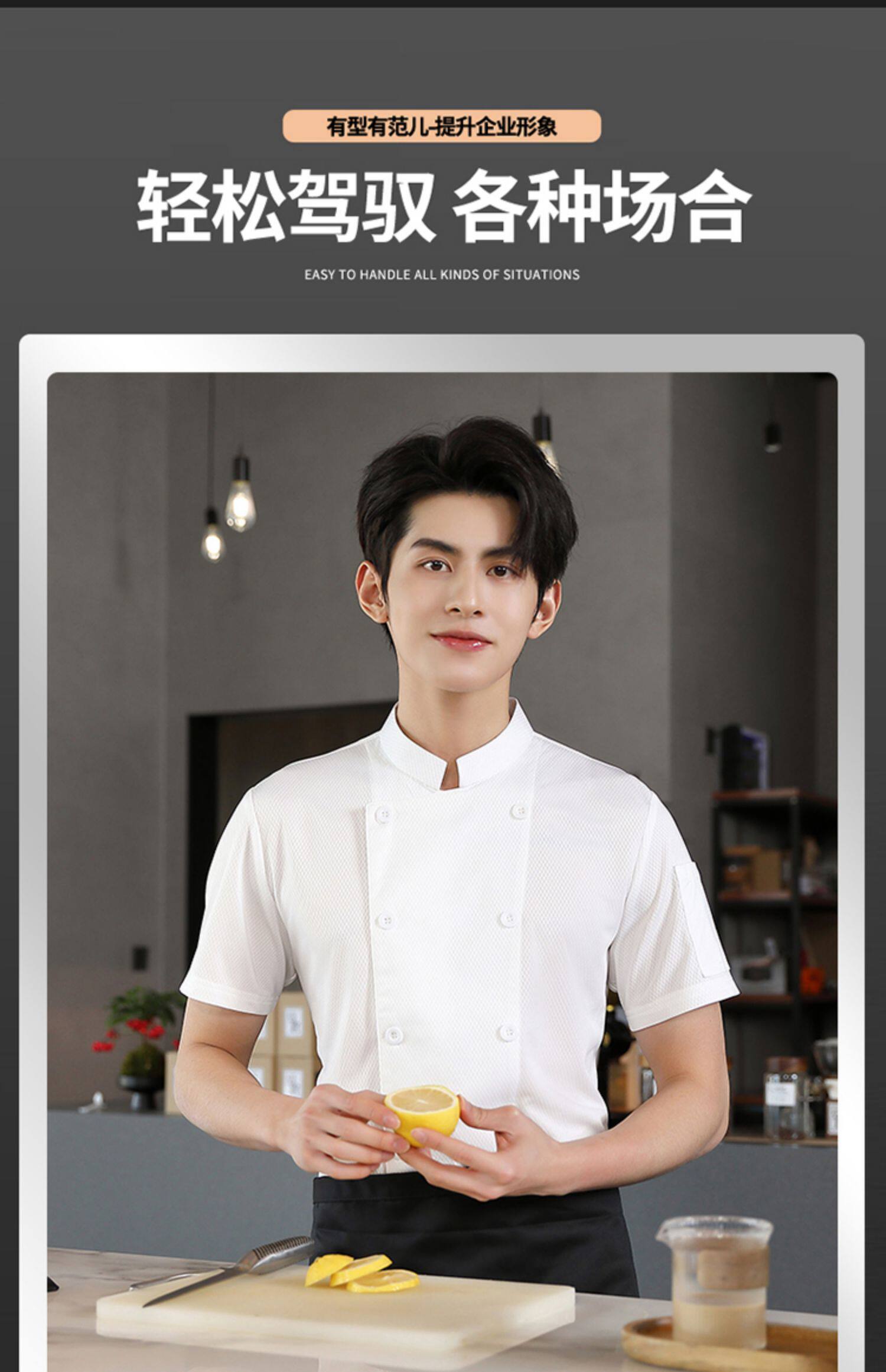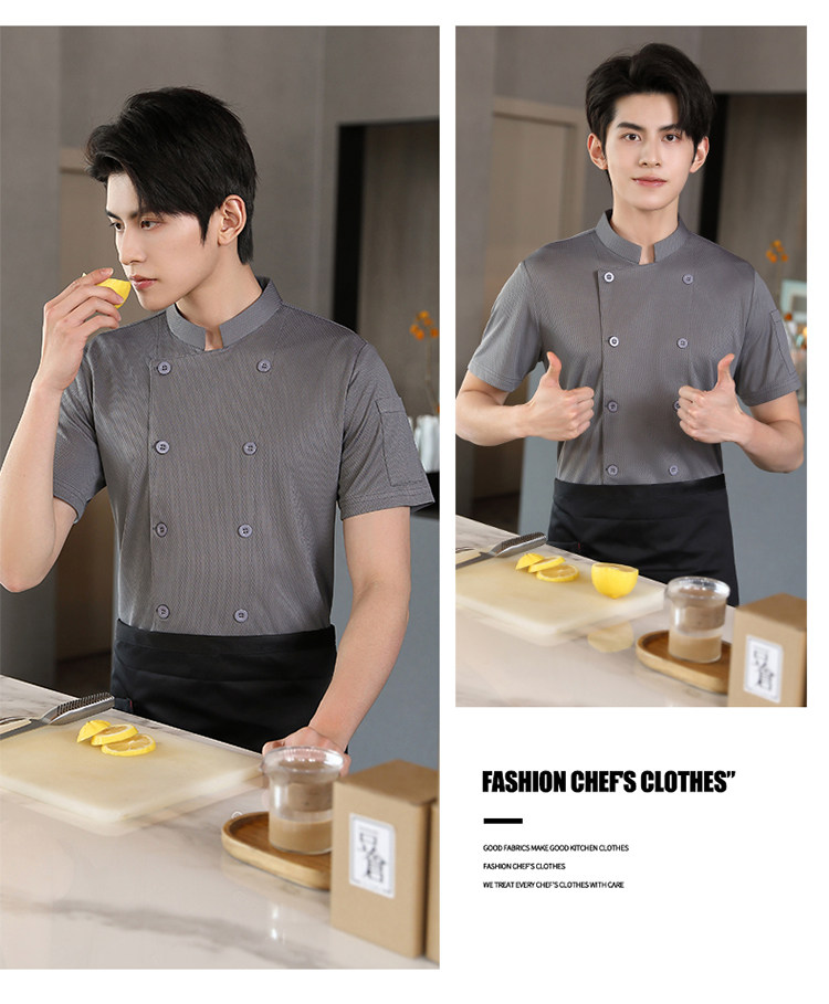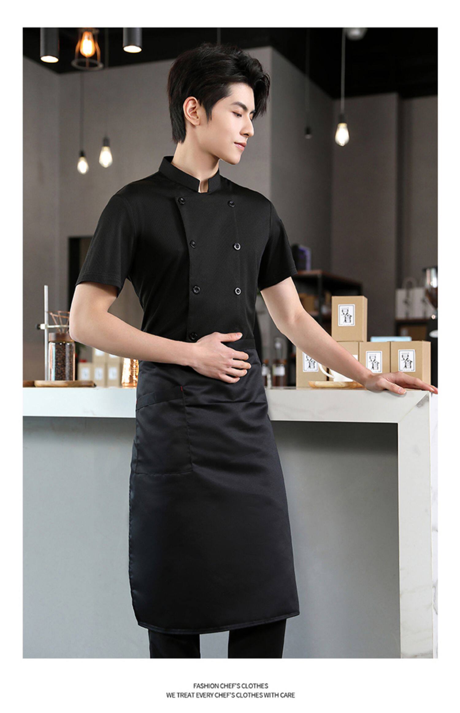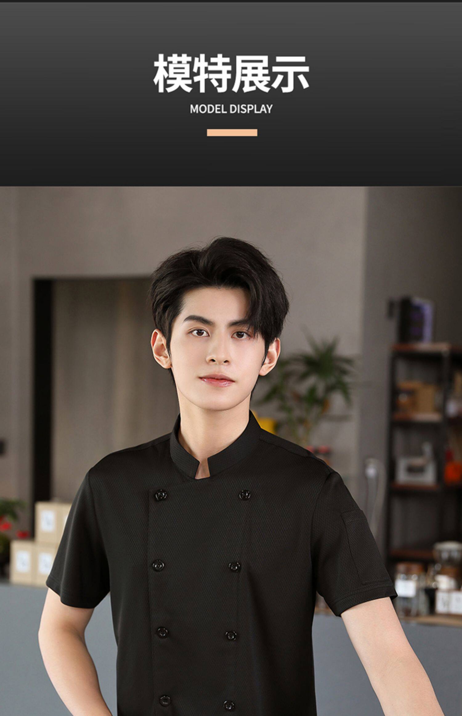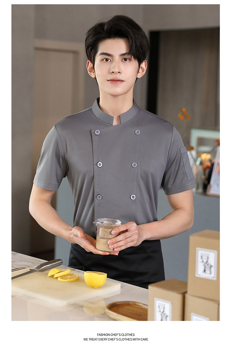高端厨师工作服短袖透气工装男夏季餐饮酒店早点西餐厅后厨房厨衣