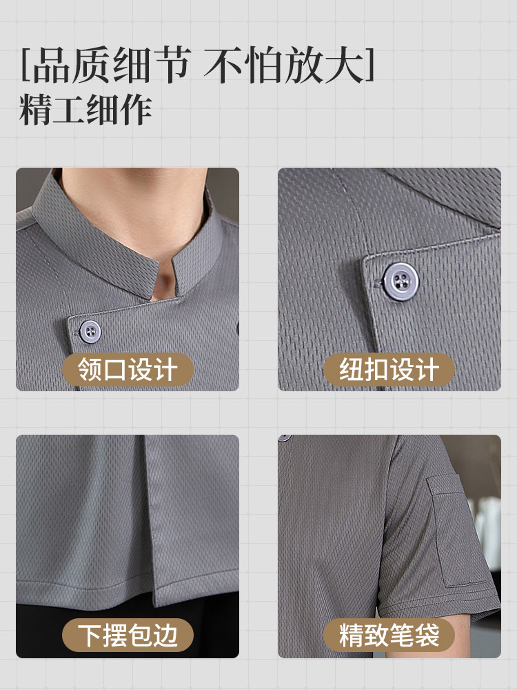厨师工作服男短袖夏季透气薄款餐饮酒店食堂饭店厨房餐厅高级高端