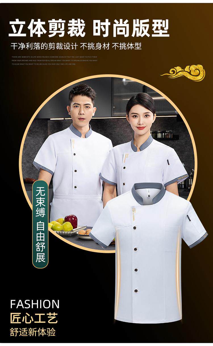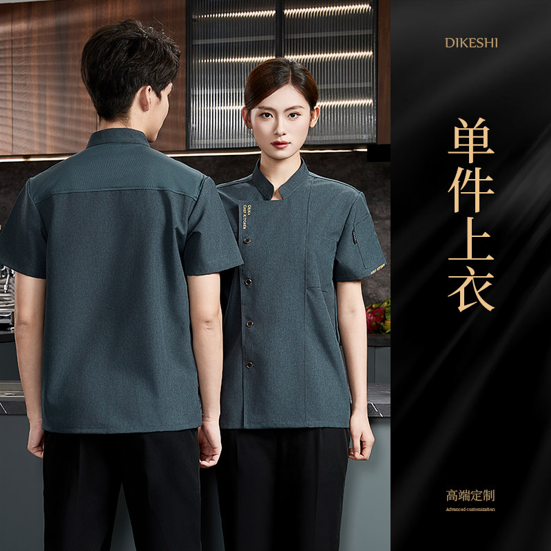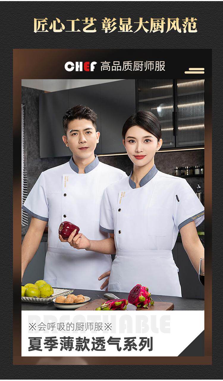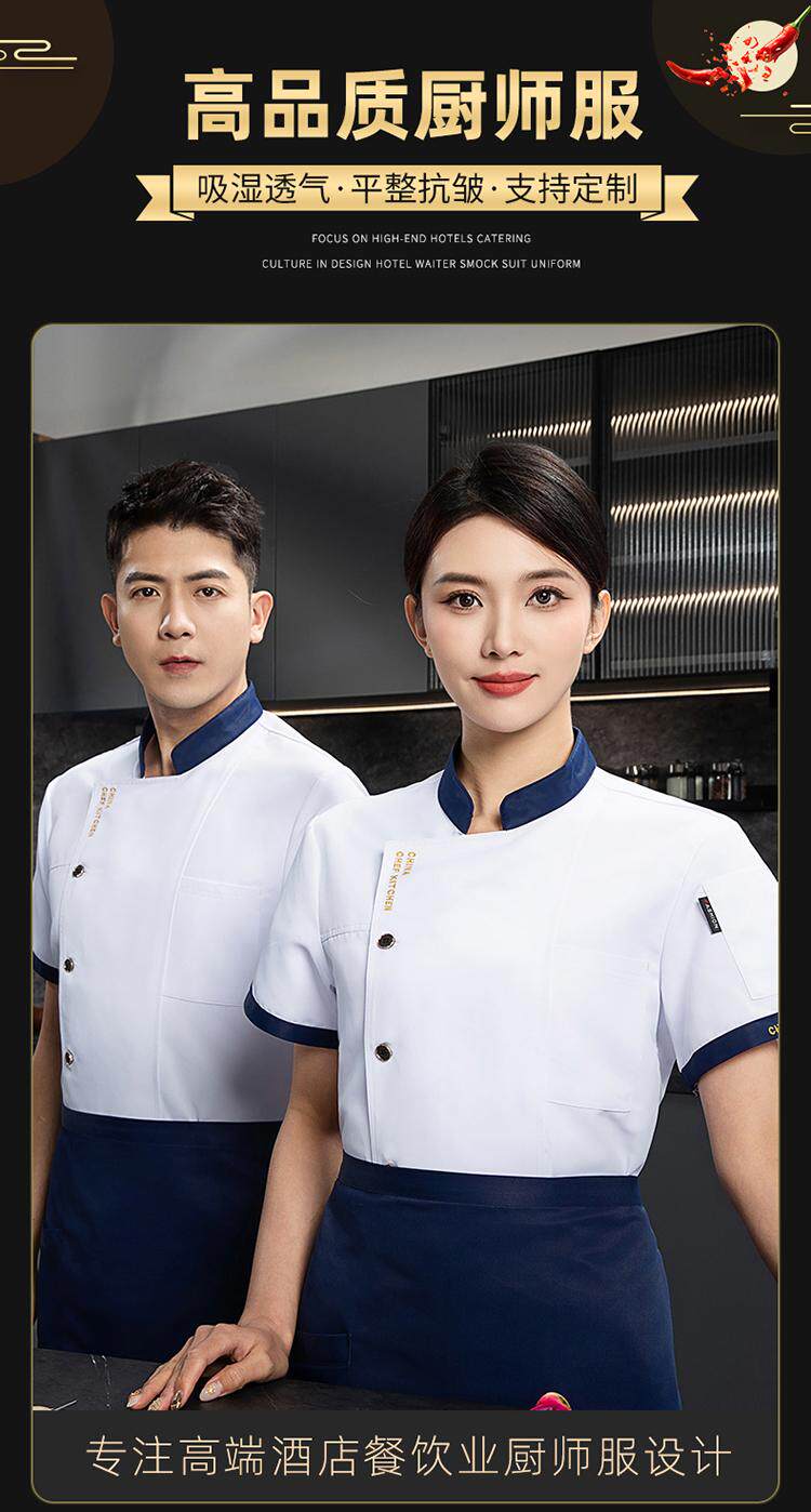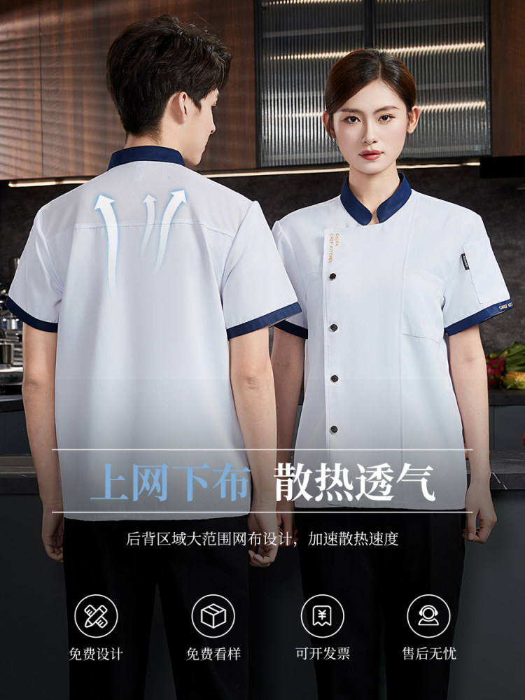 高端冰丝短袖厨师工作服定制后厨餐饮厅酒店夏季薄款透气速干工装