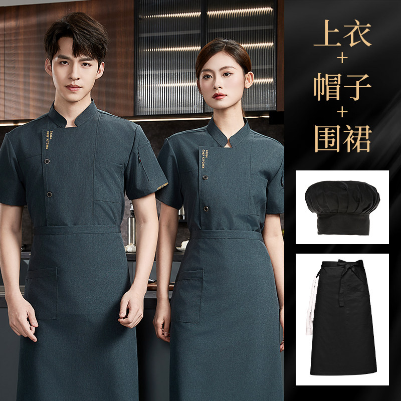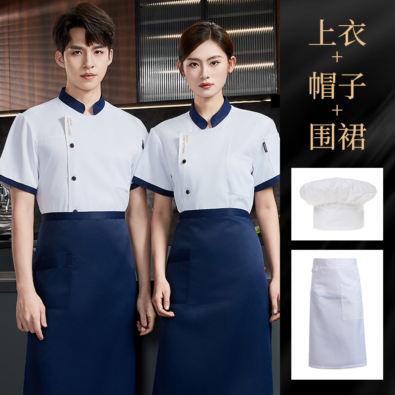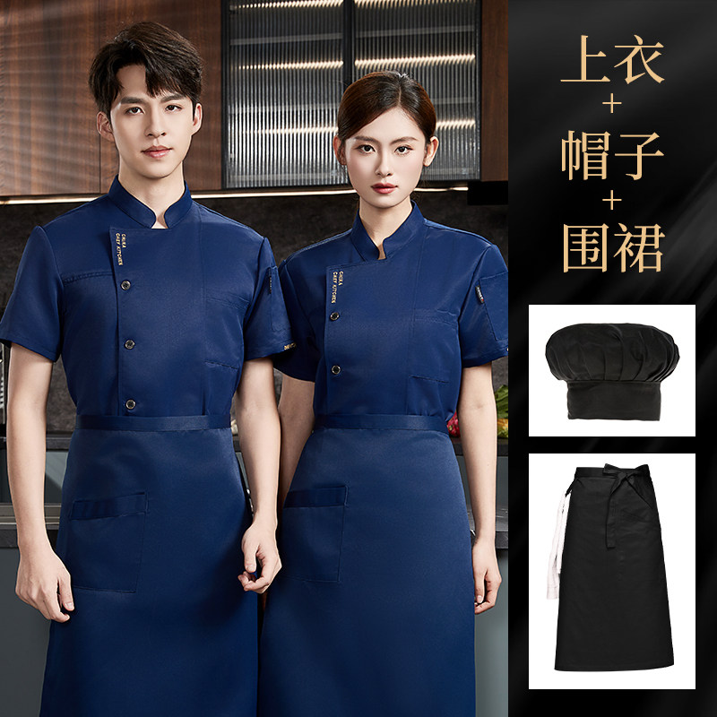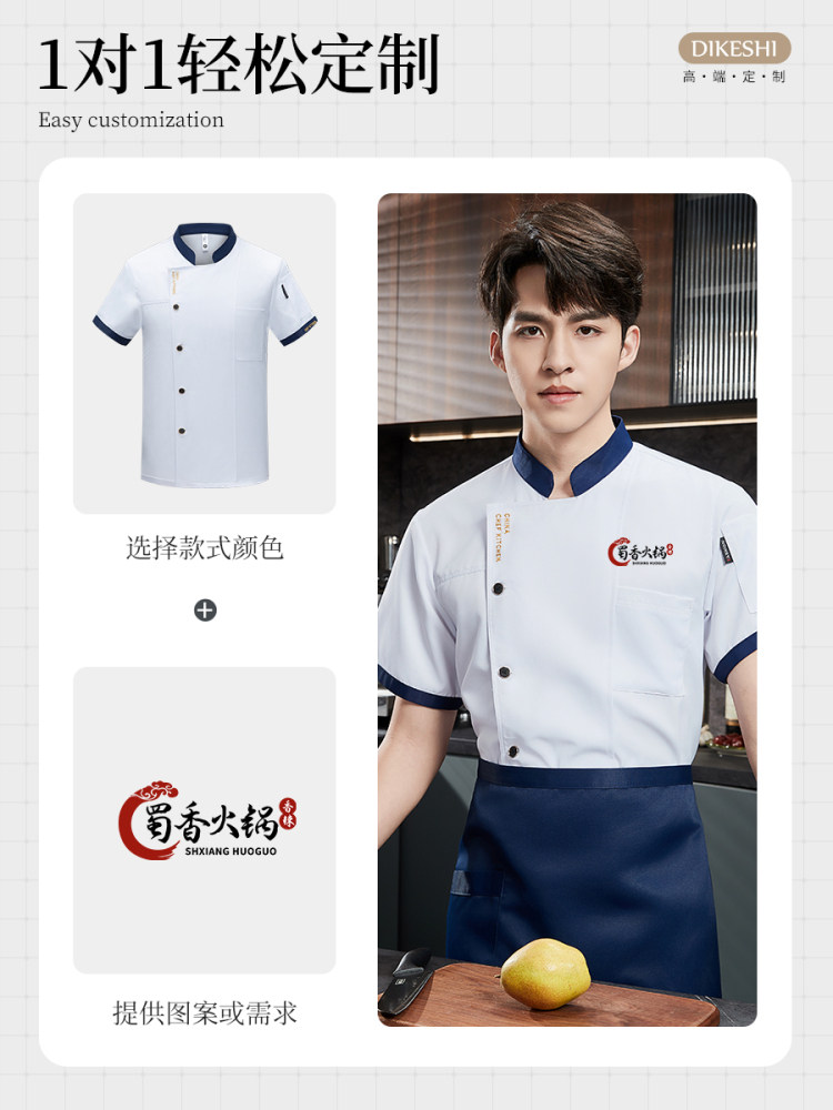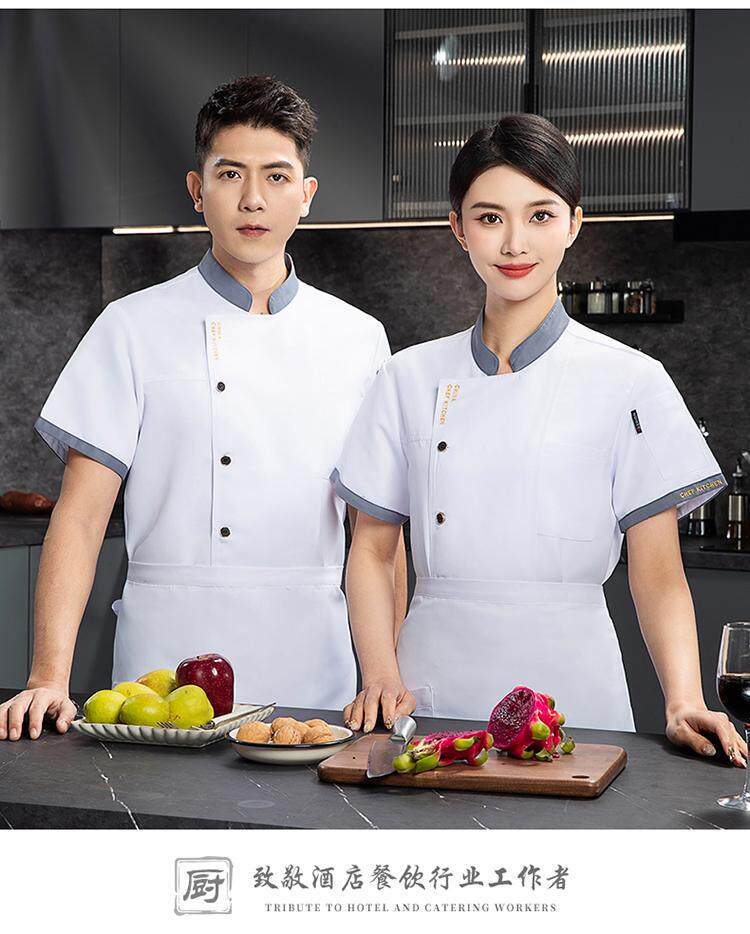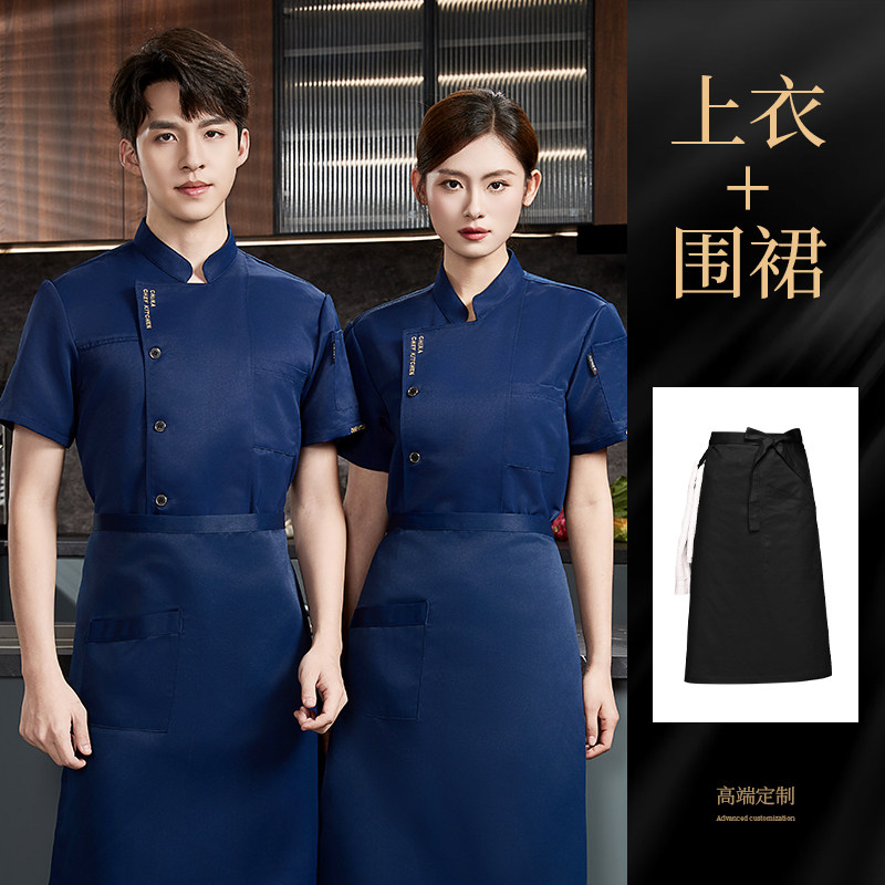 高端冰丝短袖厨师工作服定制后厨餐饮厅酒店夏季薄款透气速干工装