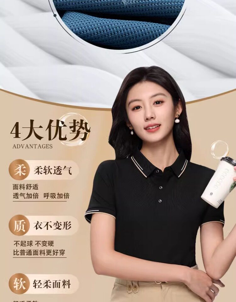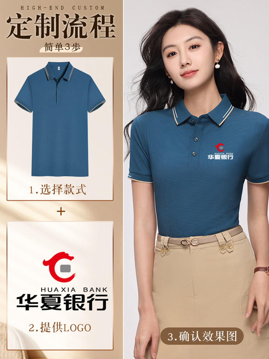 高端polo衫工作服定制重磅修身翻领t恤夏季行政工装女刺绣印logo