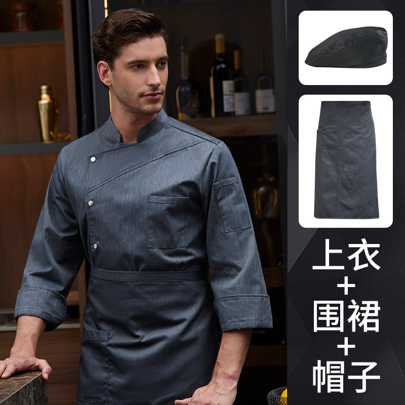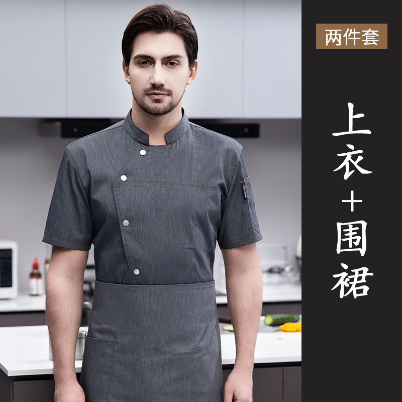 厨师工作服短袖男夏季餐饮服装高级西餐厅烘培衣服后厨长袖秋冬季