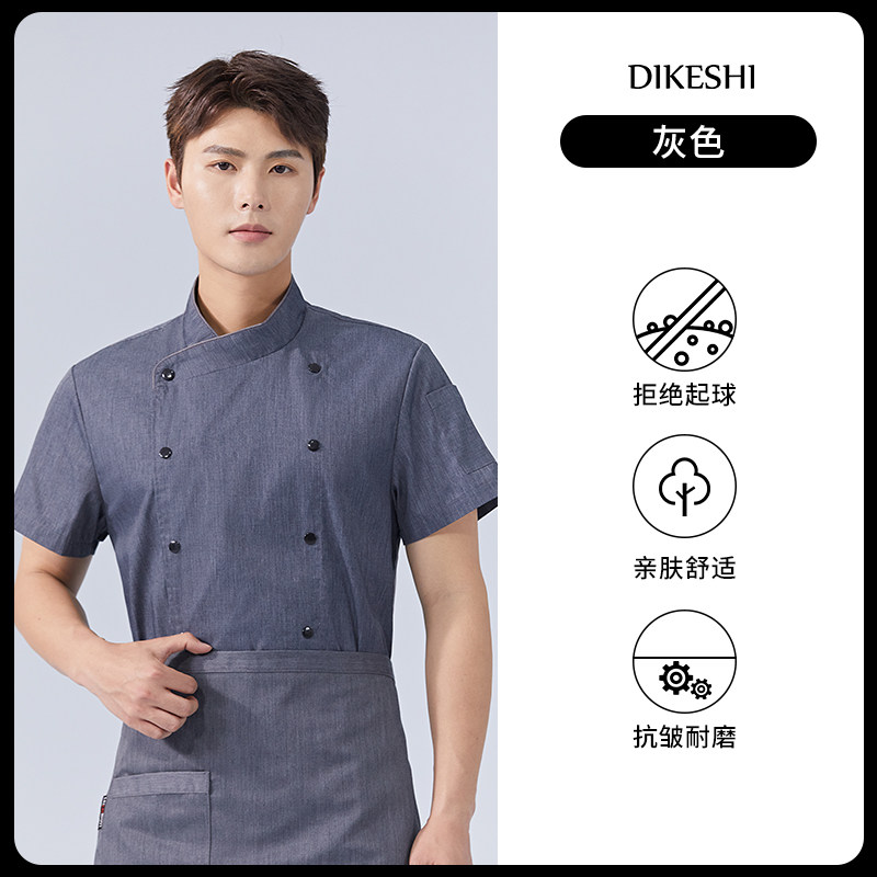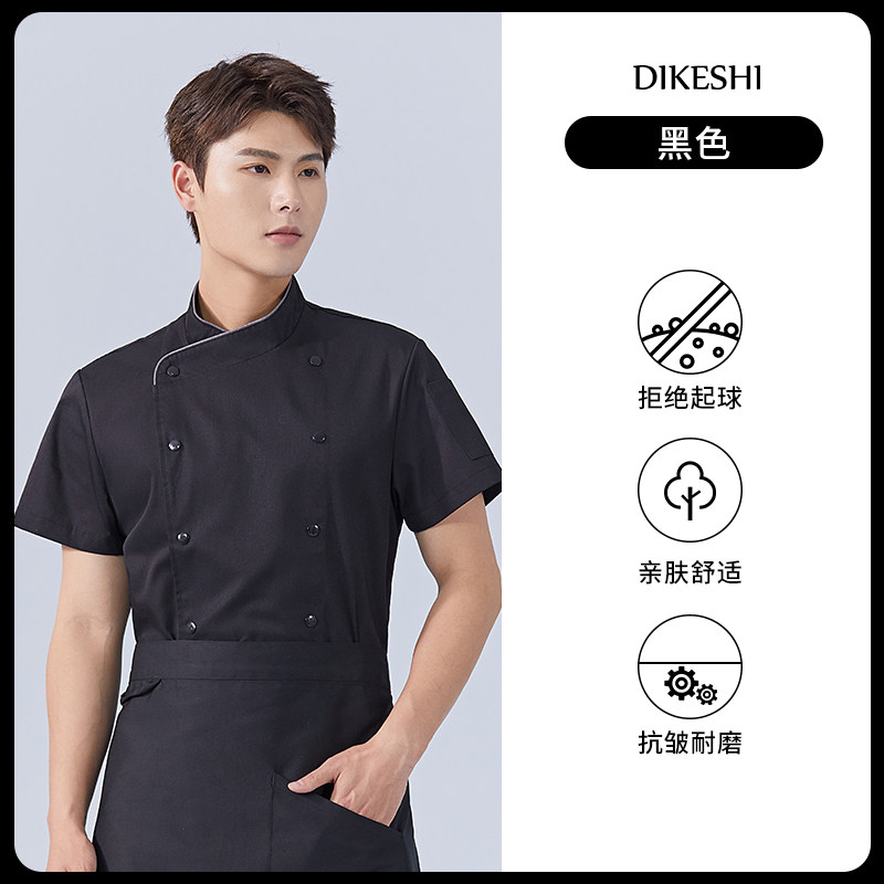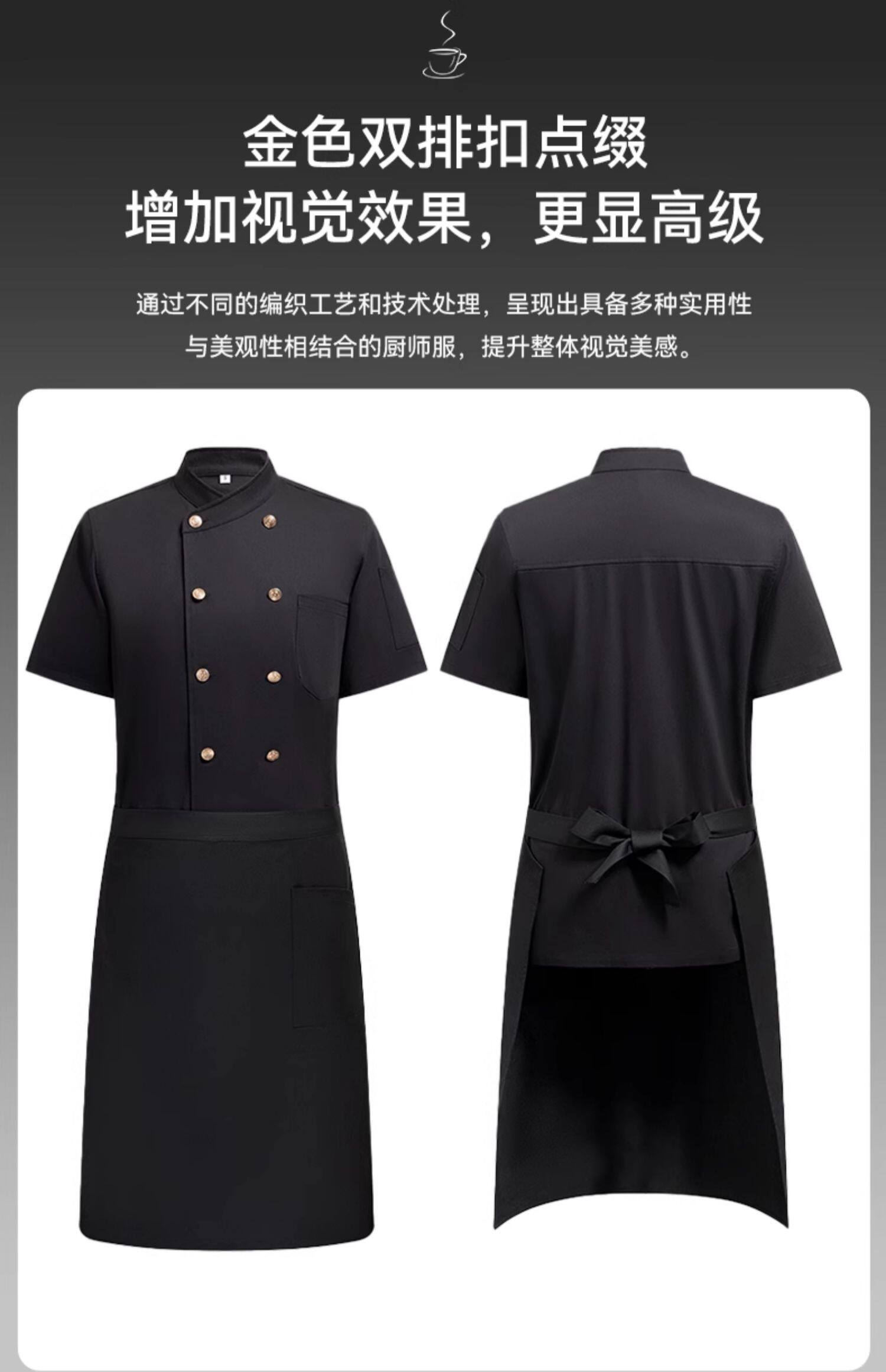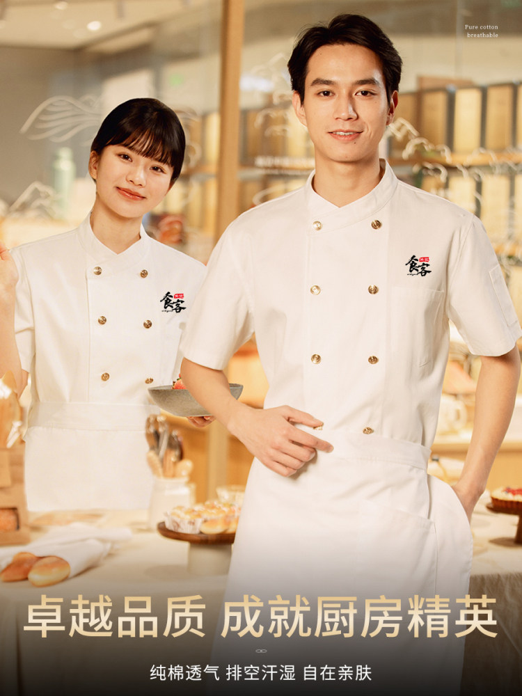 纯棉弹力厨师工作服短袖夏季酒店饭店餐饮后厨厨房高档服装男定制