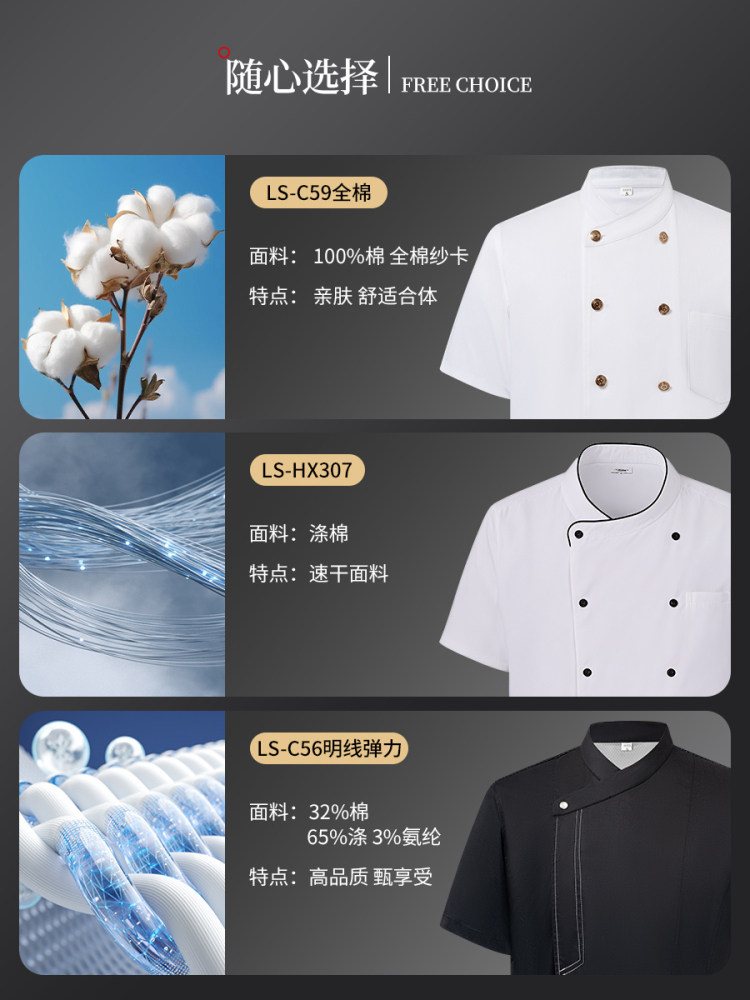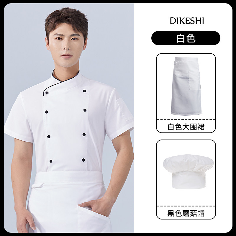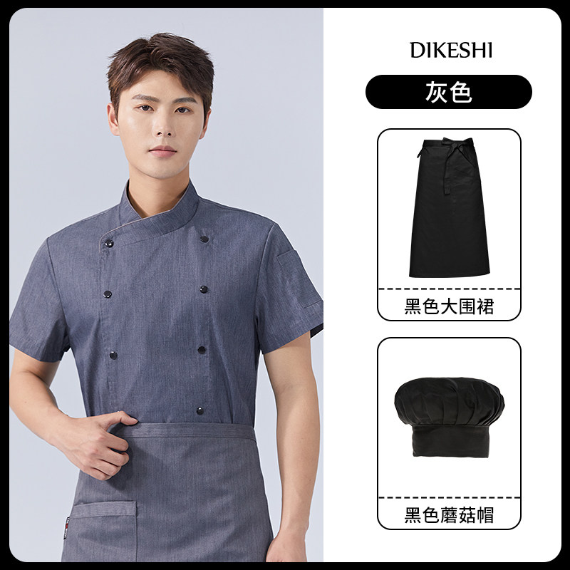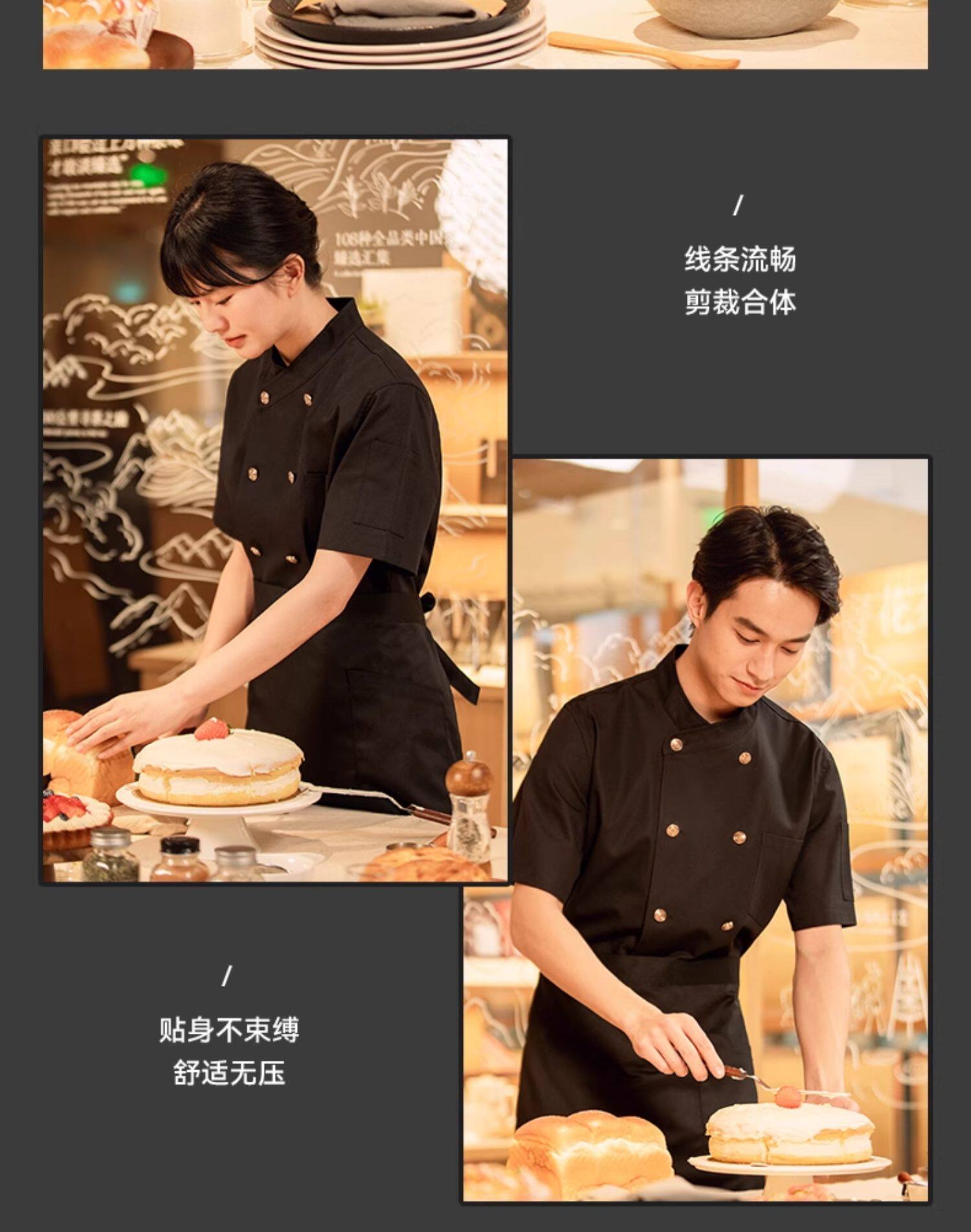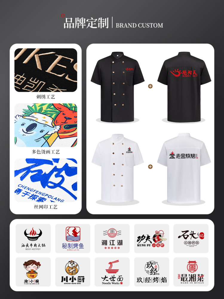 纯棉弹力厨师工作服短袖夏季酒店饭店餐饮后厨厨房高档服装男定制
