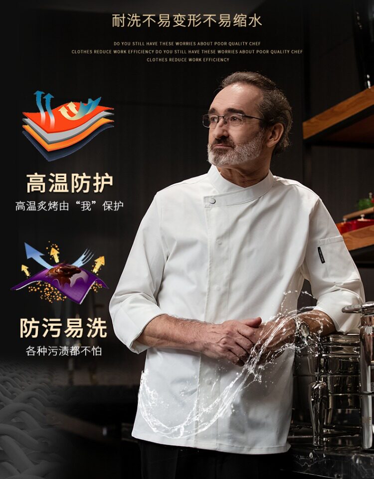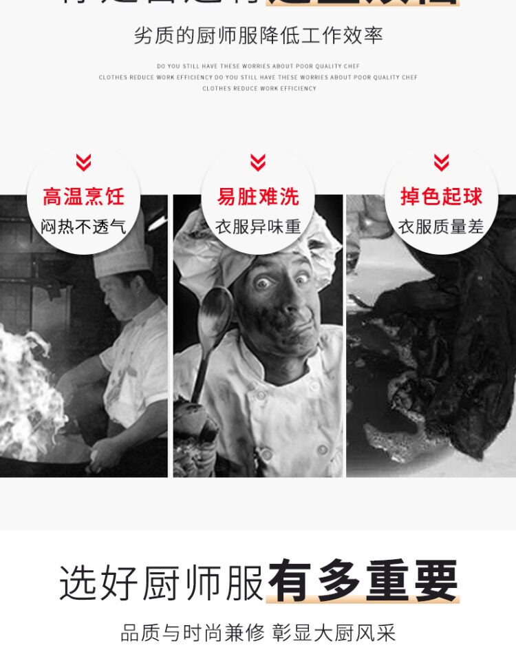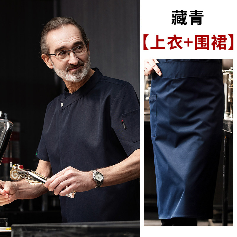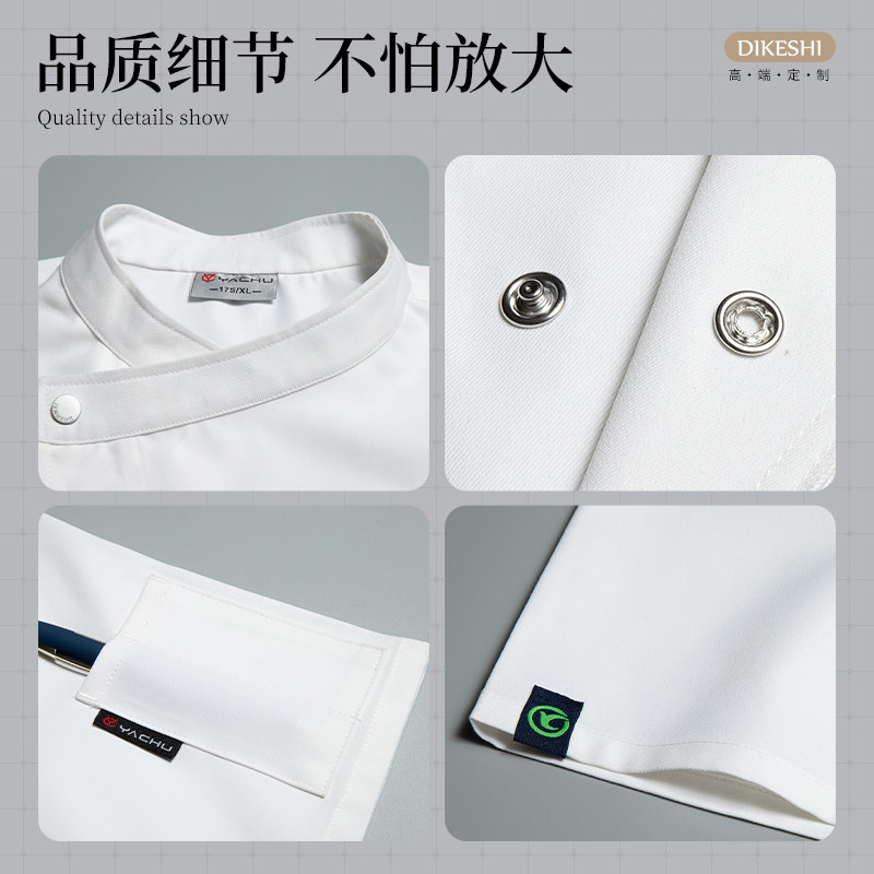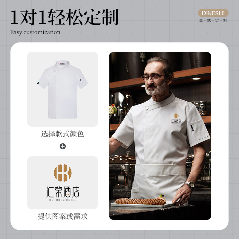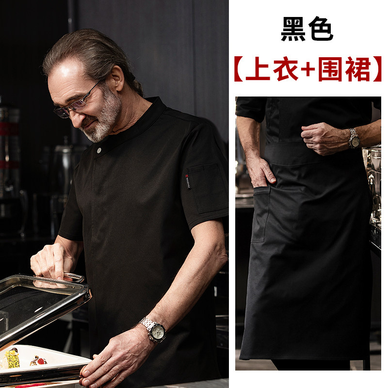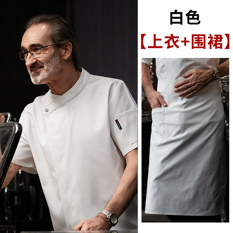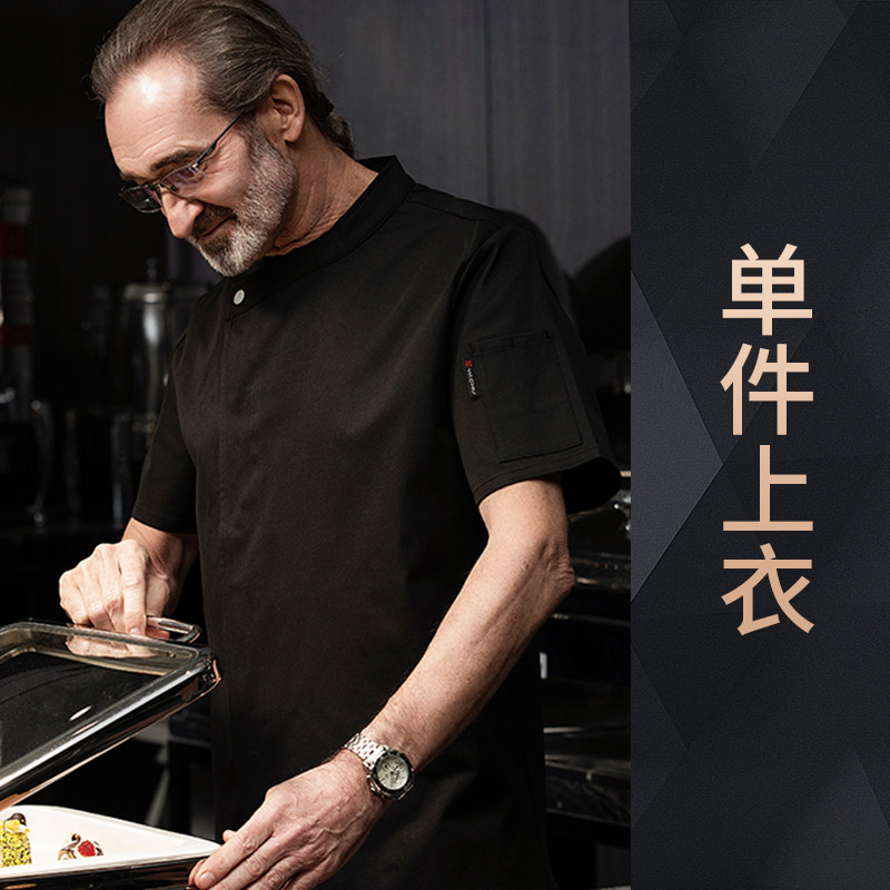高端弹力厨师工作服装男士夏季短袖透气餐厅酒店厨房饭店长袖套装