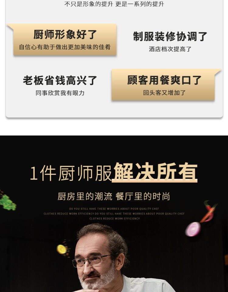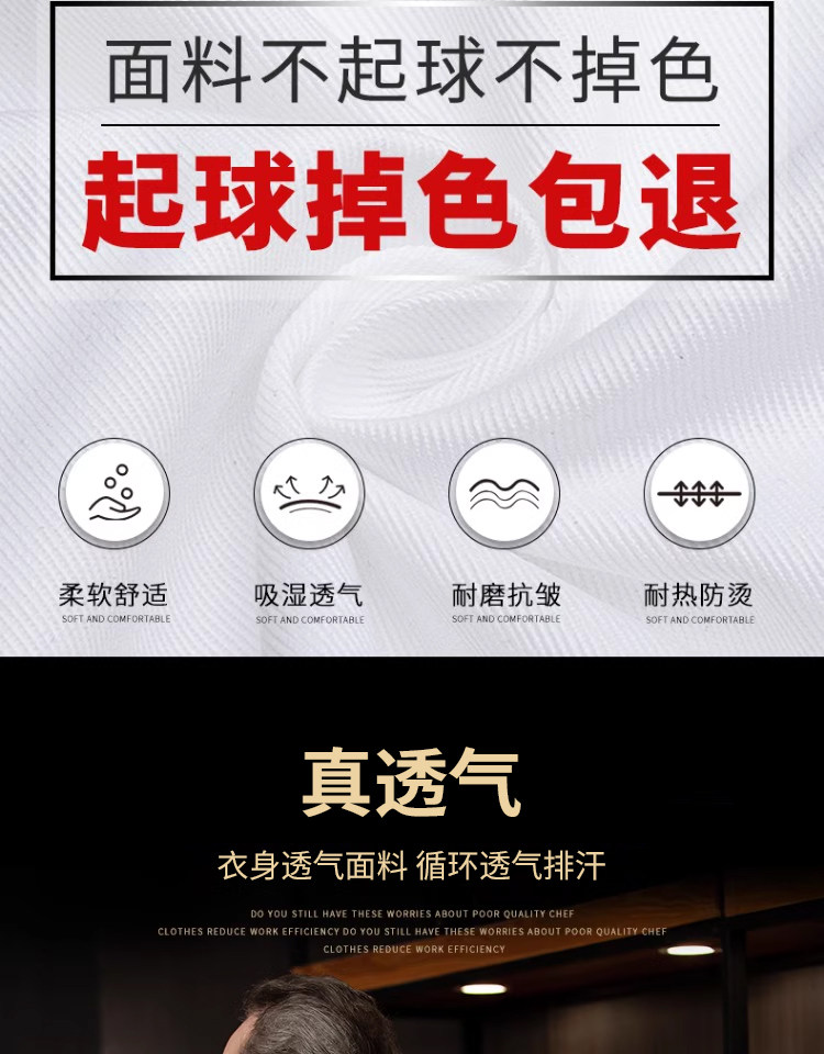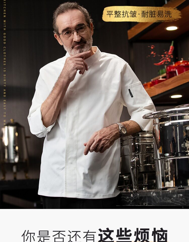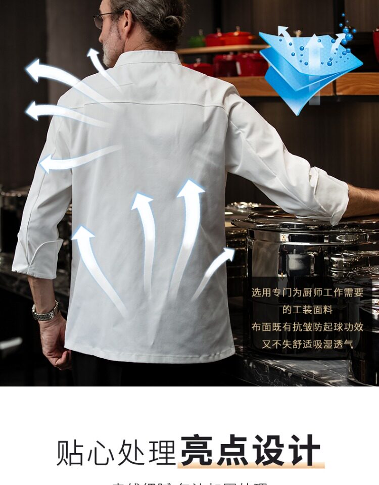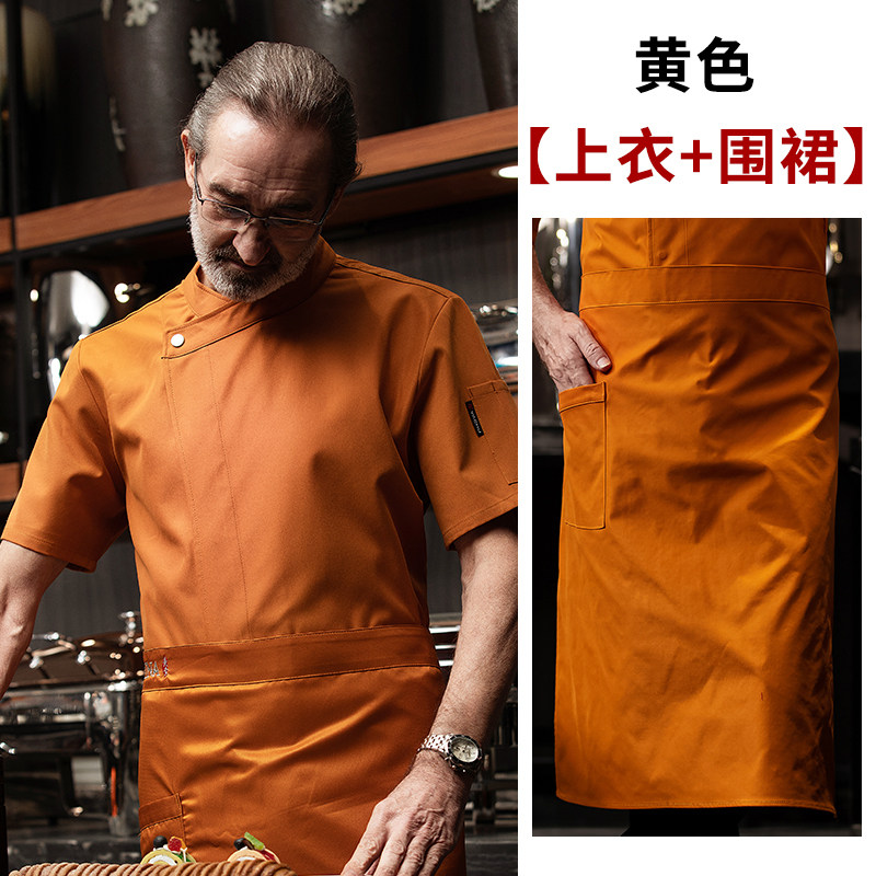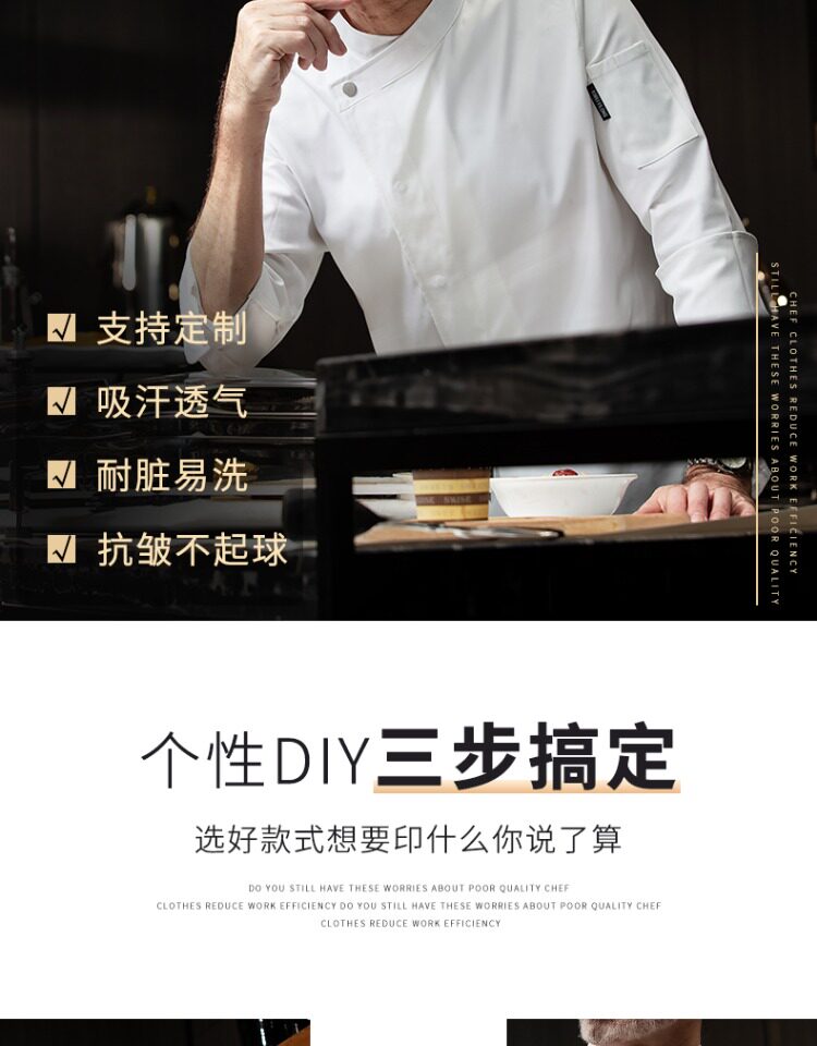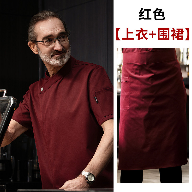 高端弹力厨师工作服装男士夏季短袖透气餐厅酒店厨房饭店长袖套装