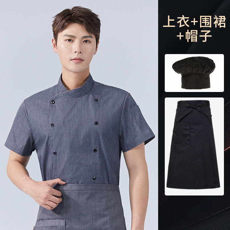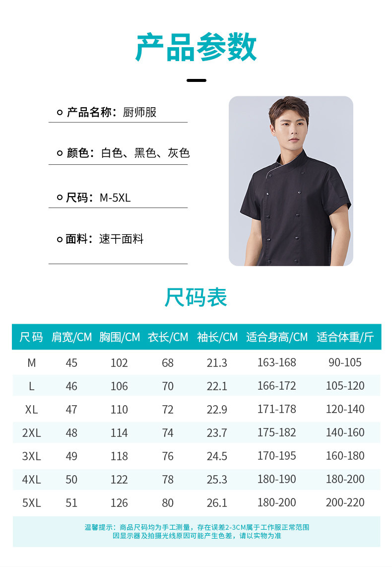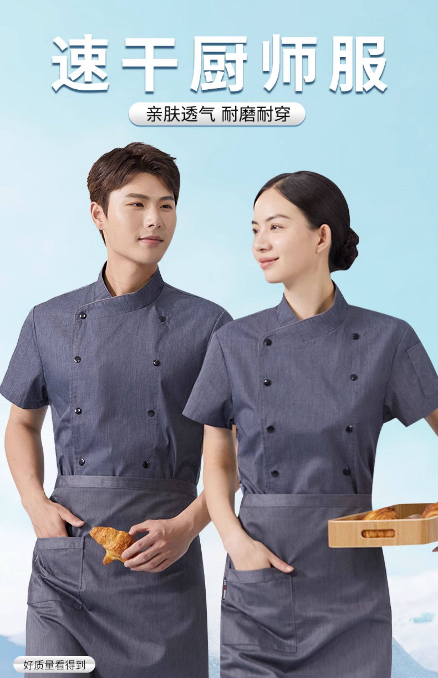 速干厨师工作服短袖男装夏天薄款透气餐饮餐厅酒店后厨房夏季工装