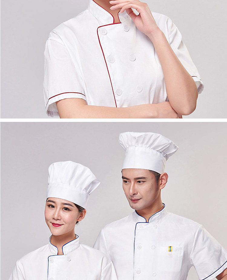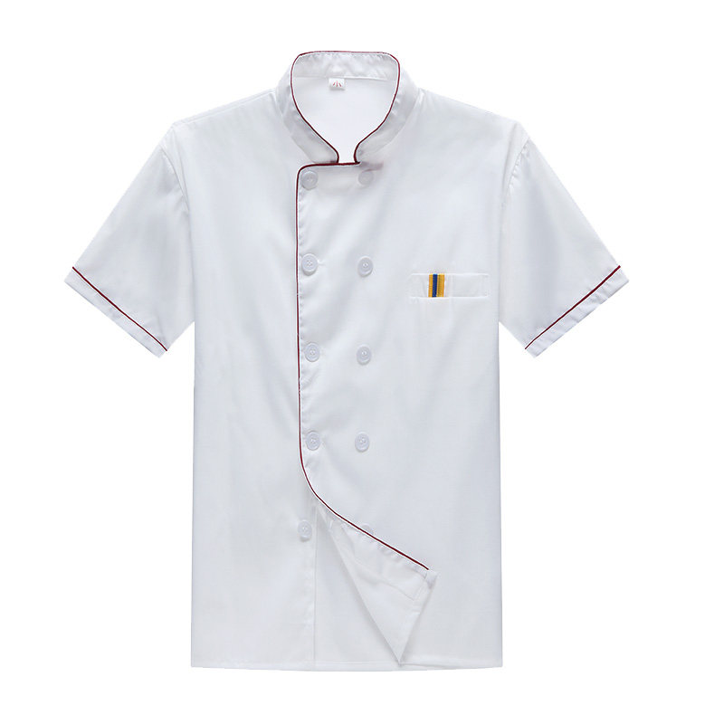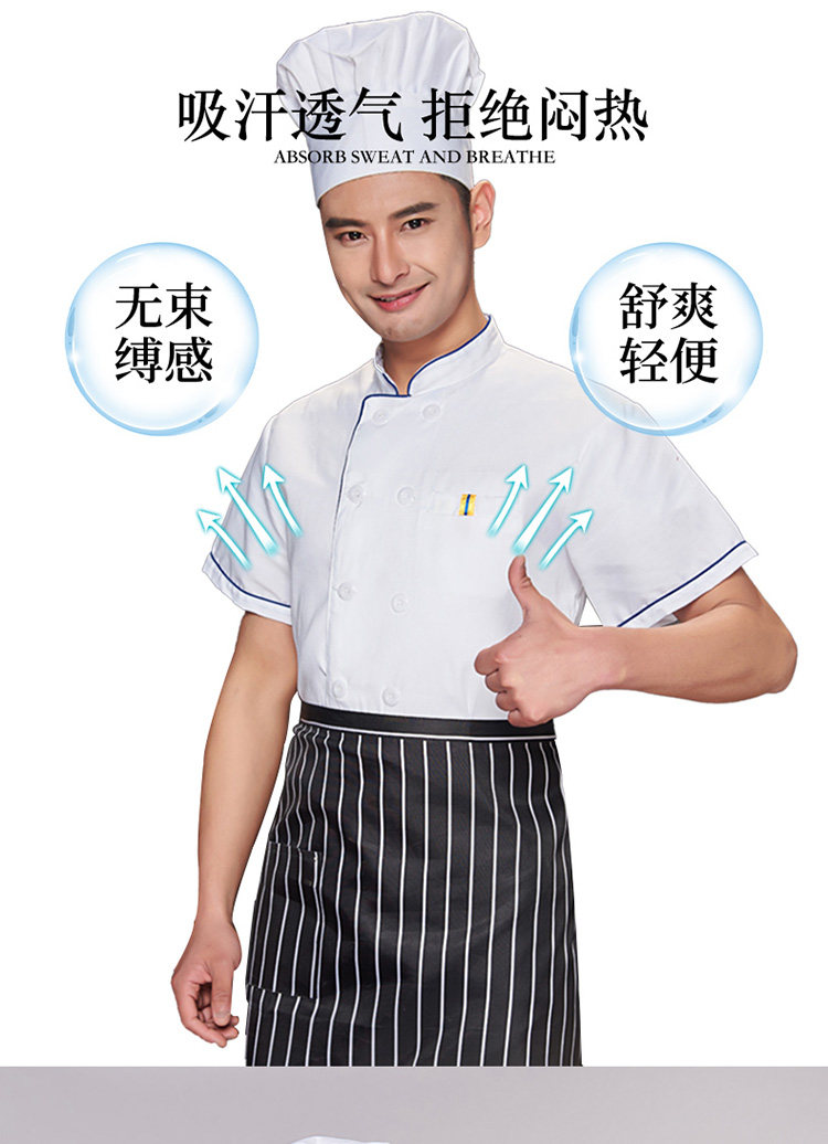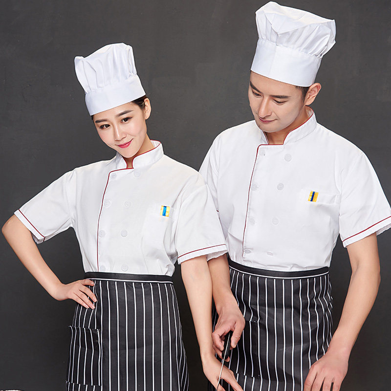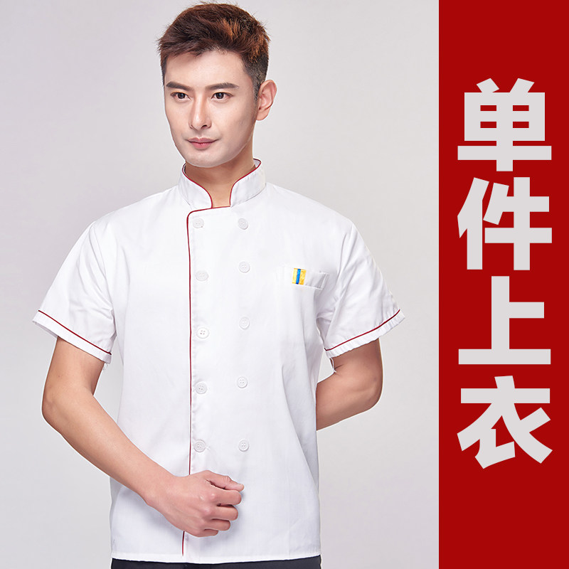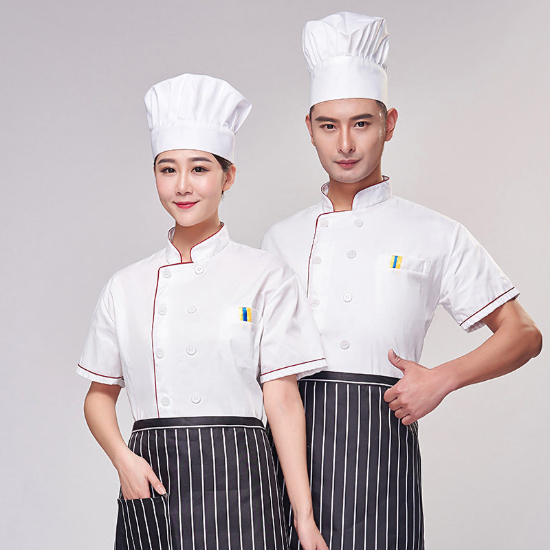 厨师服短袖夏季薄款透气小吃店酒店餐饮白色衣服女厨师工作服装男