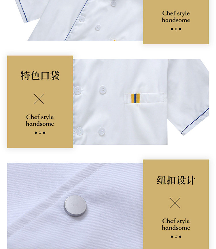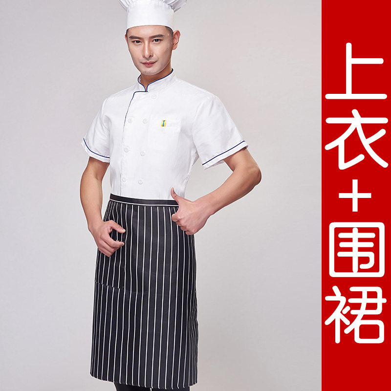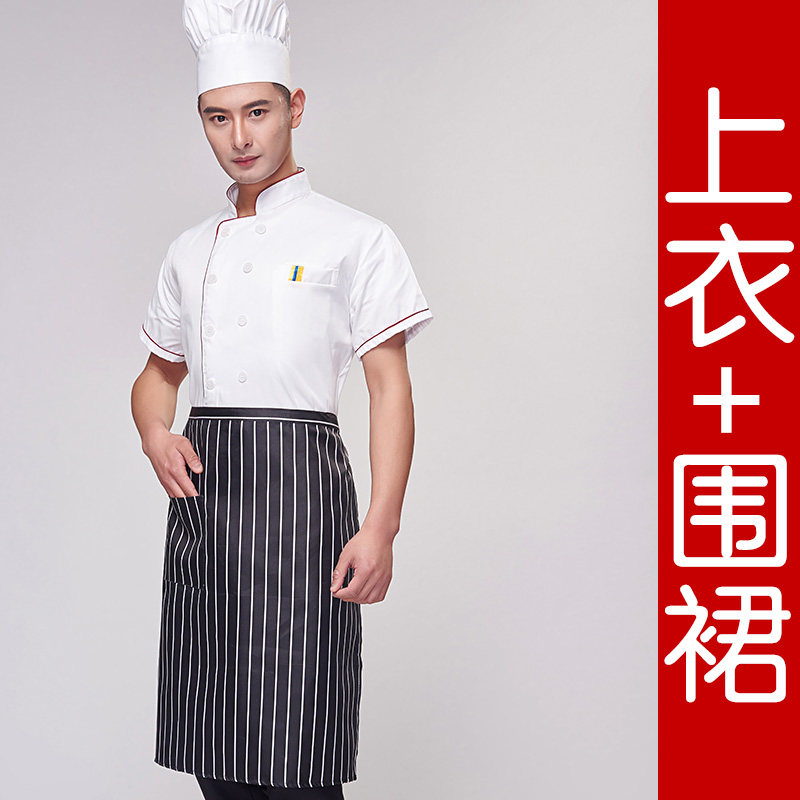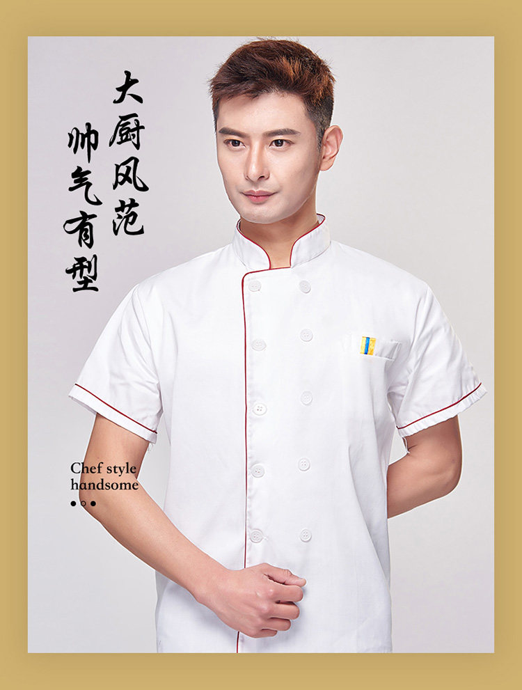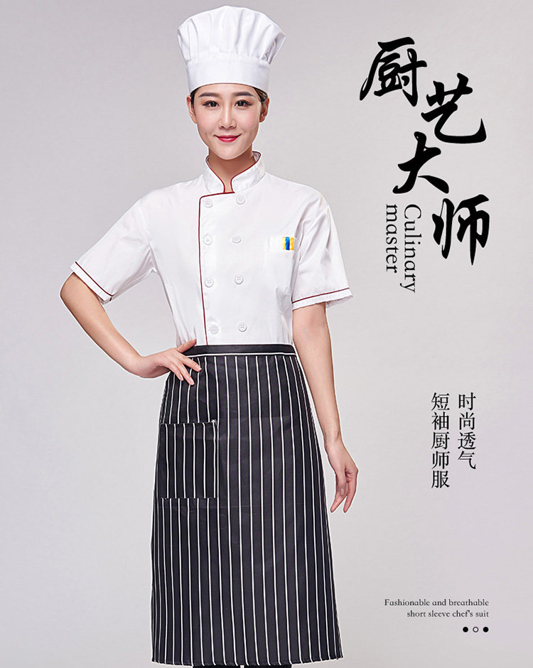 厨师服短袖夏季薄款透气小吃店酒店餐饮白色衣服女厨师工作服装男