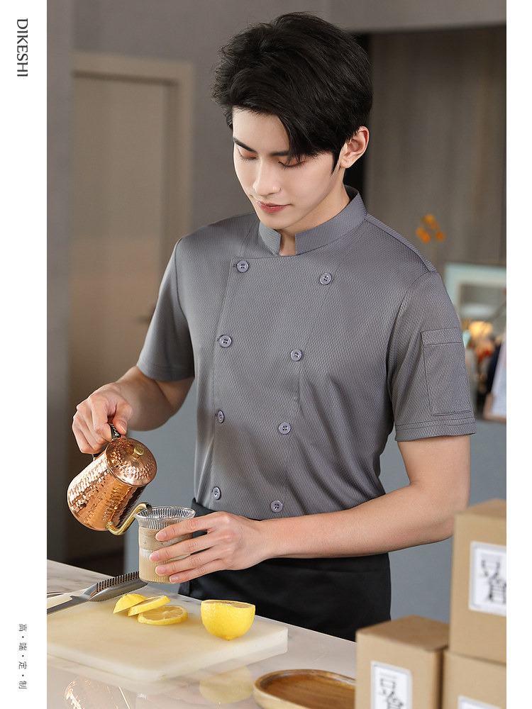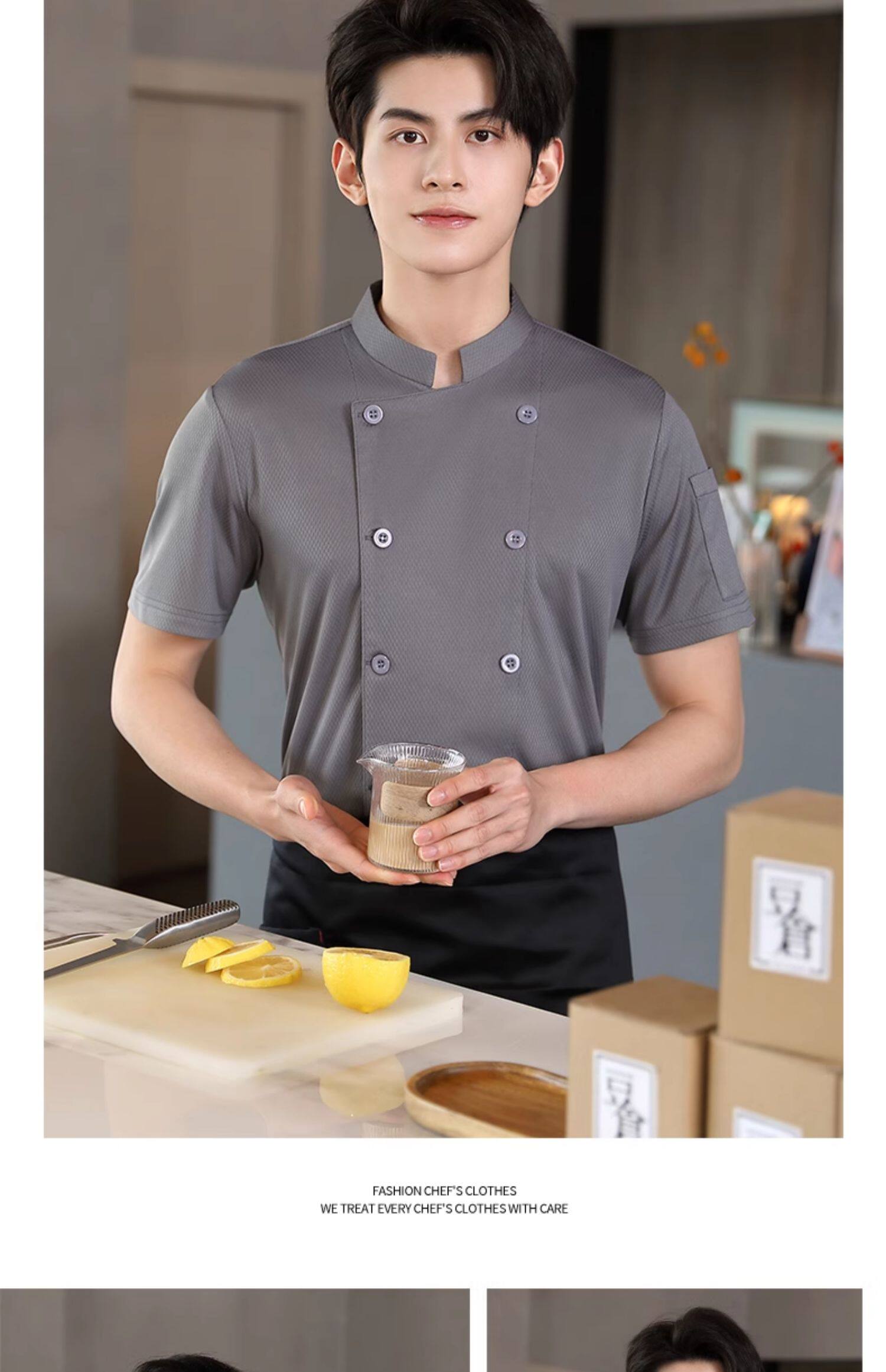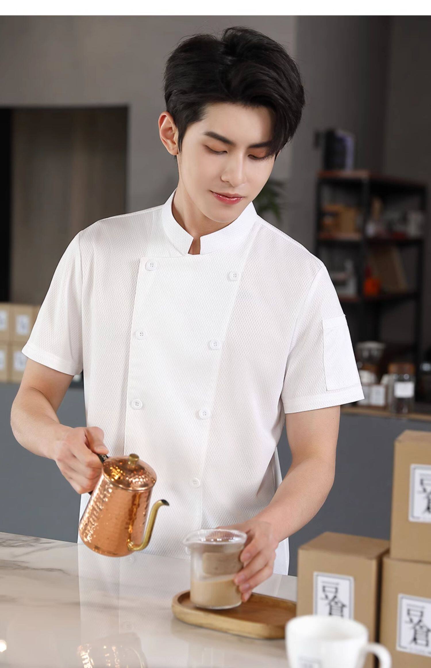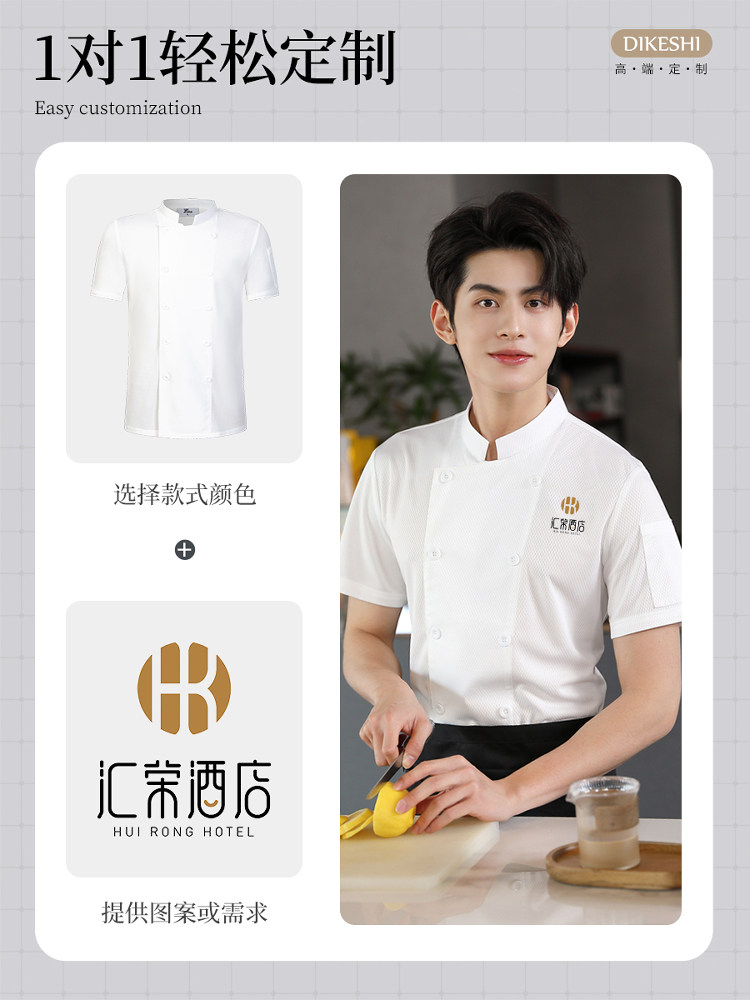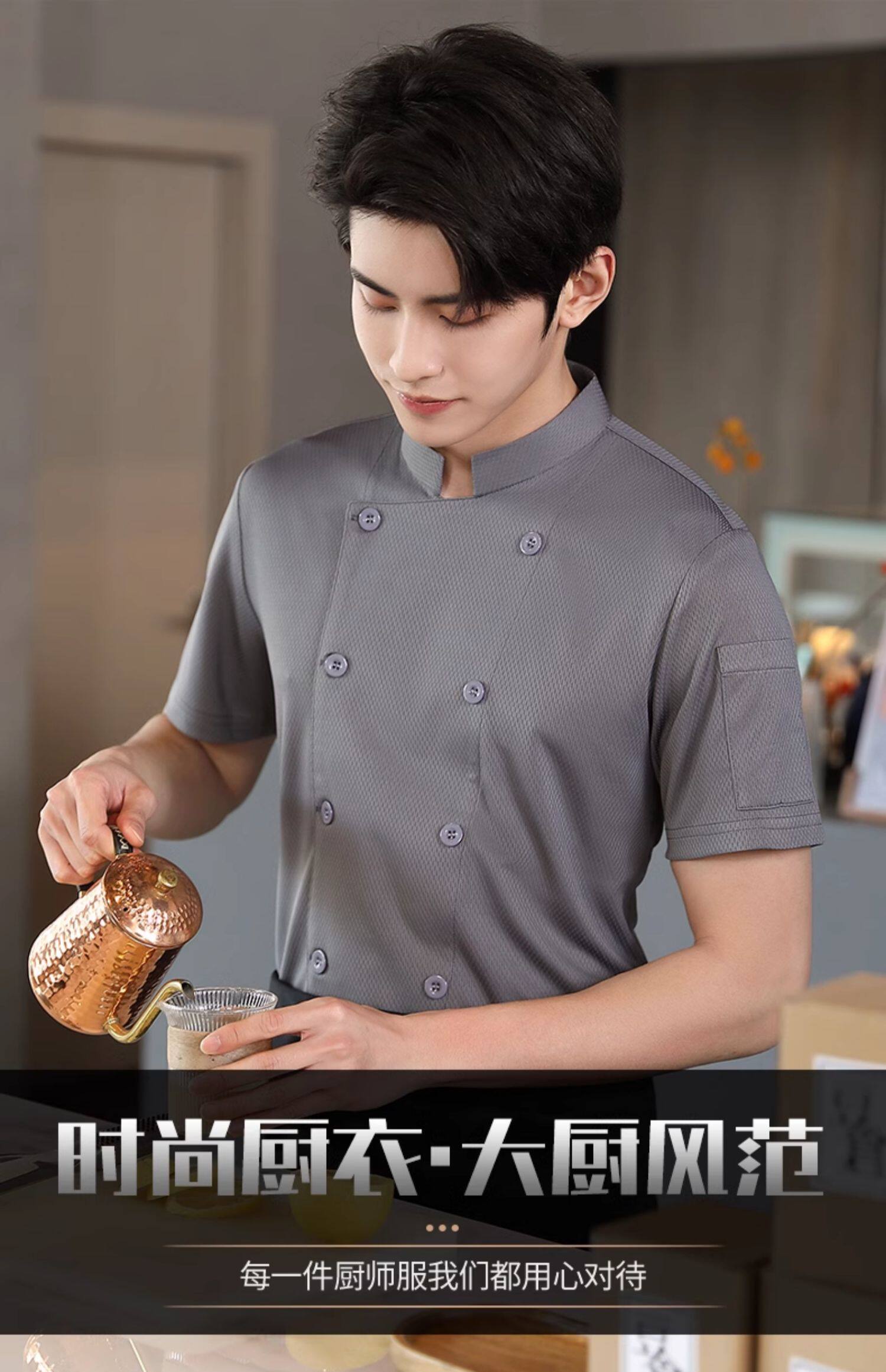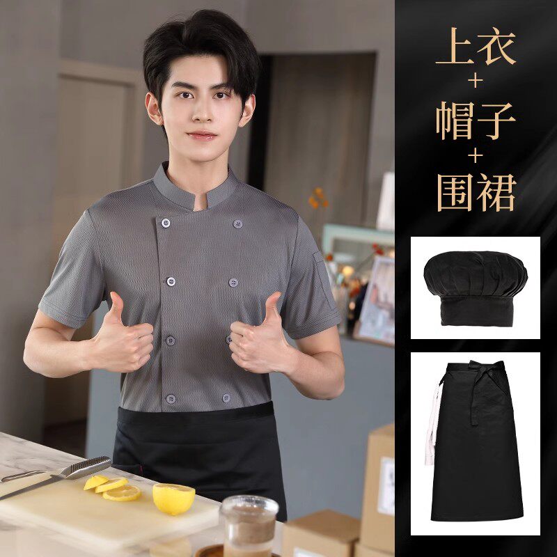 冰丝厨师工作服短袖薄款透气网夏季酒店饭店餐饮食堂烘培厨房服装