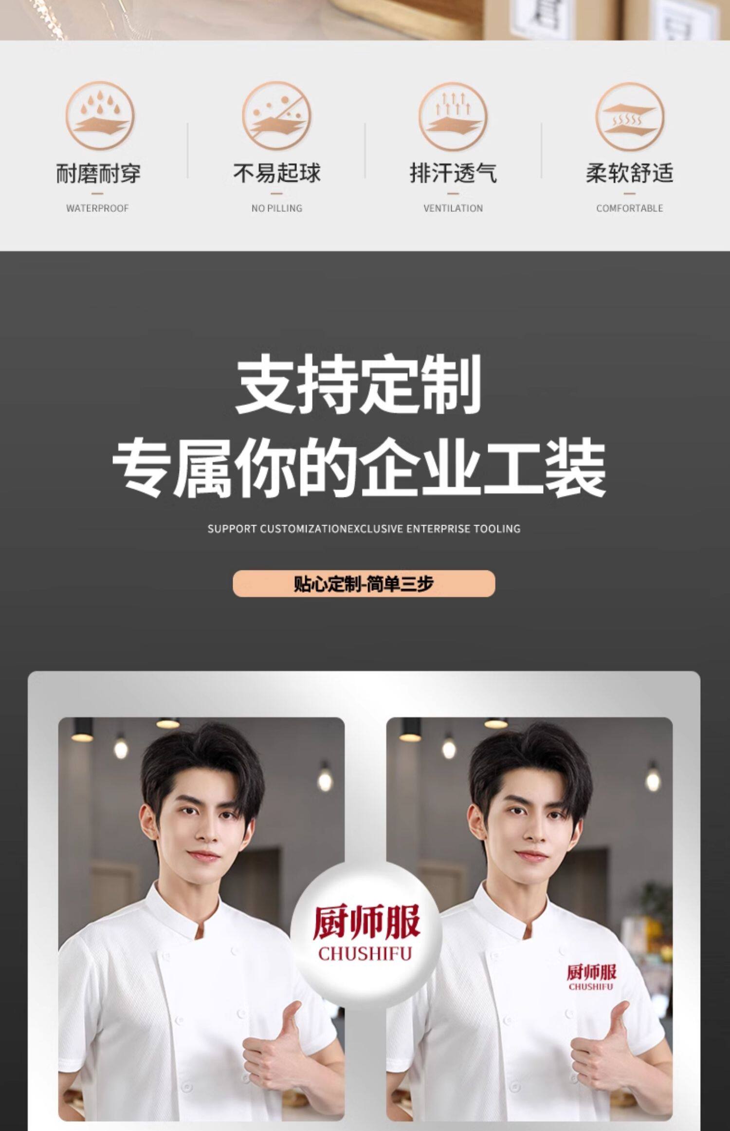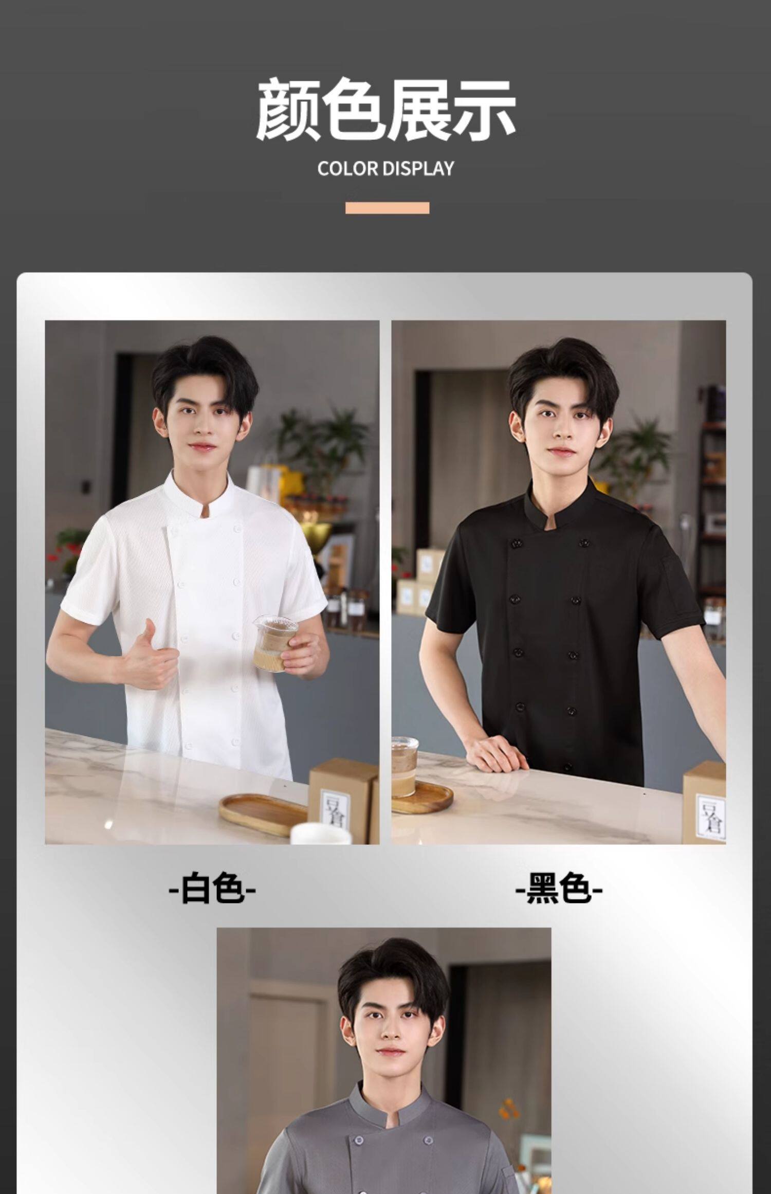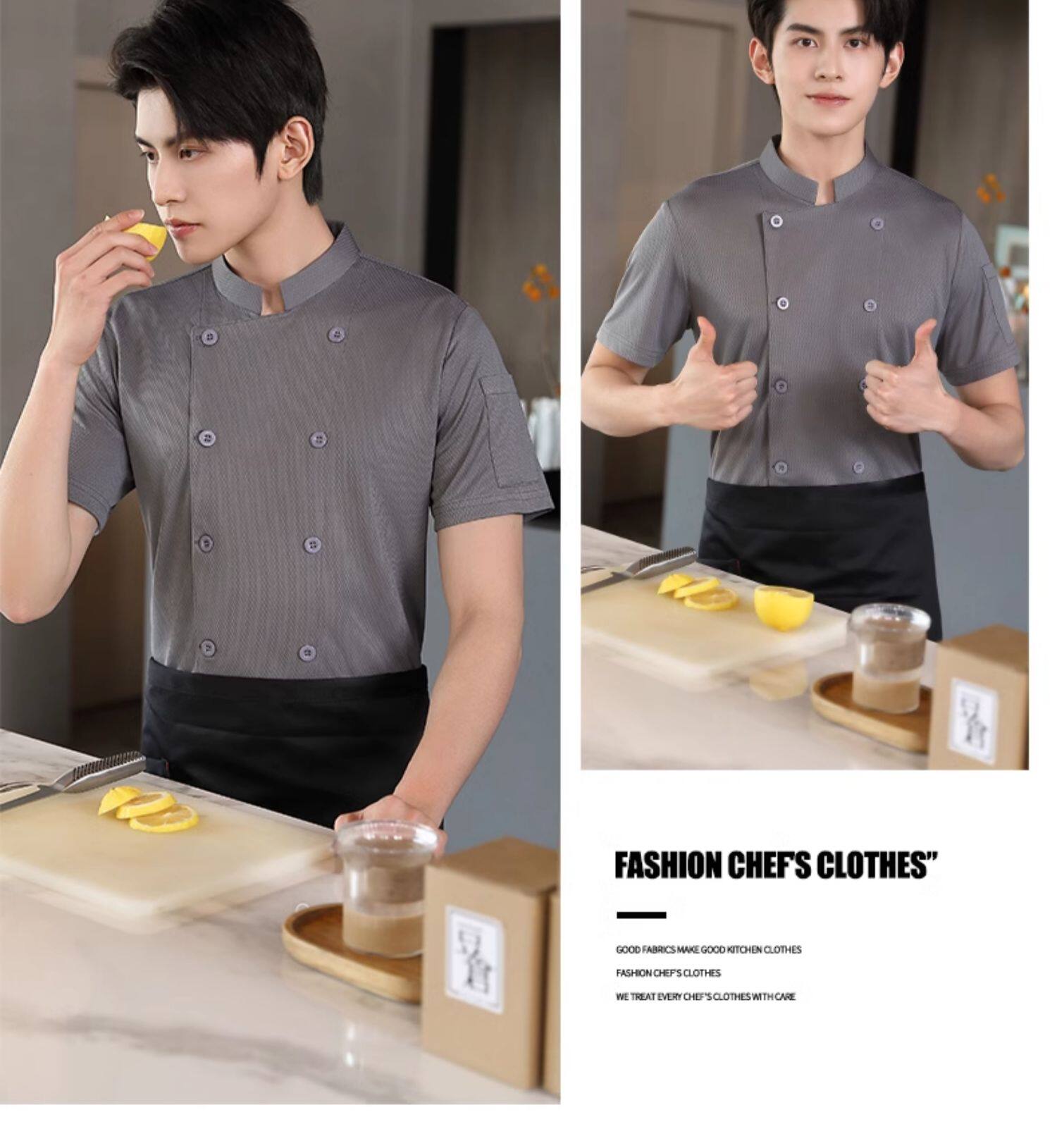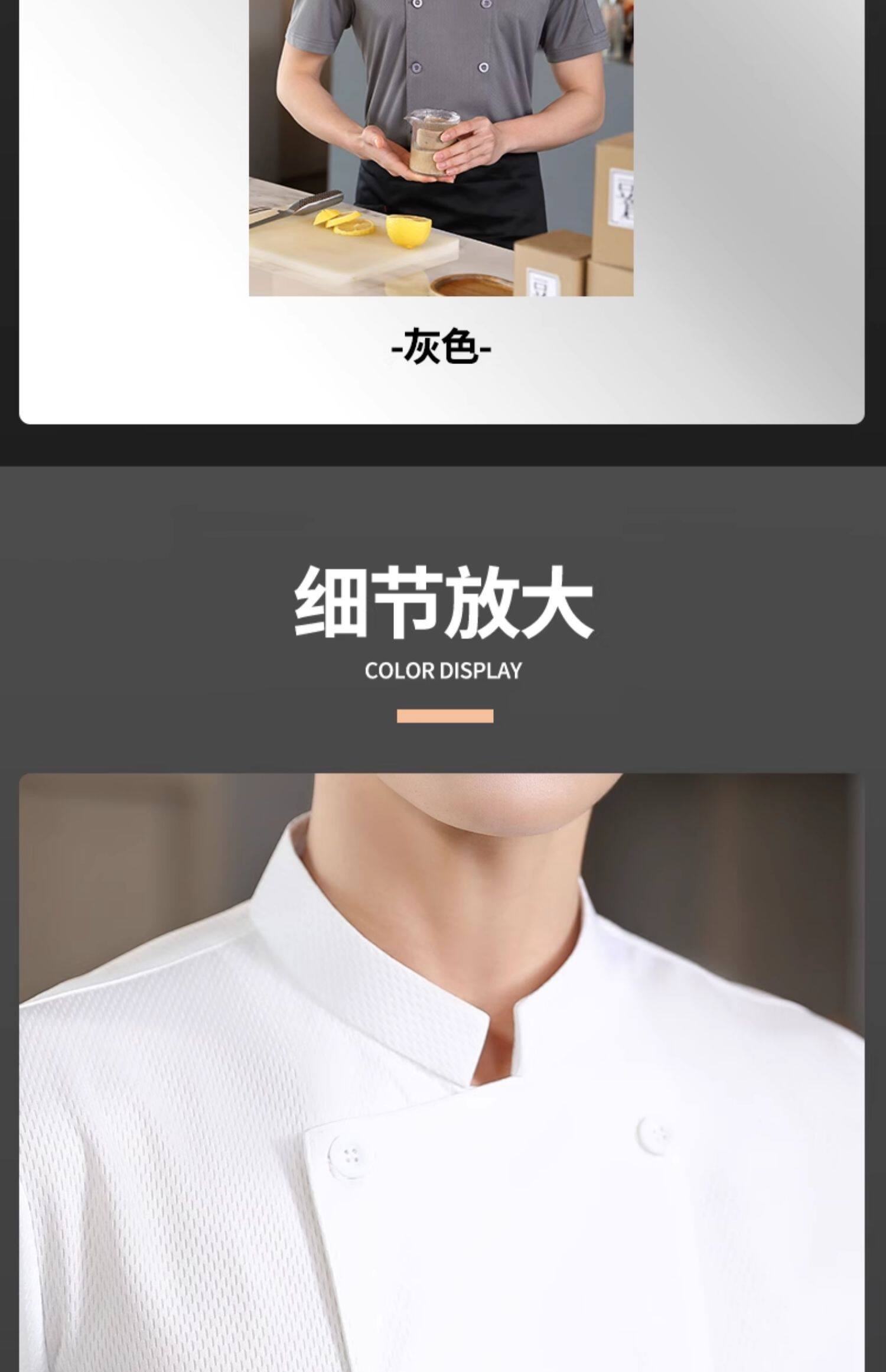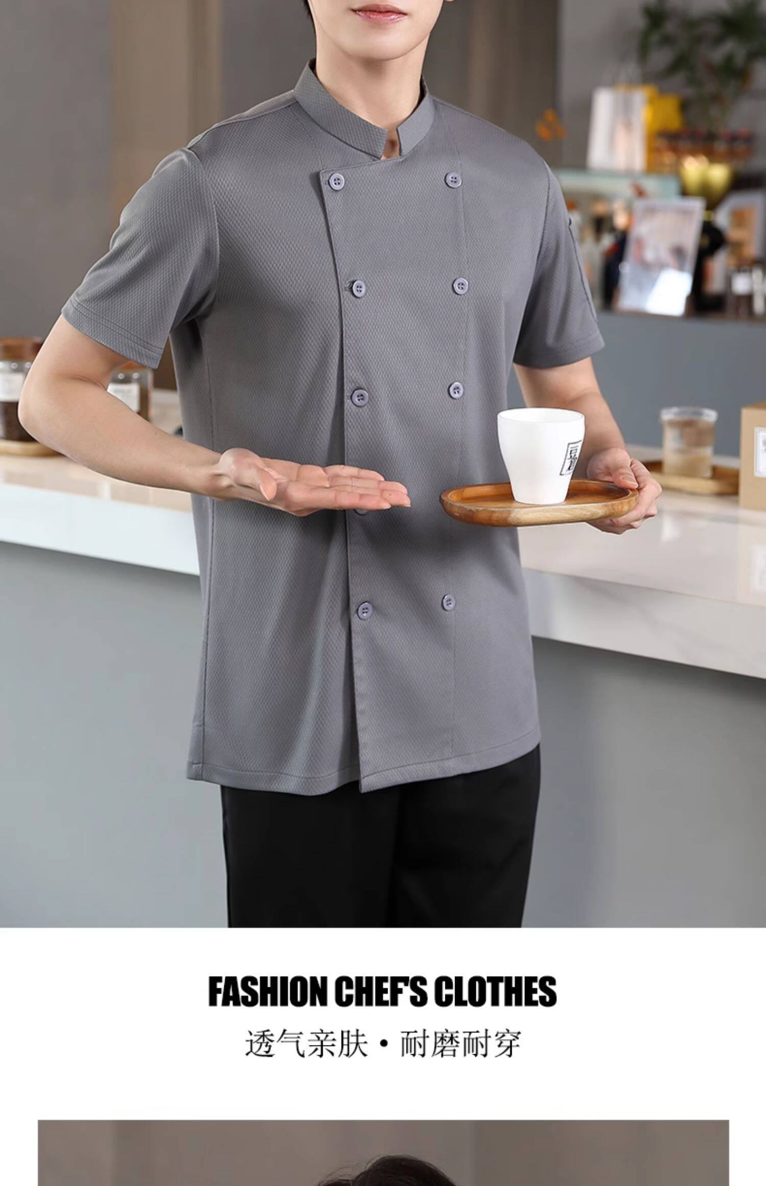 冰丝厨师工作服短袖薄款透气网夏季酒店饭店餐饮食堂烘培厨房服装