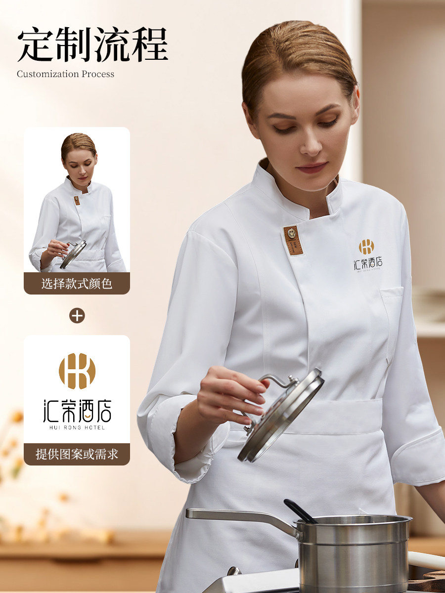 高端厨师工作服长袖秋冬装餐饮酒店西餐厅厨房烘焙裱花师工衣定制
