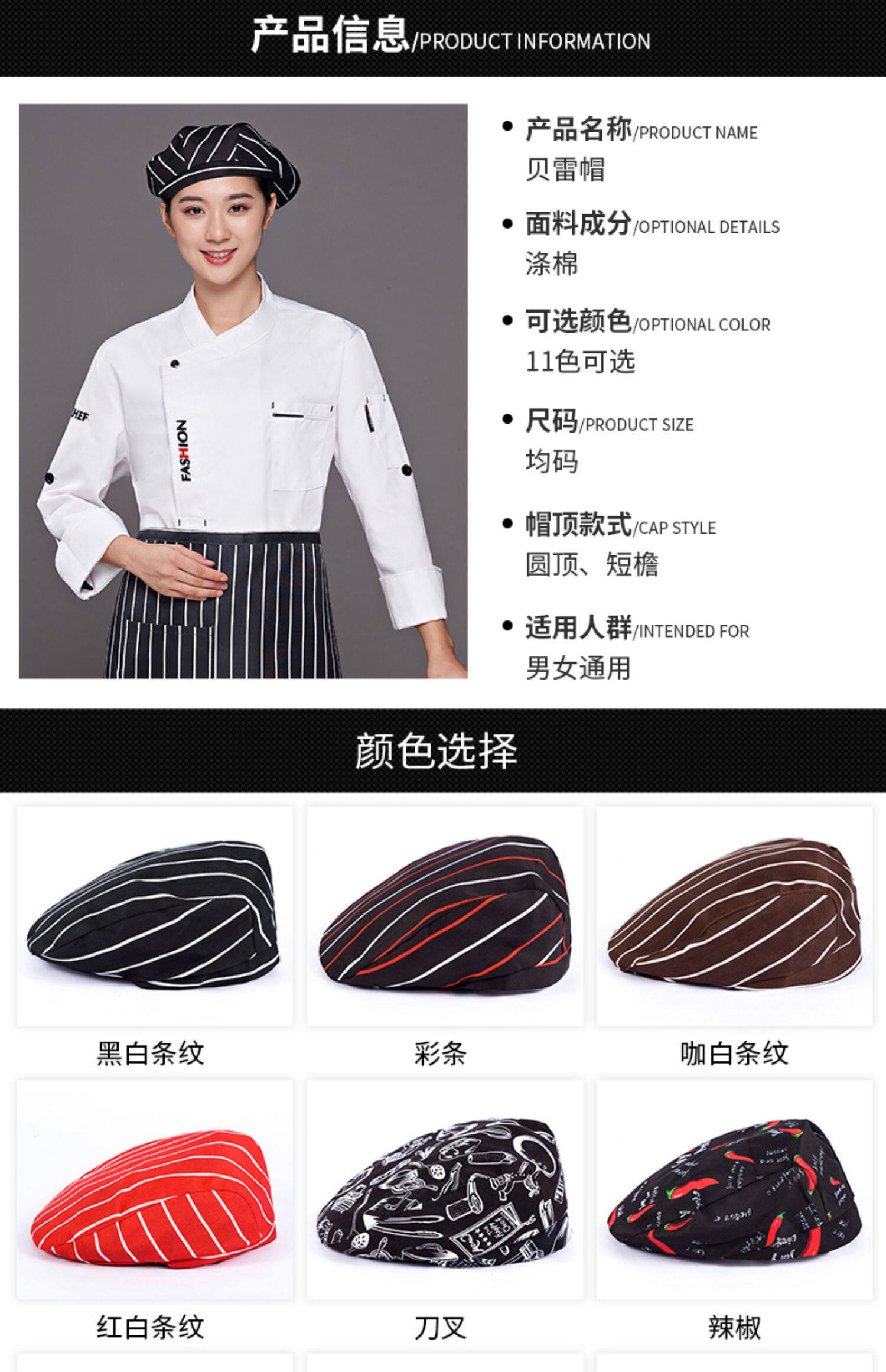 厨师帽子男工作帽白色蘑菇帽食品工厂餐饮厨房防油烟棉布帽女家用