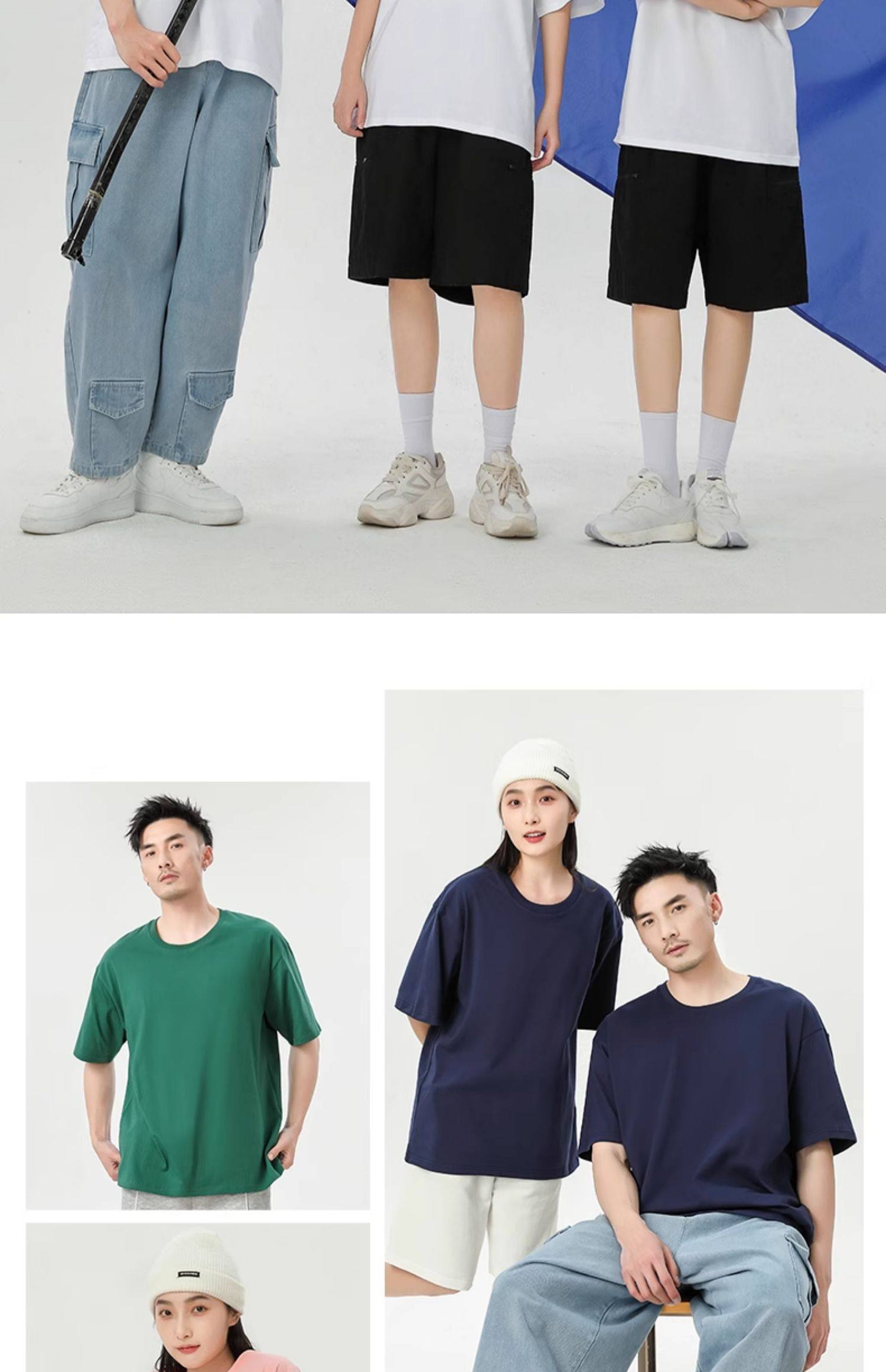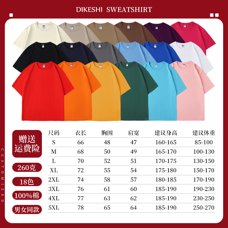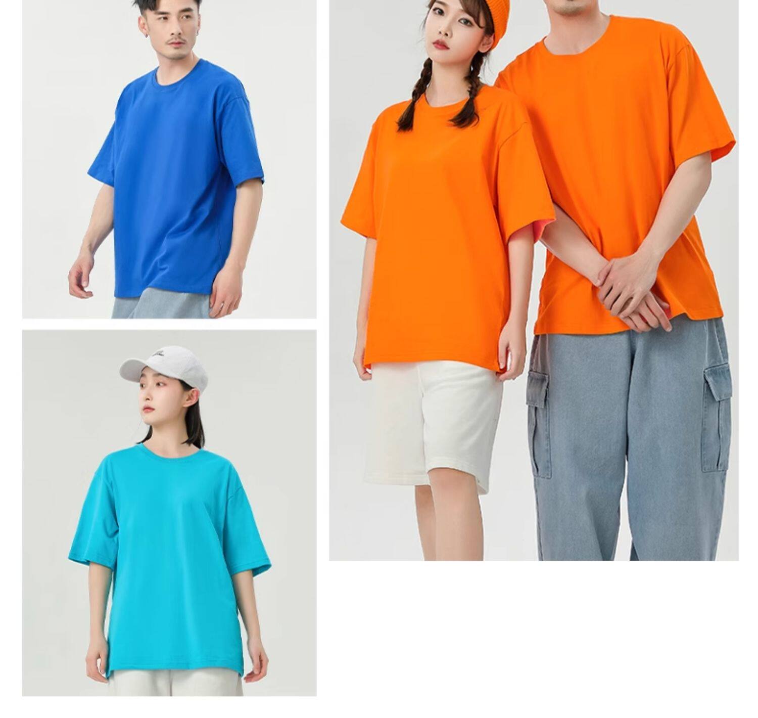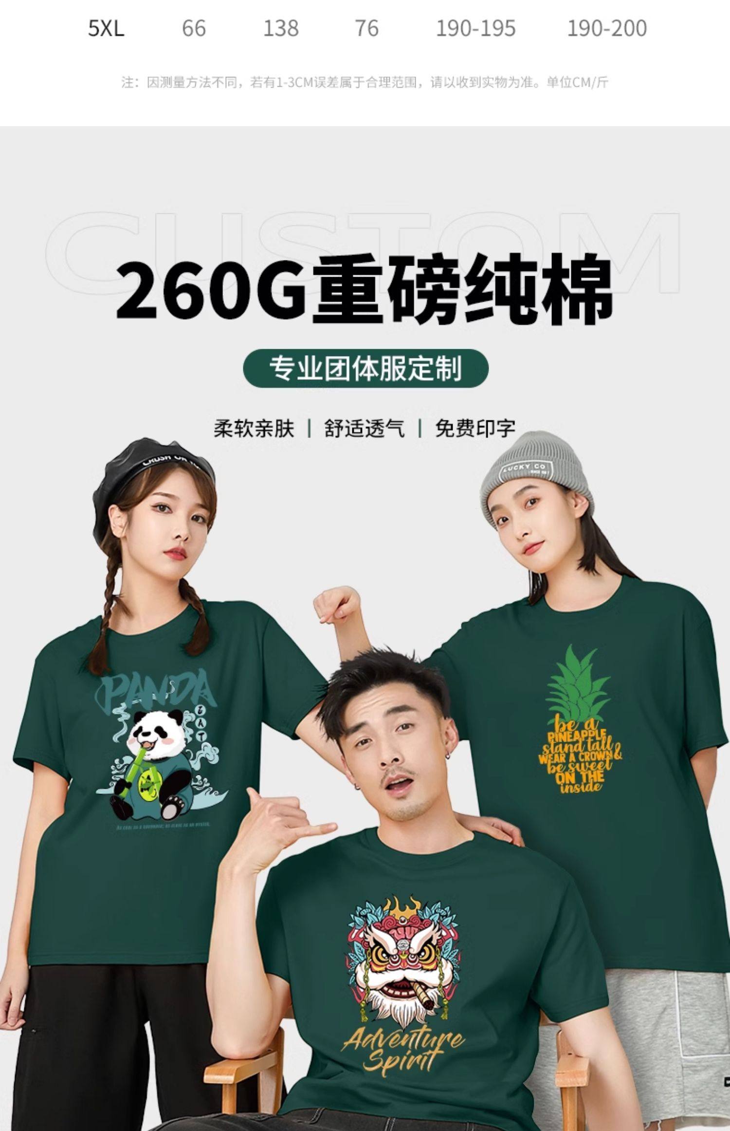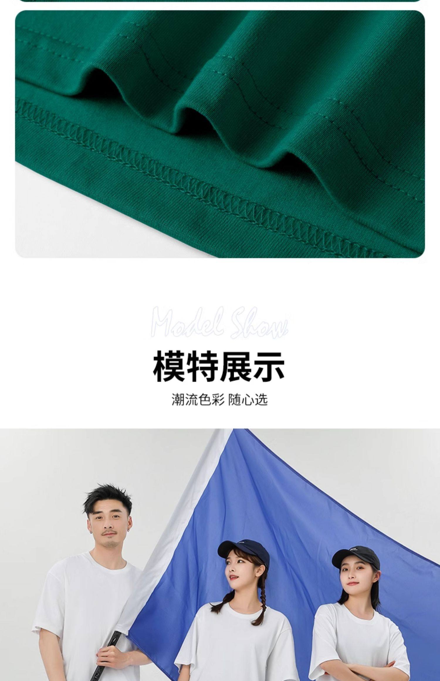 260G纯棉T恤工作服定制印logo短袖落肩团体文化衫班服衣服装订制