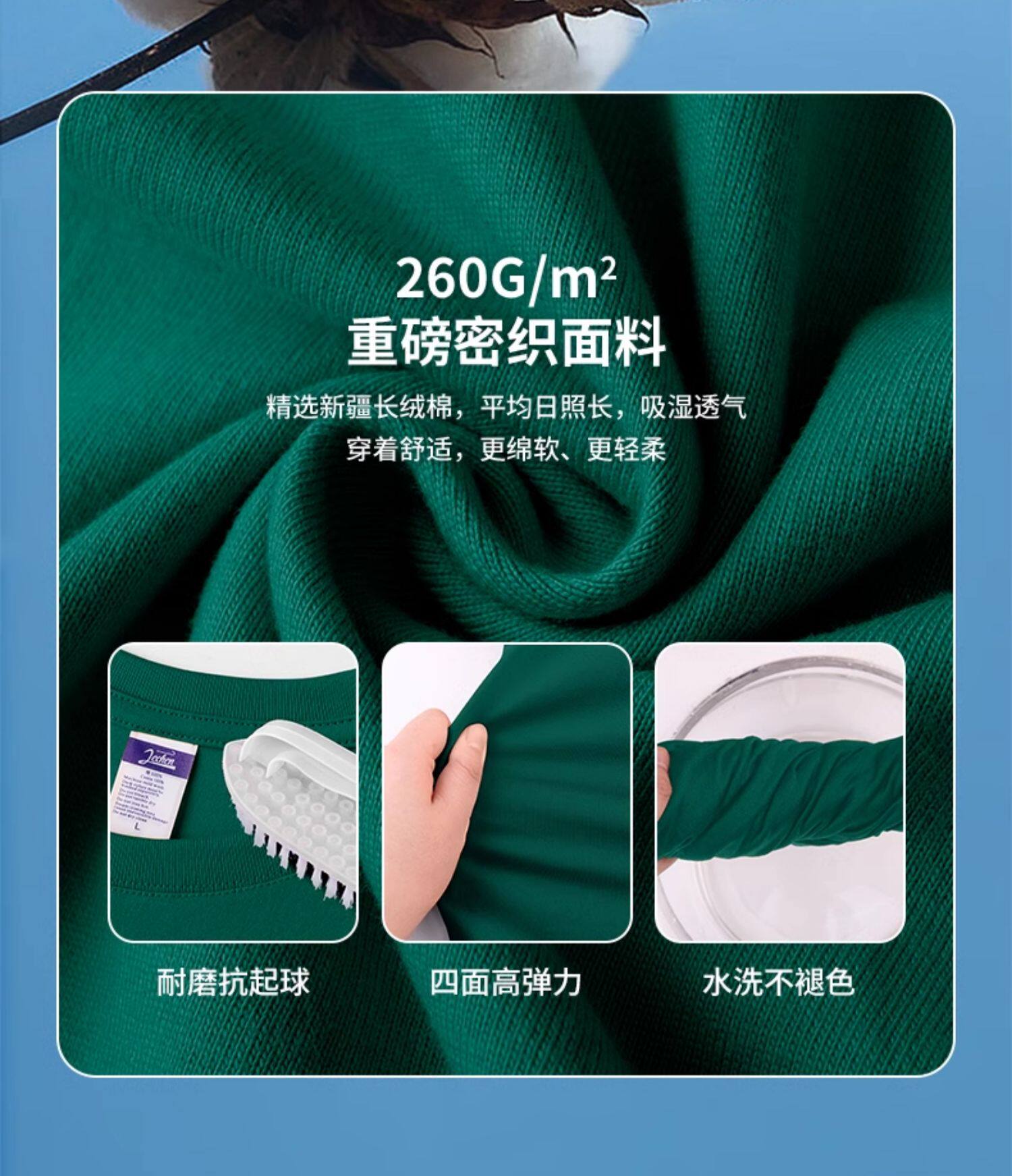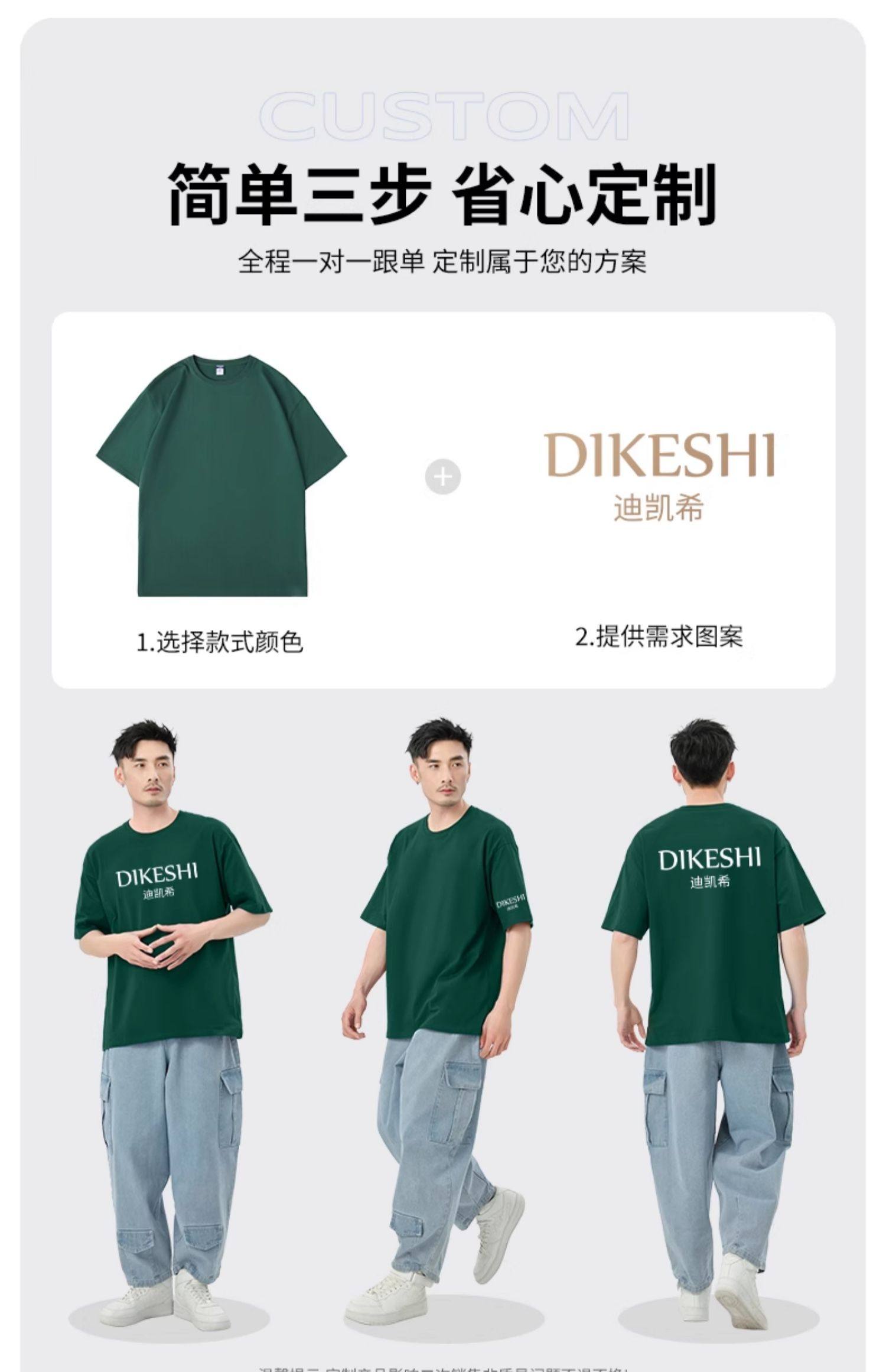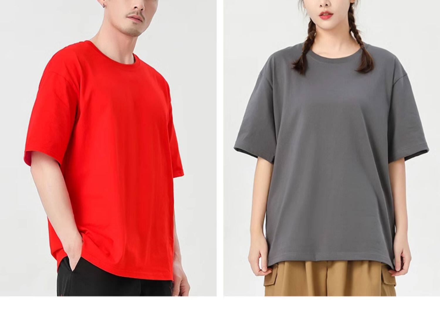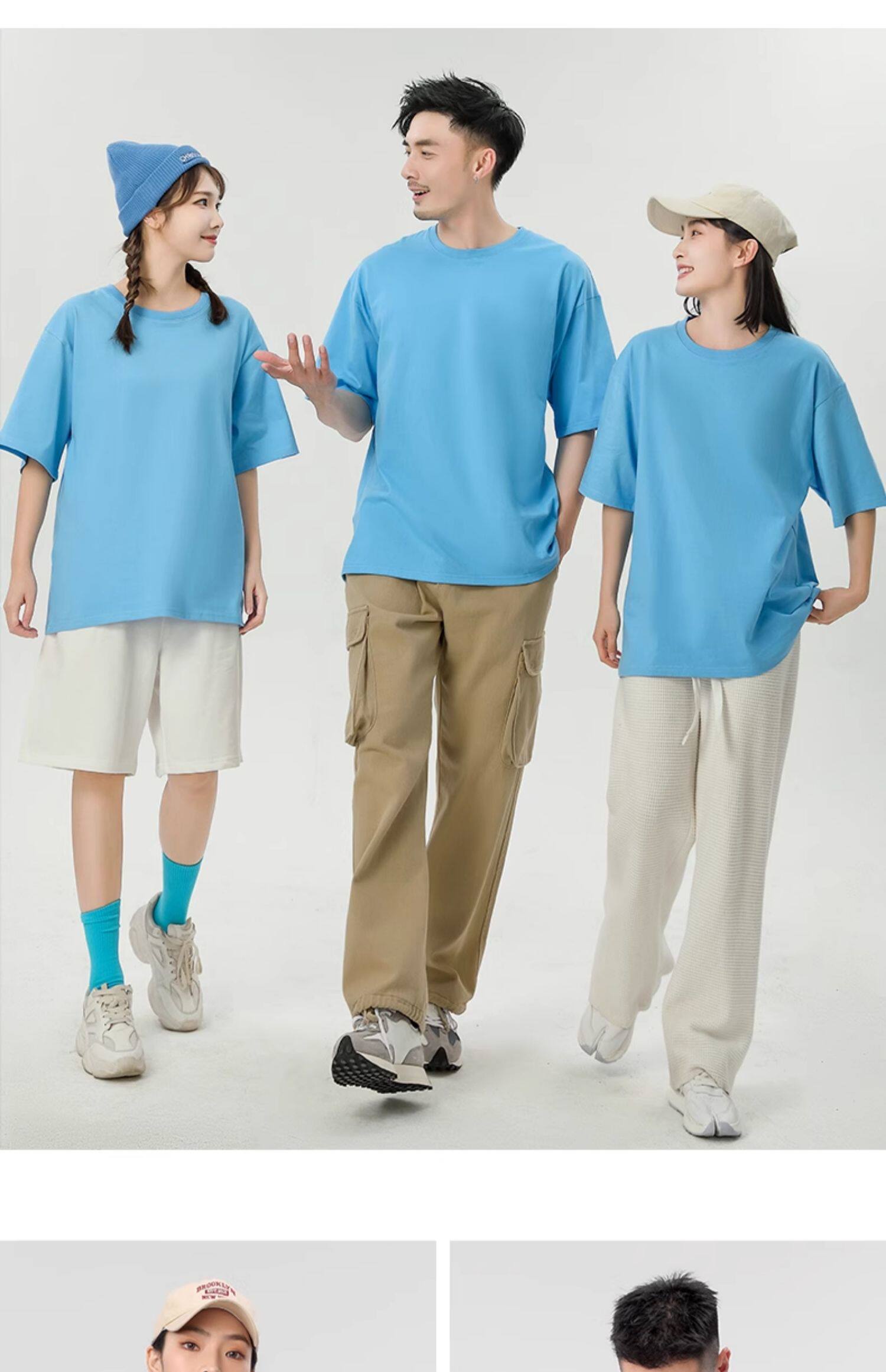 260G纯棉T恤工作服定制印logo短袖落肩团体文化衫班服衣服装订制