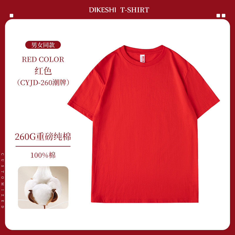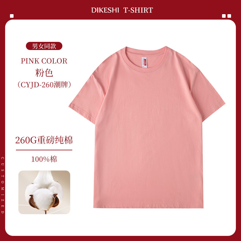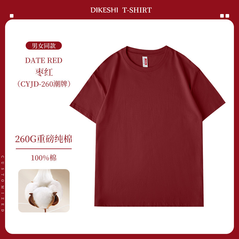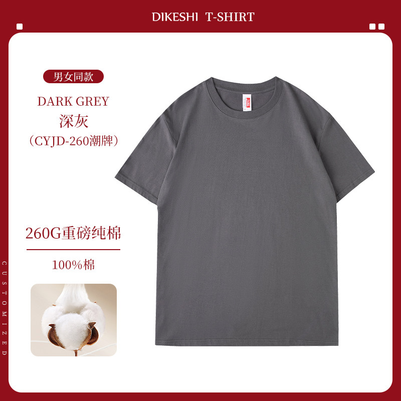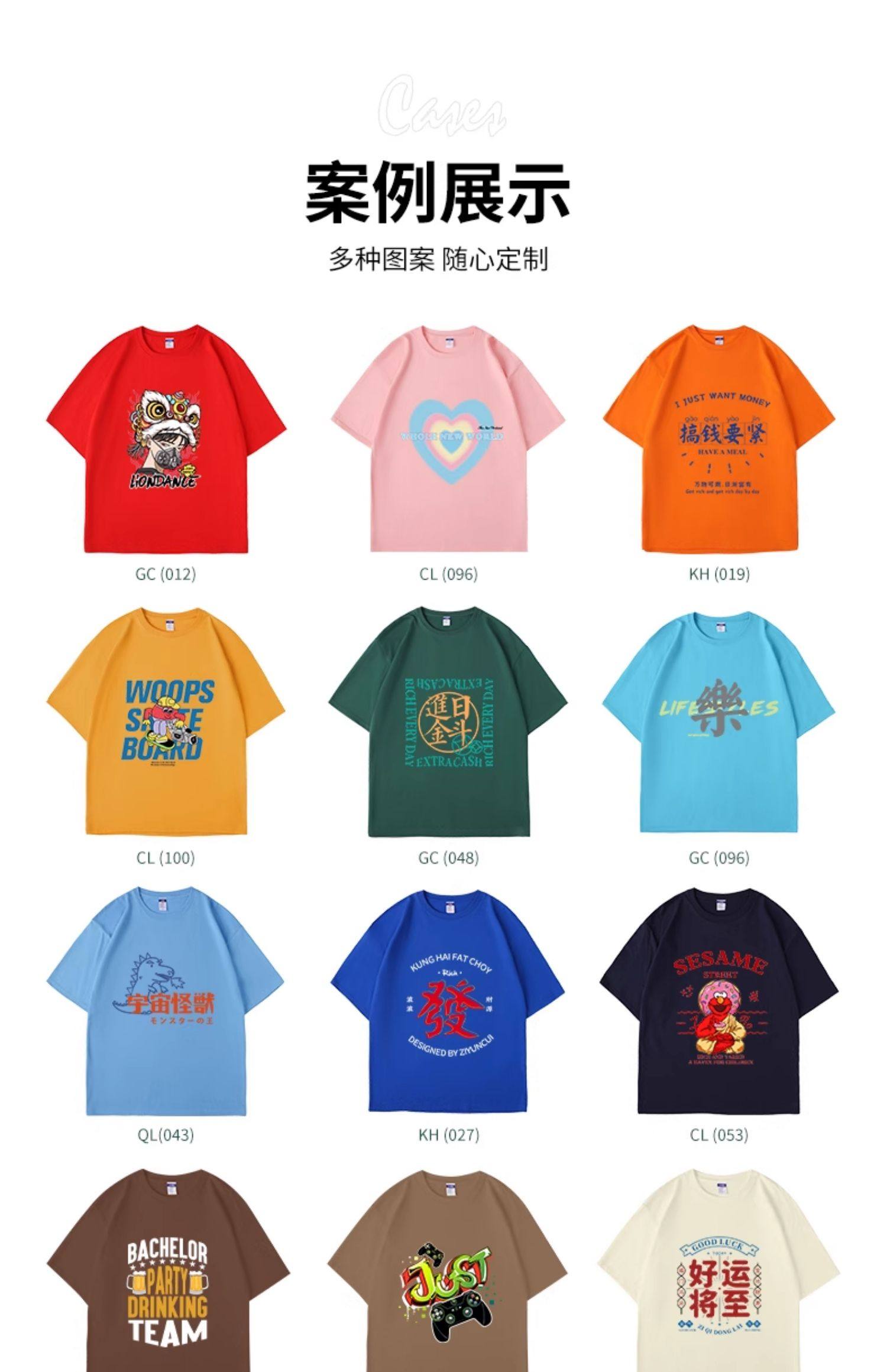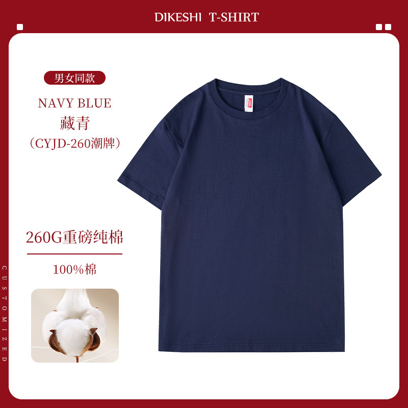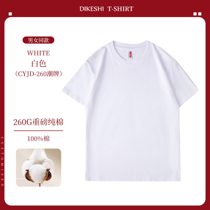 260G纯棉T恤工作服定制印logo短袖落肩团体文化衫班服衣服装订制