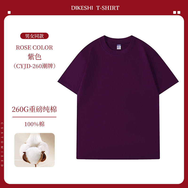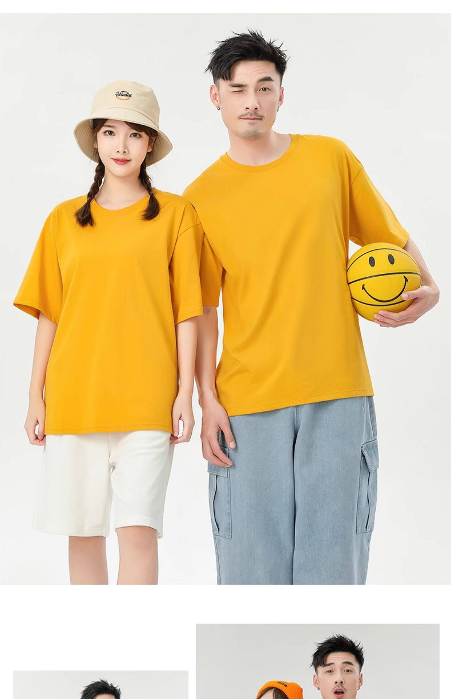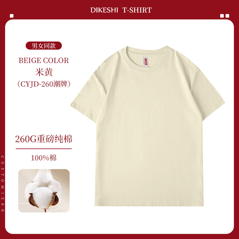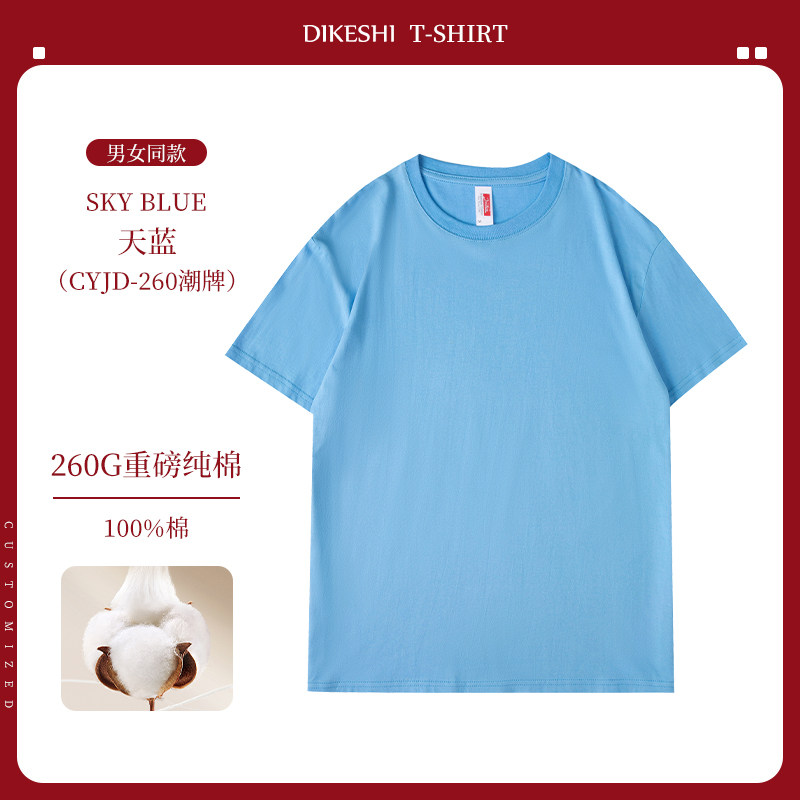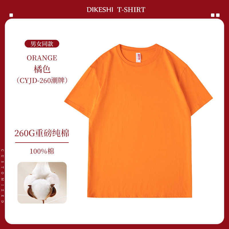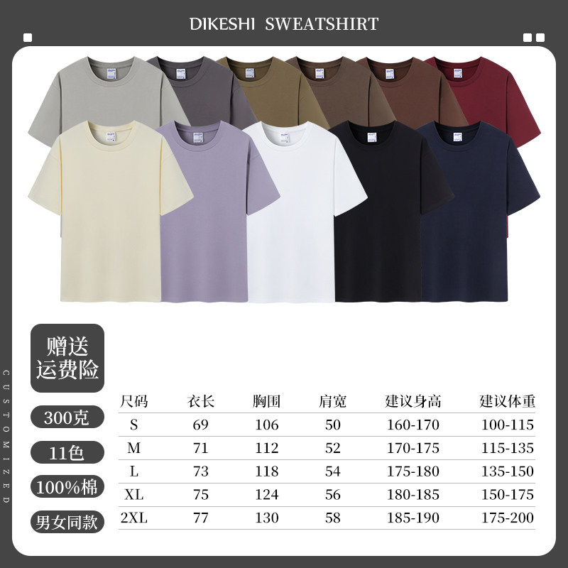 260G纯棉T恤工作服定制印logo短袖落肩团体文化衫班服衣服装订制