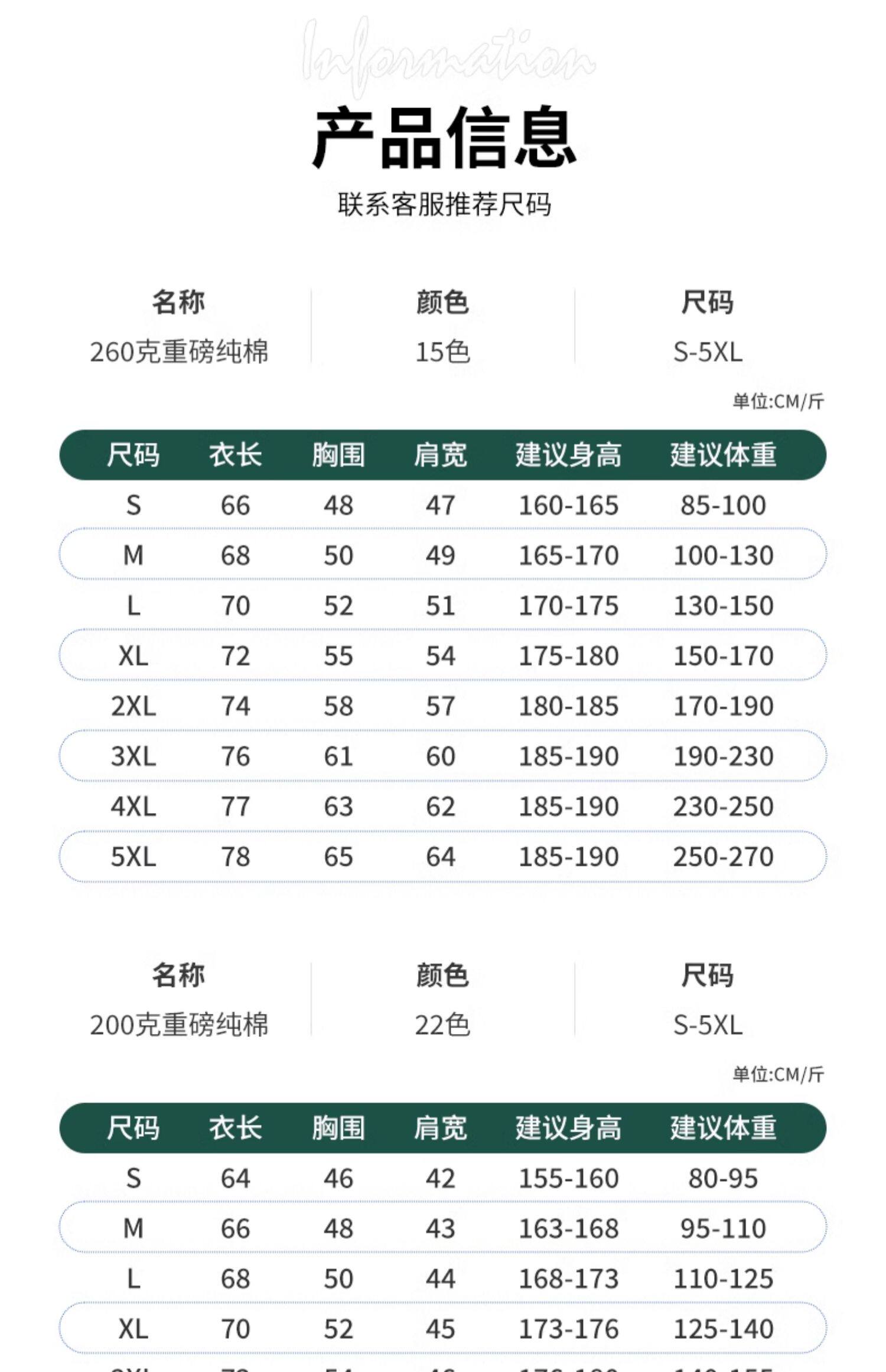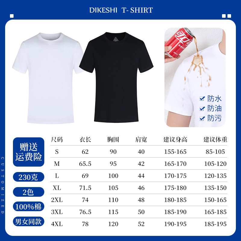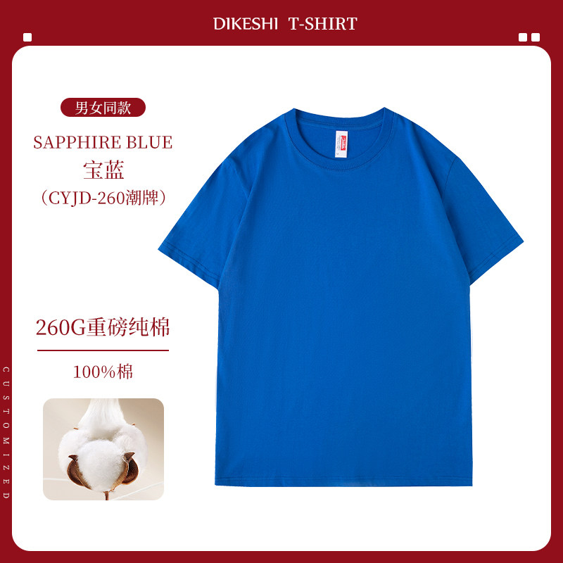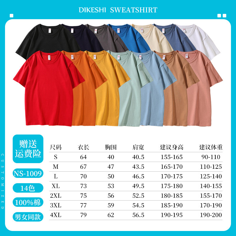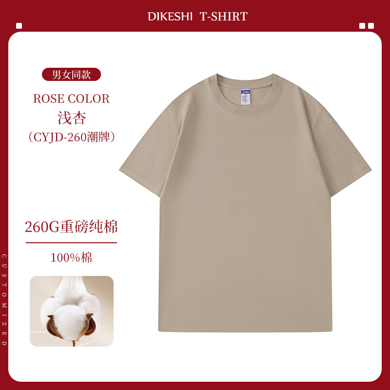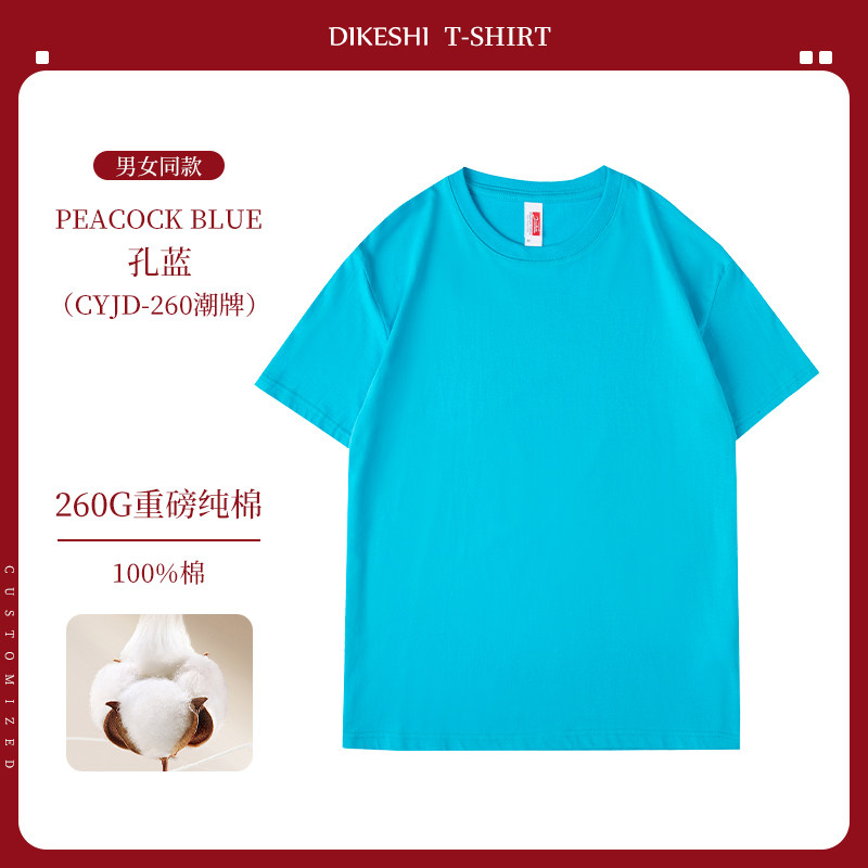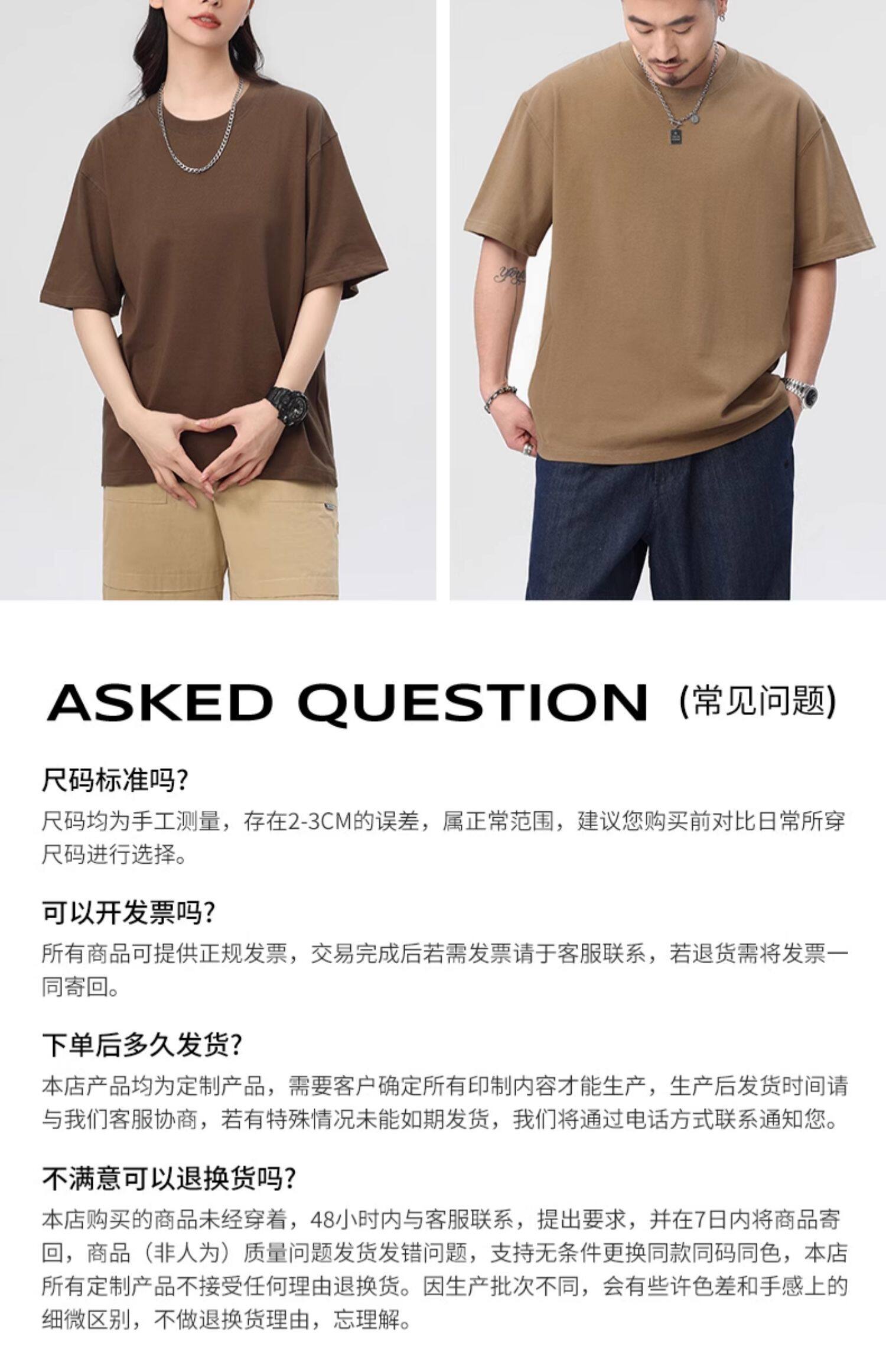 260G纯棉T恤工作服定制印logo短袖落肩团体文化衫班服衣服装订制