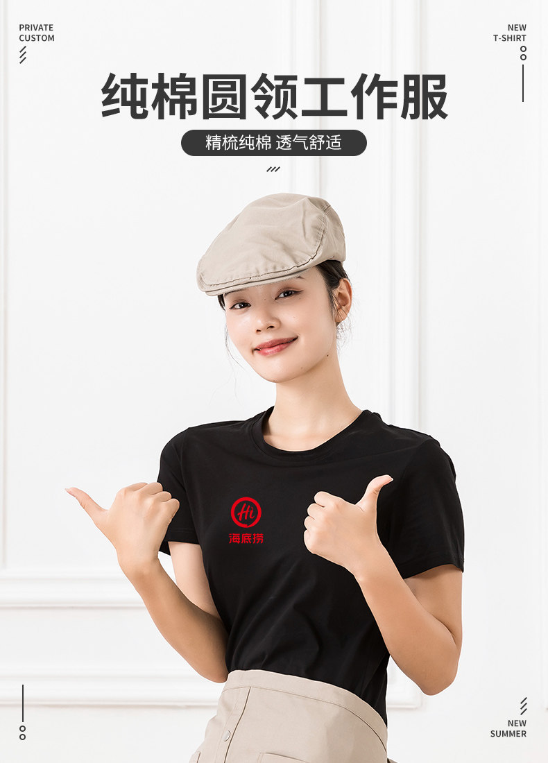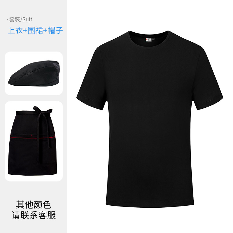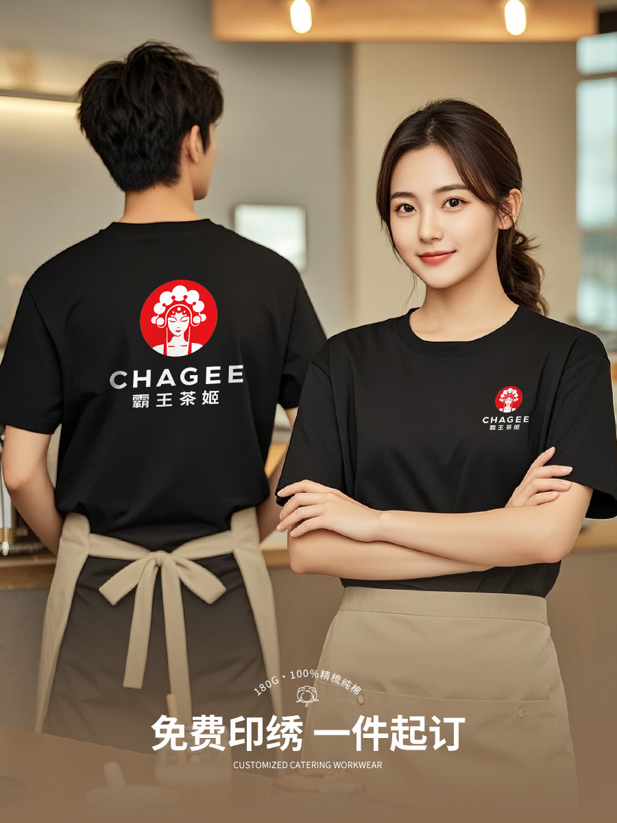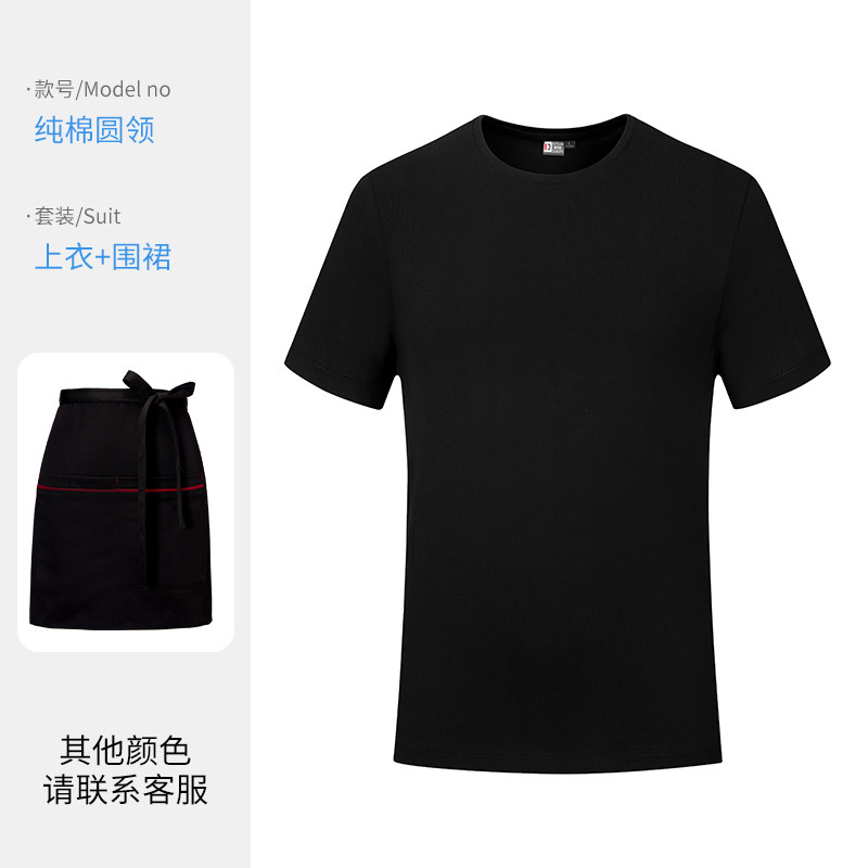纯棉餐饮服务员工作服短袖T恤男夏季烧烤火锅奶茶店工服工装定制