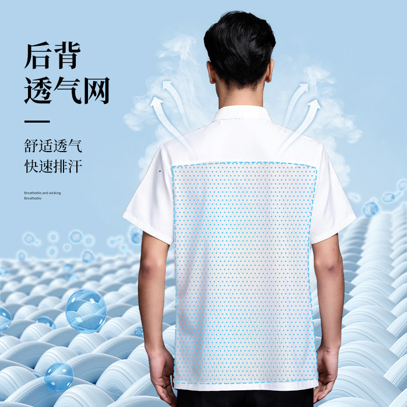 透气网厨师工作服短袖夏季餐饮酒店饭店西餐厅薄款厨房后厨专用男