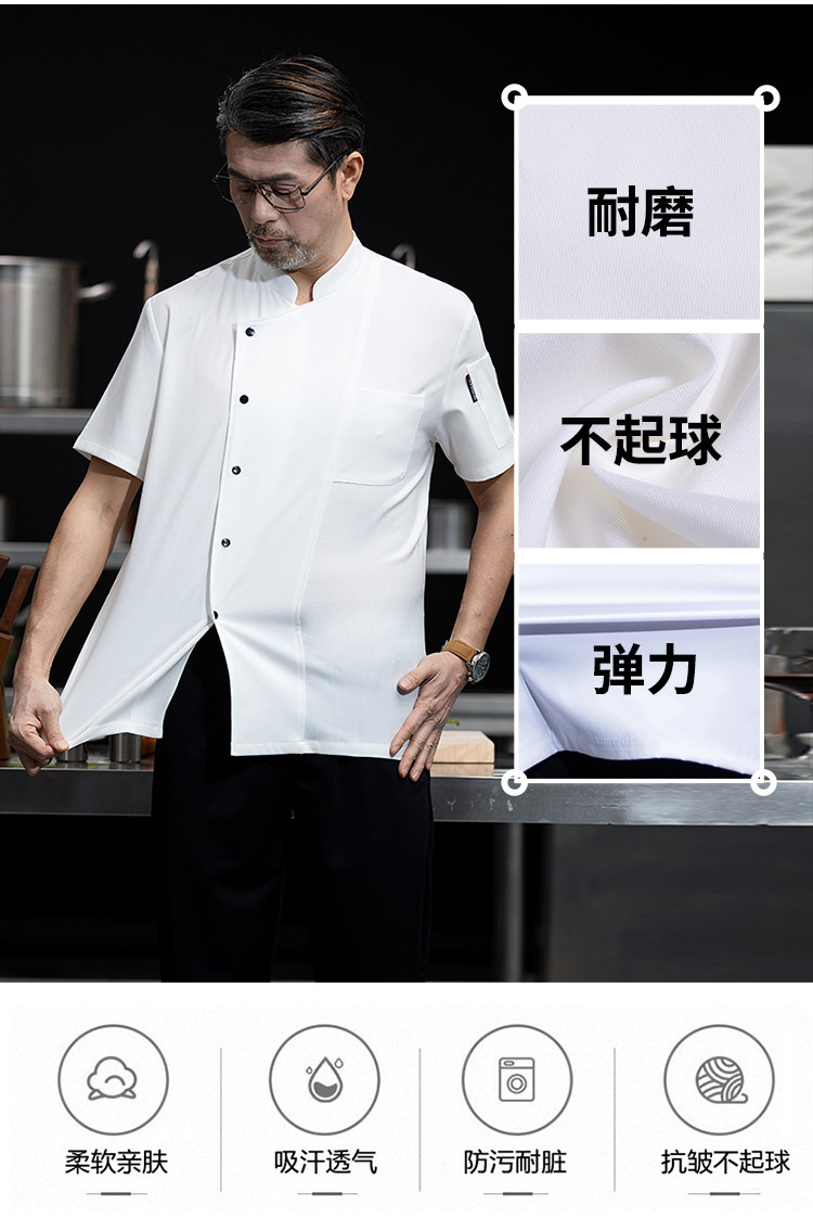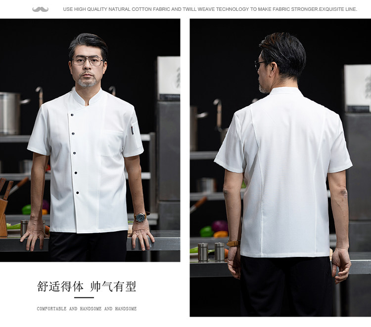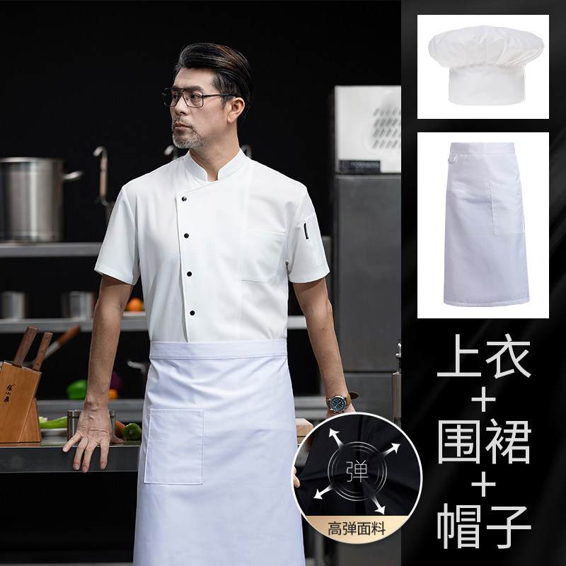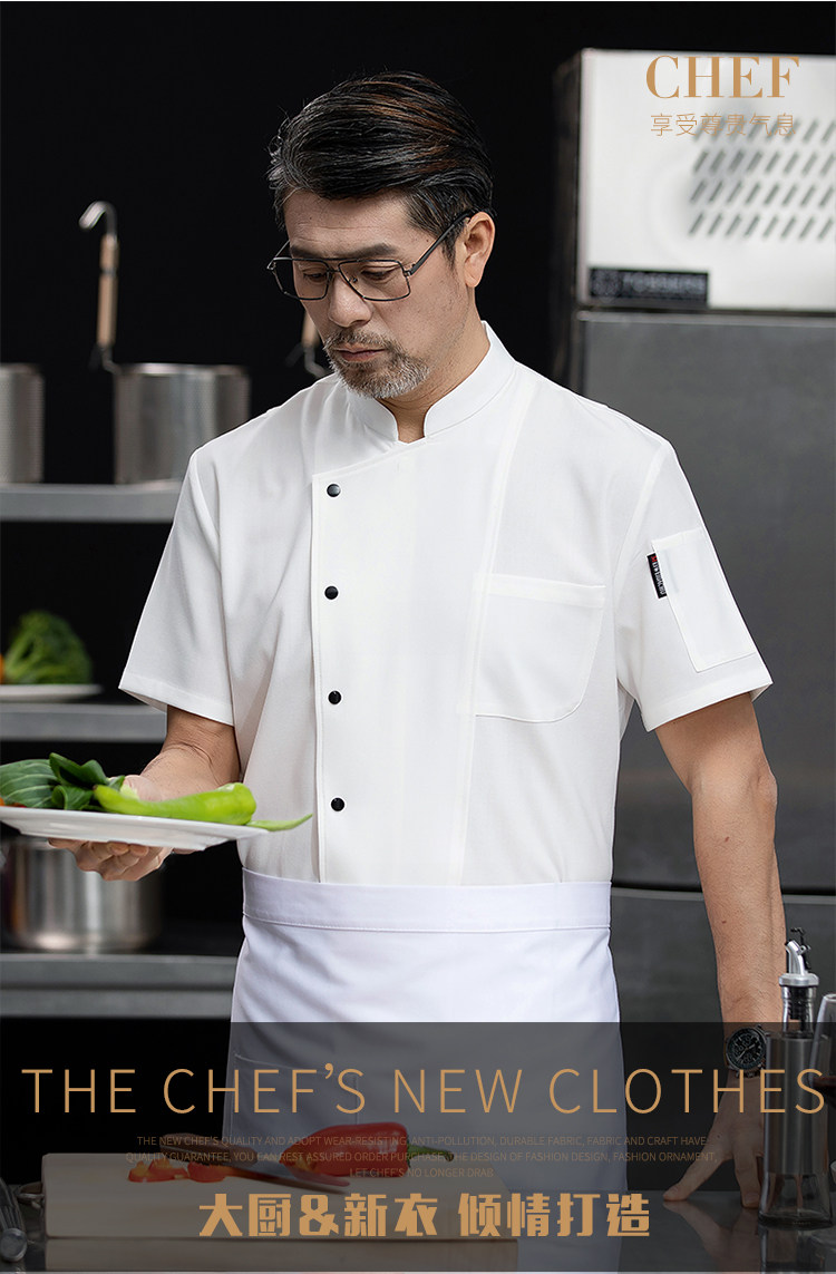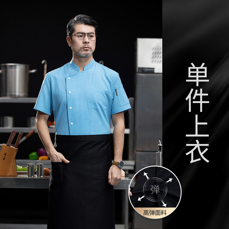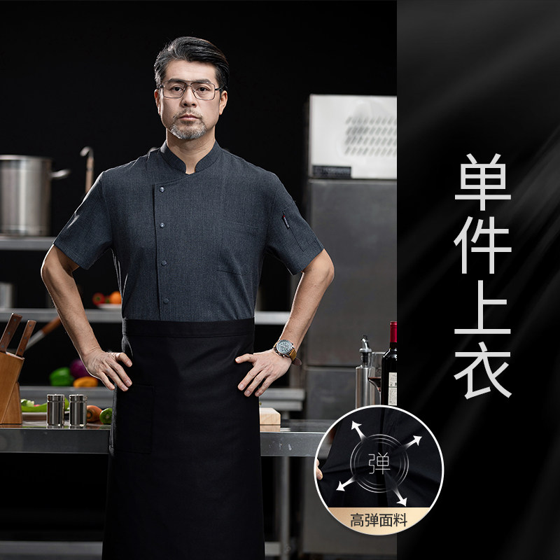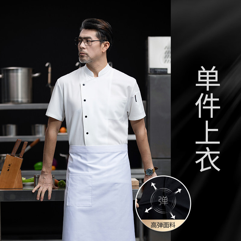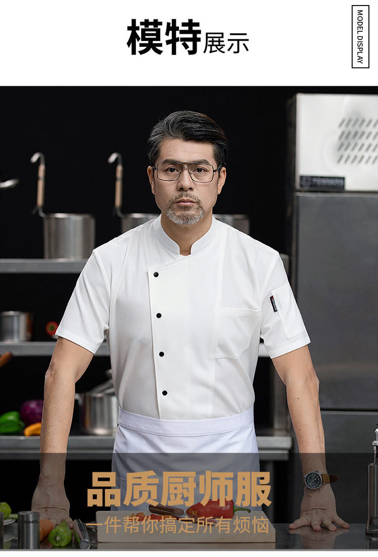 高端厨师工作服短袖透气工装男夏季餐饮酒店早点西餐厅后厨房厨衣