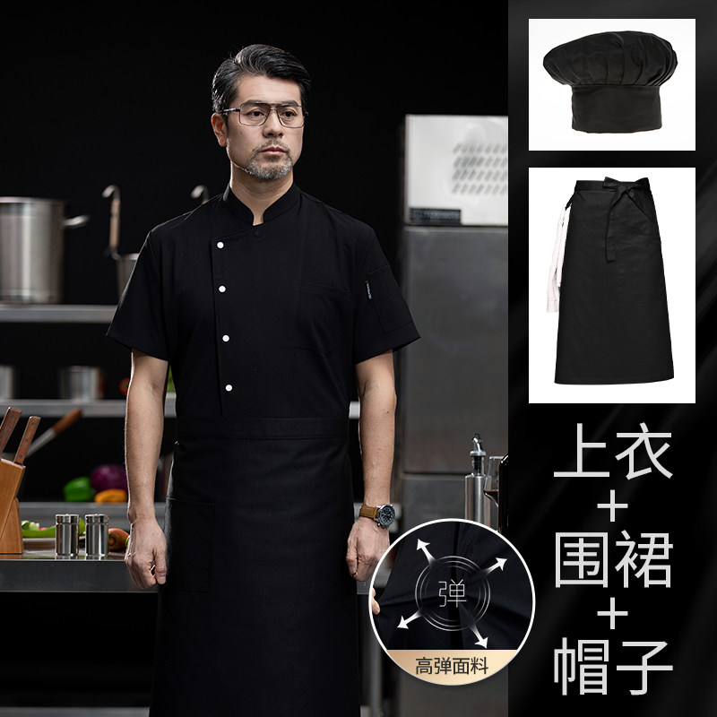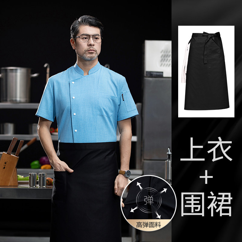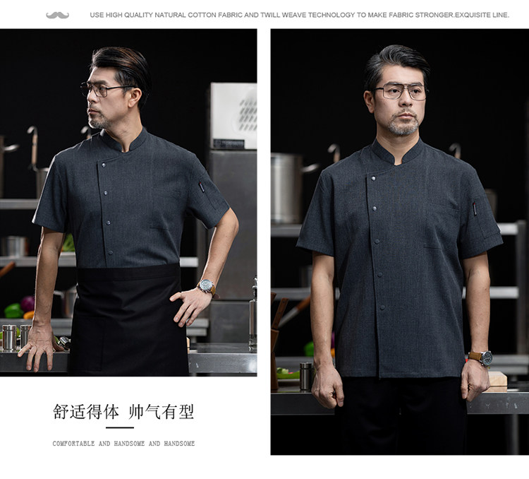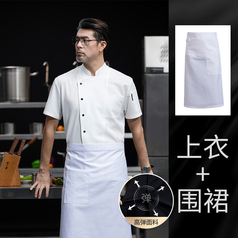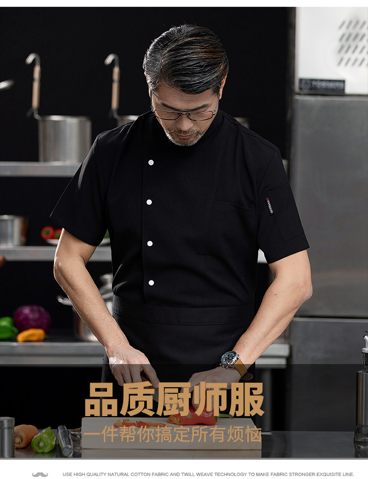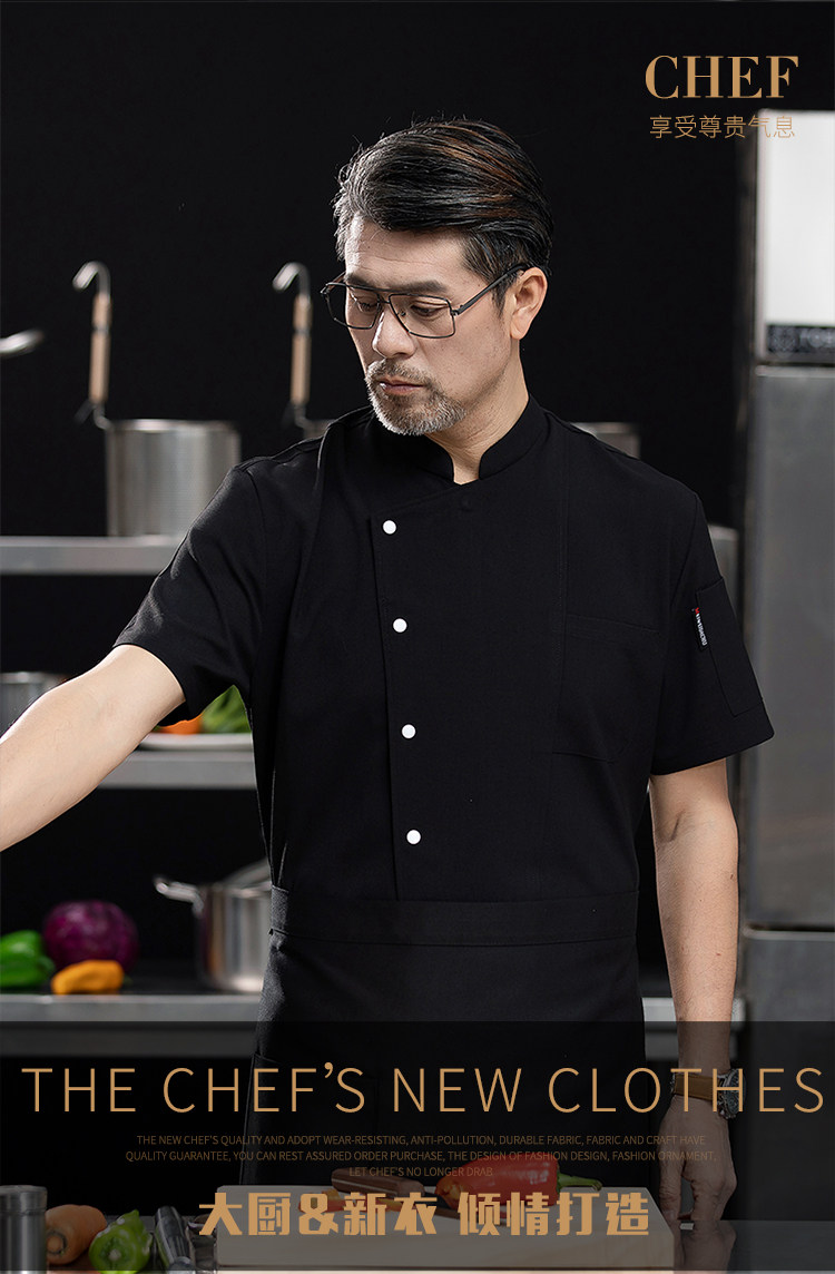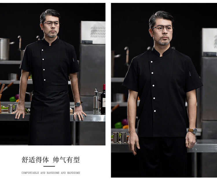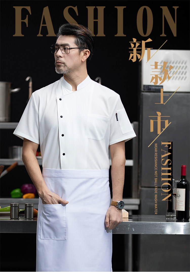高端厨师工作服短袖透气工装男夏季餐饮酒店早点西餐厅后厨房厨衣