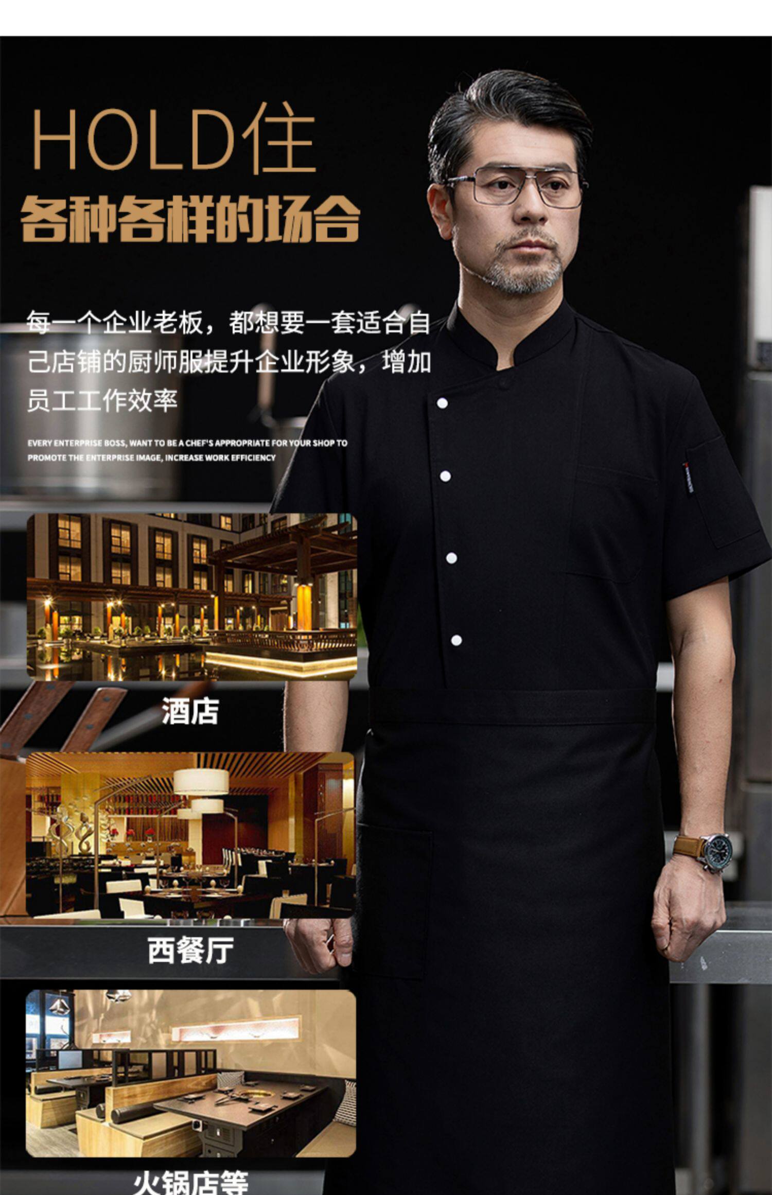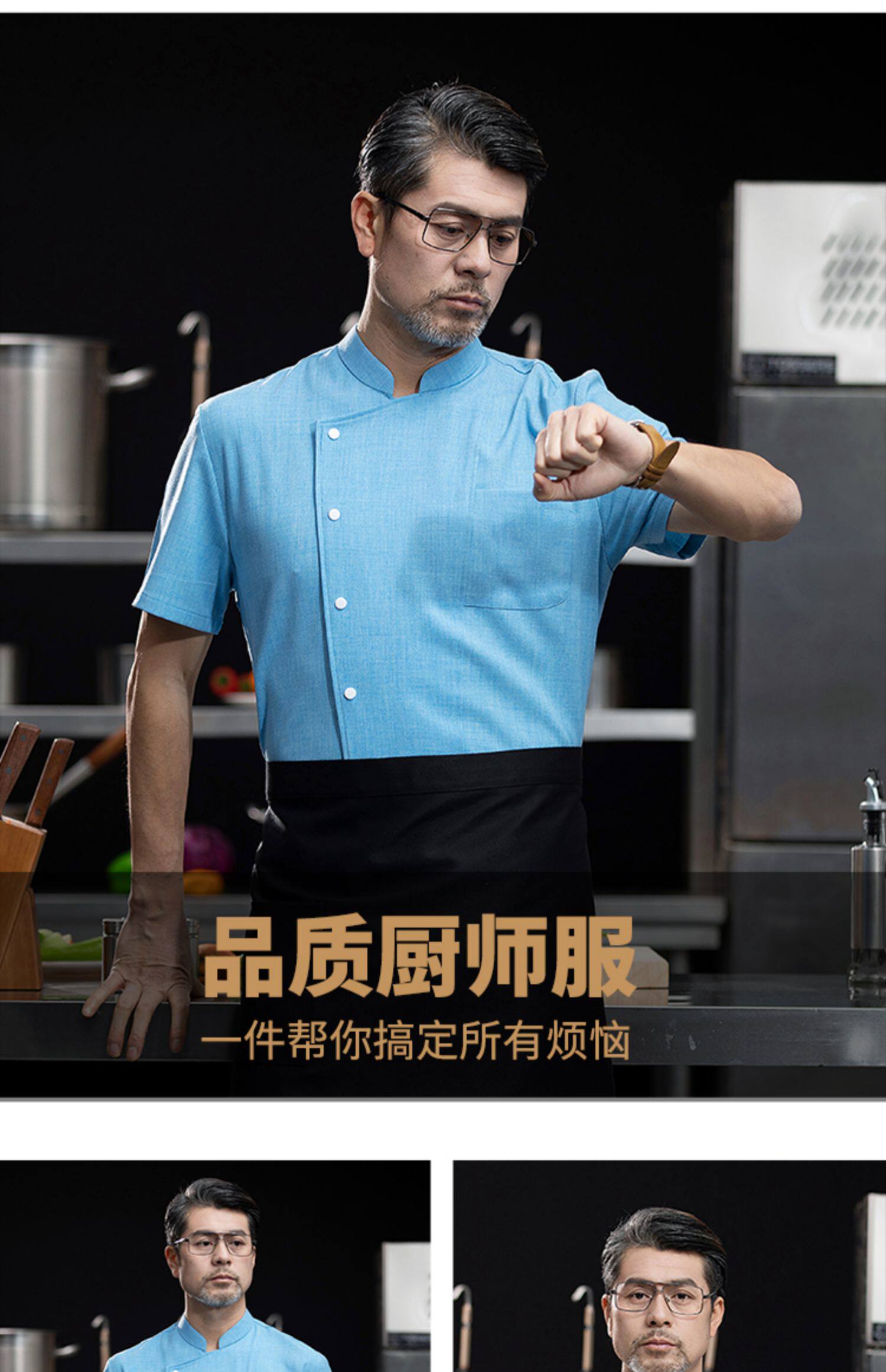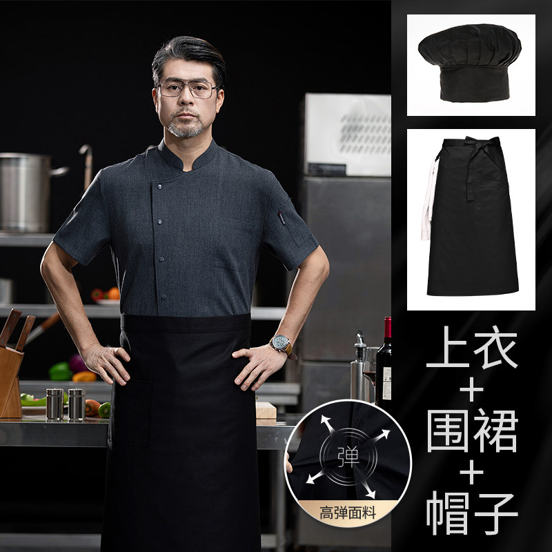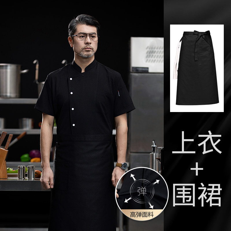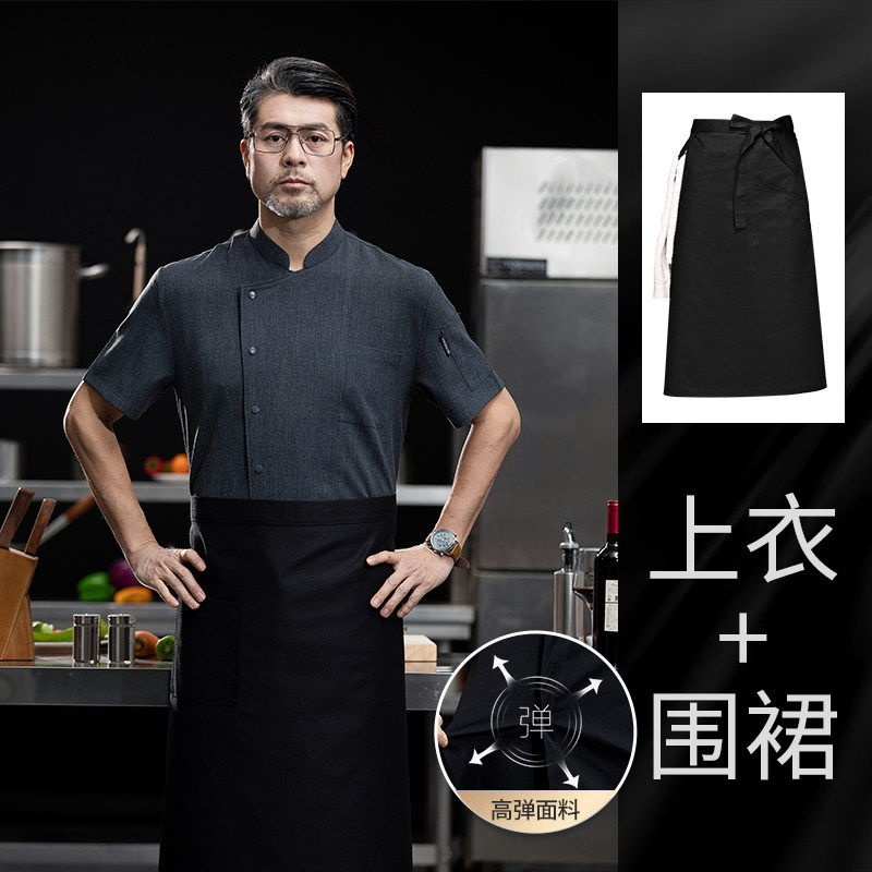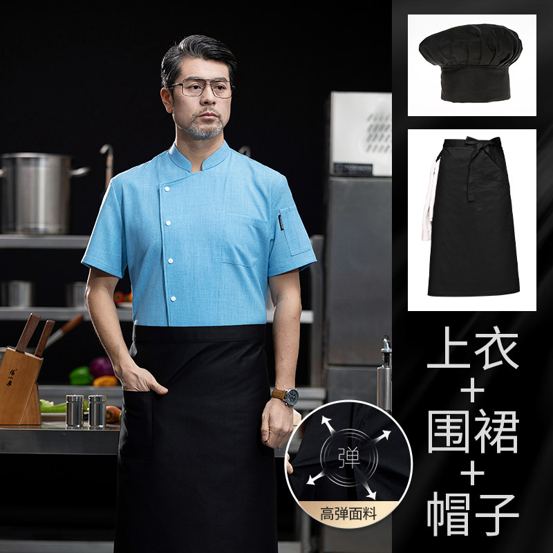 高端厨师工作服短袖透气工装男夏季餐饮酒店早点西餐厅后厨房厨衣