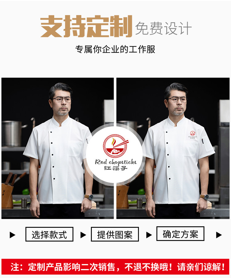 冰丝厨师服工作服短袖男餐饮烘焙饭店厨房面点透气定制厨衣印logo