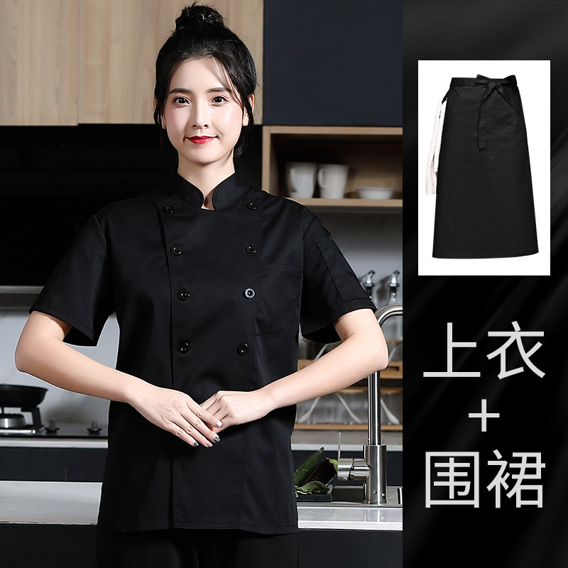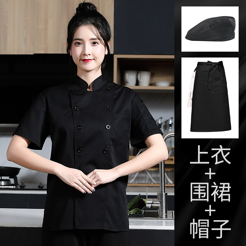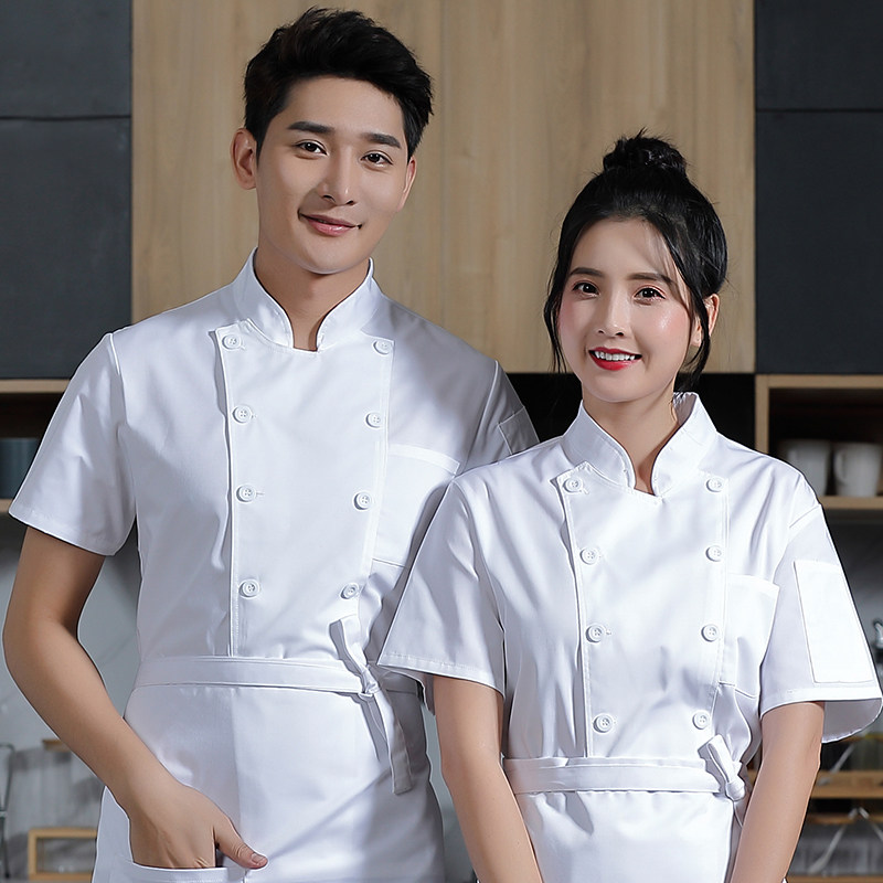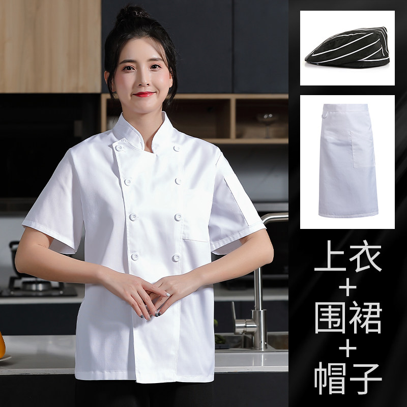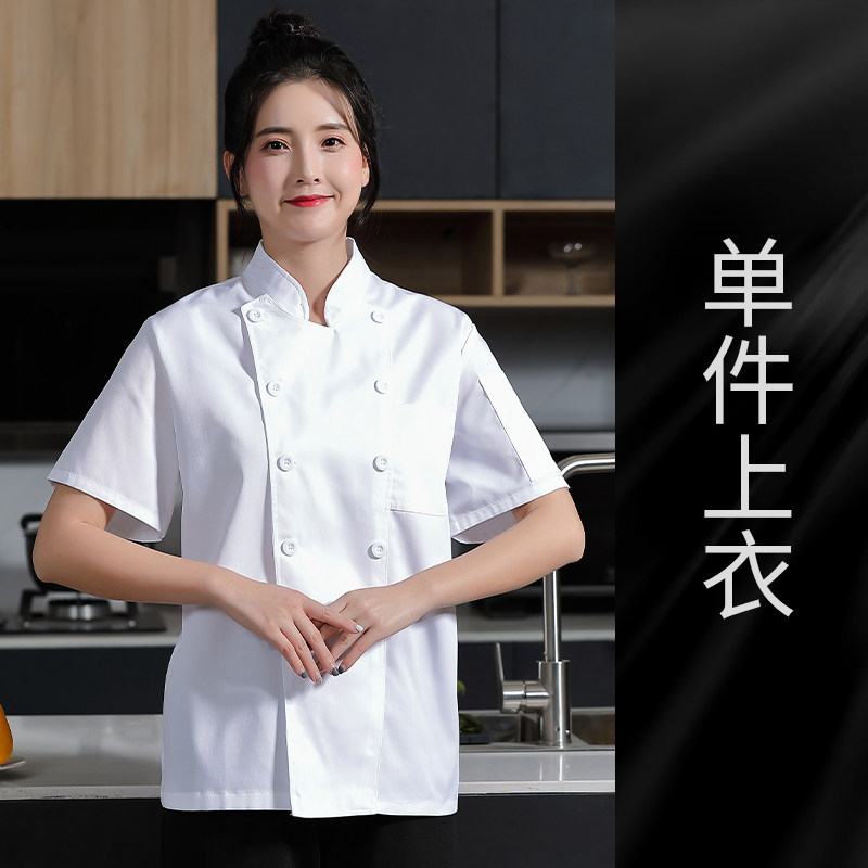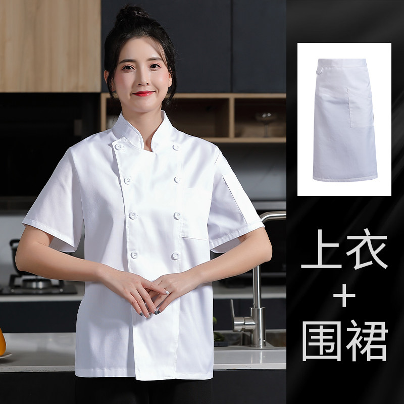 白色厨师工作服女款短袖夏季幼儿园食堂蛋糕店烘焙师后厨厨房工衣