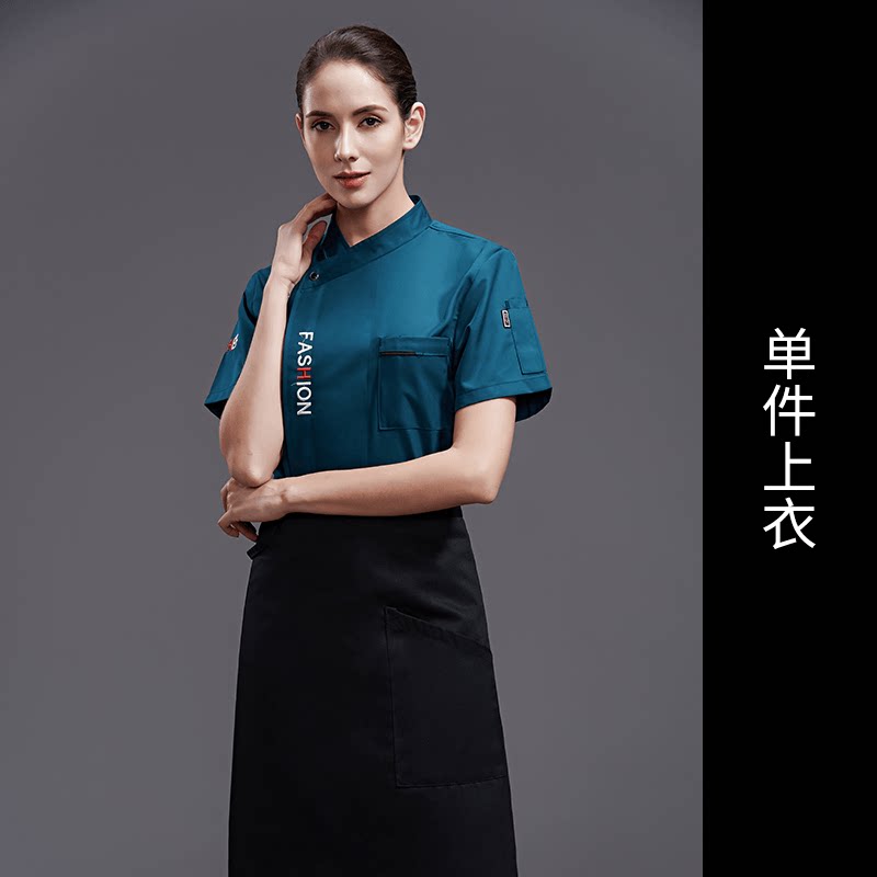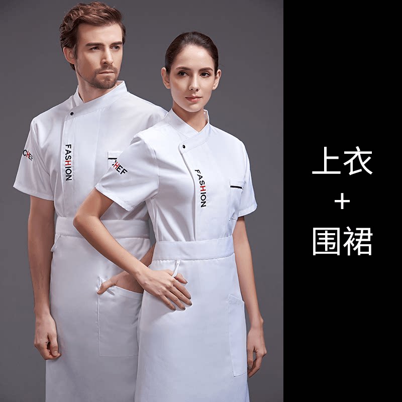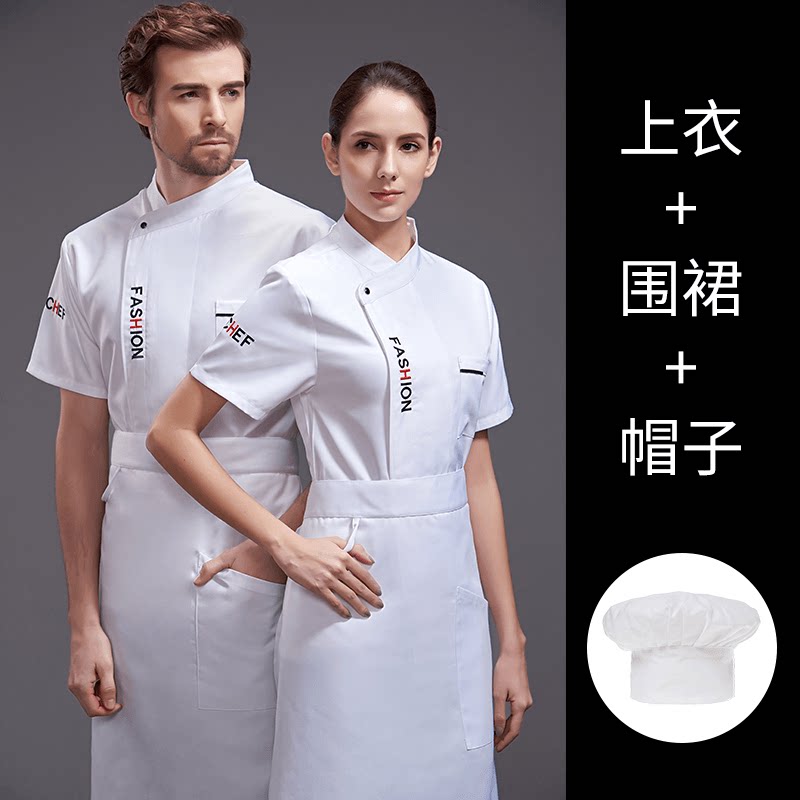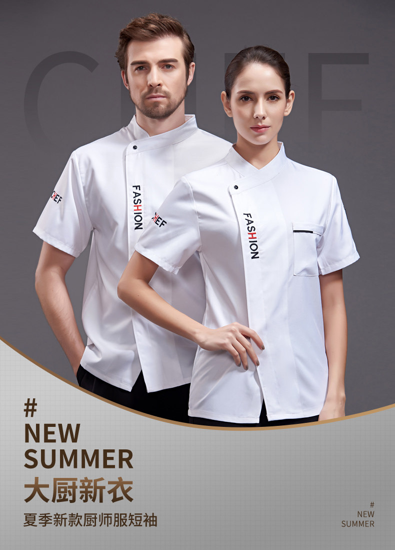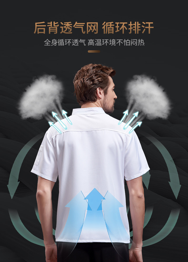 厨师工作服女款夏季透气薄款短袖定制印字餐饮酒店厨房透气网厨衣