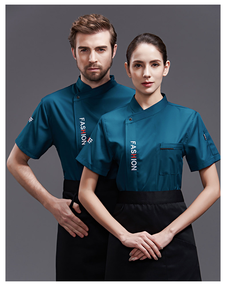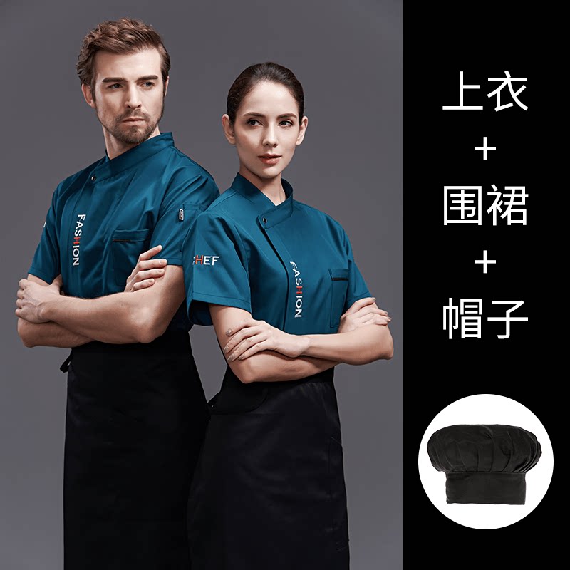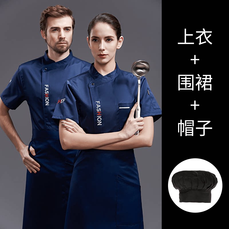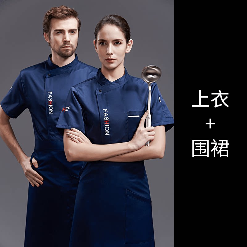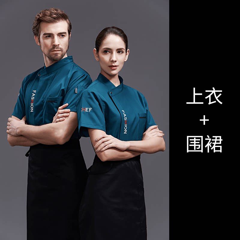 厨师工作服女款夏季透气薄款短袖定制印字餐饮酒店厨房透气网厨衣