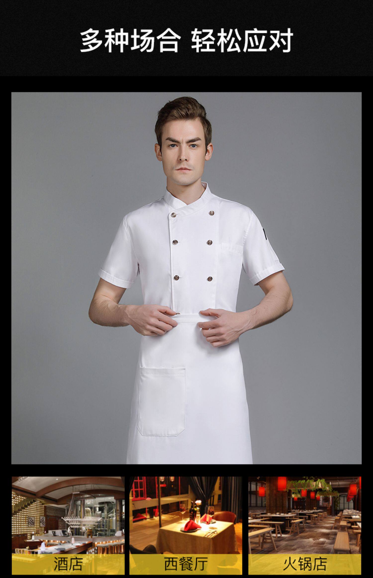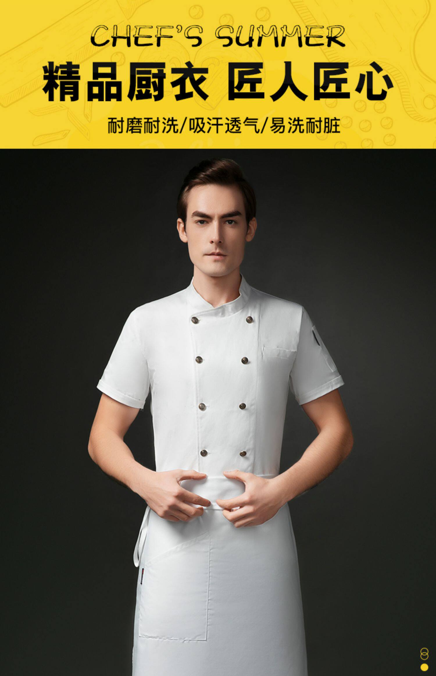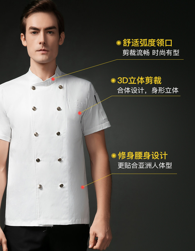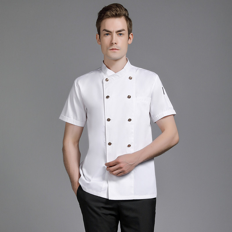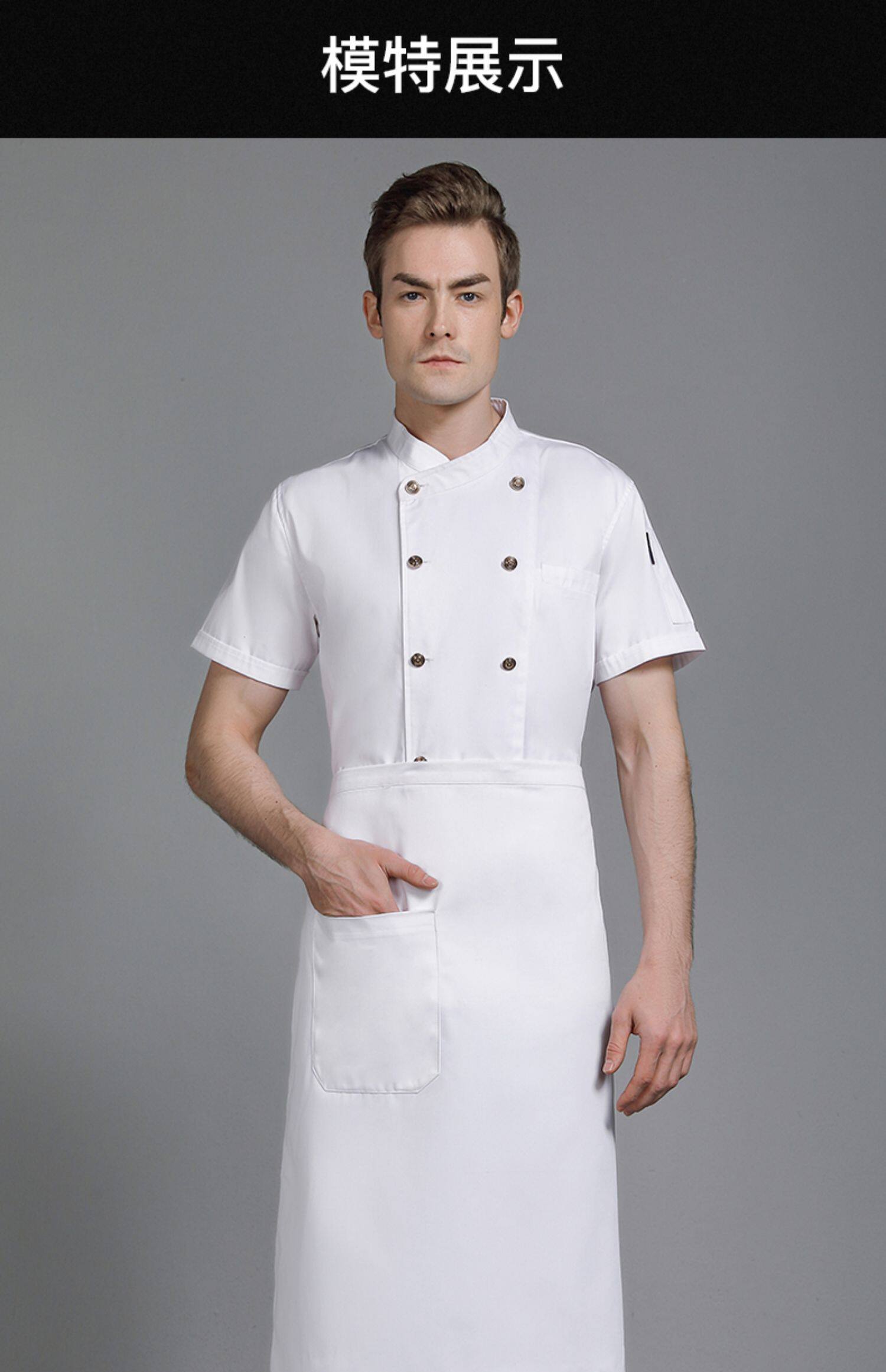 高级纯棉厨师工作服短袖男高端酒店餐饮厨房饭店西餐厅厨师长定制