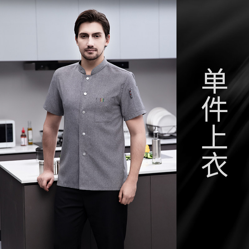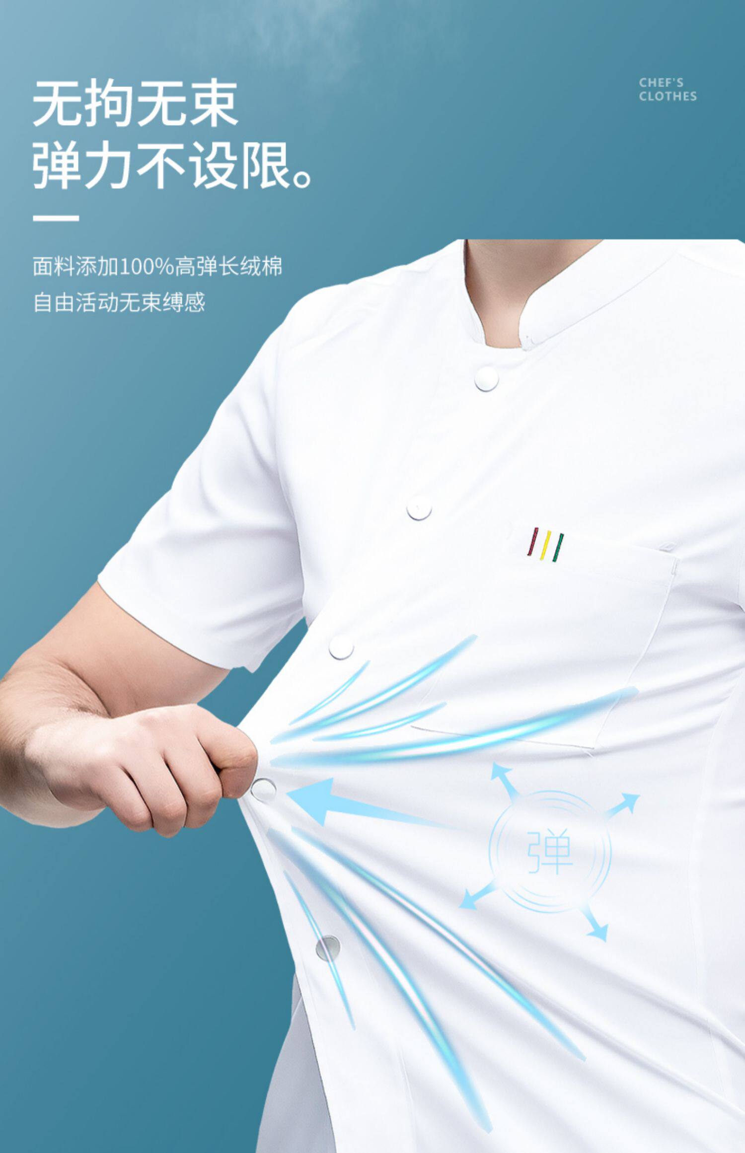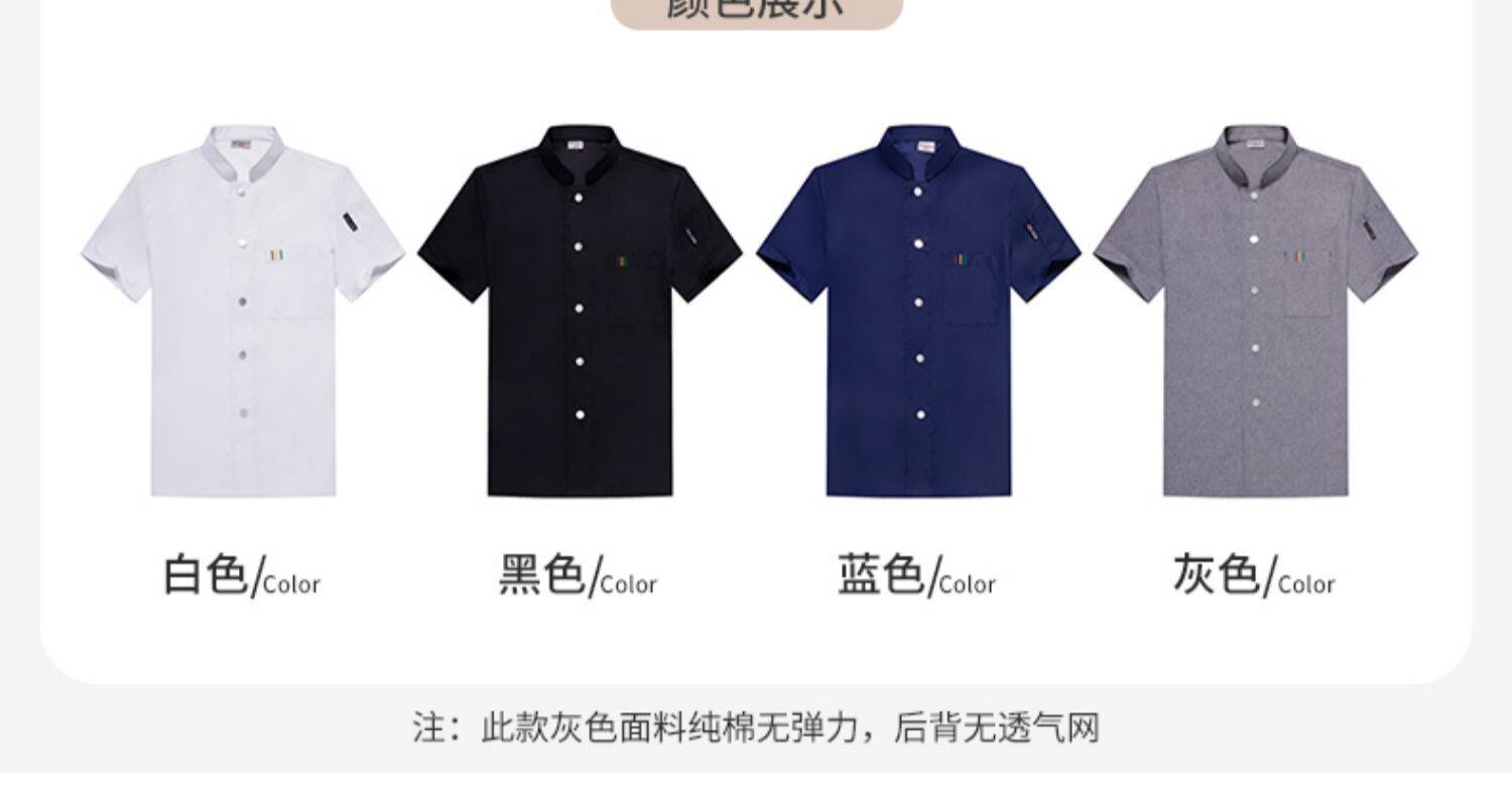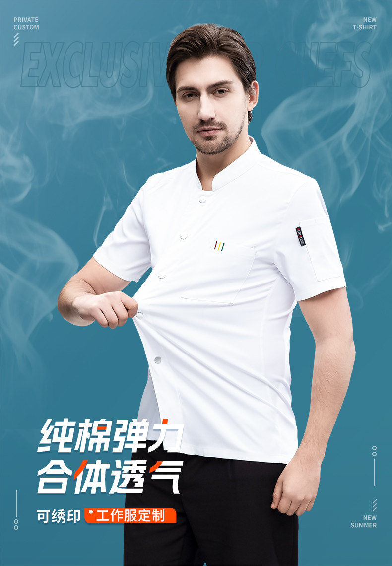 白色纯棉厨师工作服男短袖夏季餐饮酒店高档弹力服装厨房专用衣服