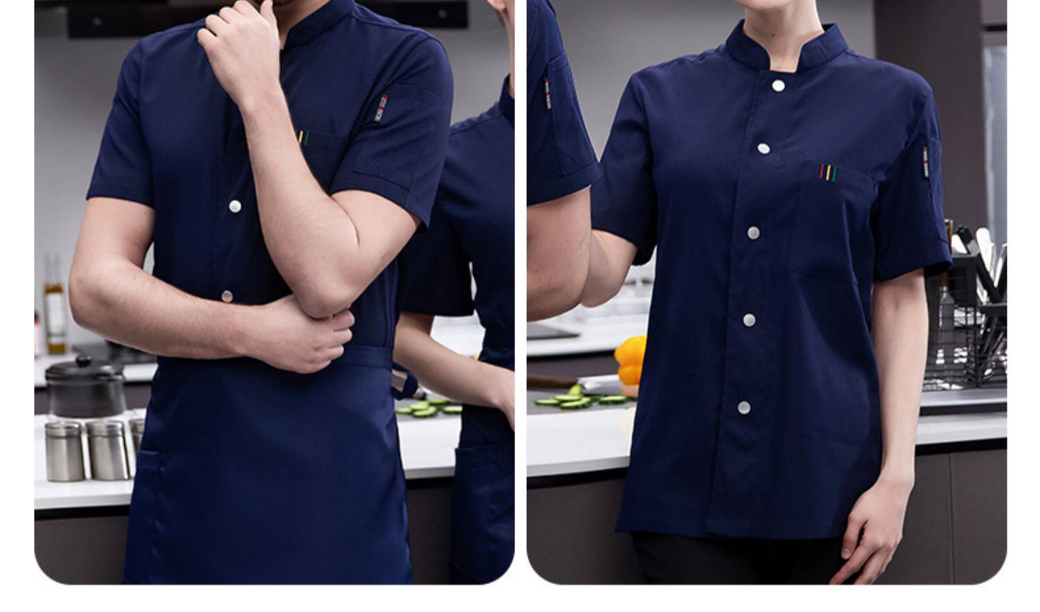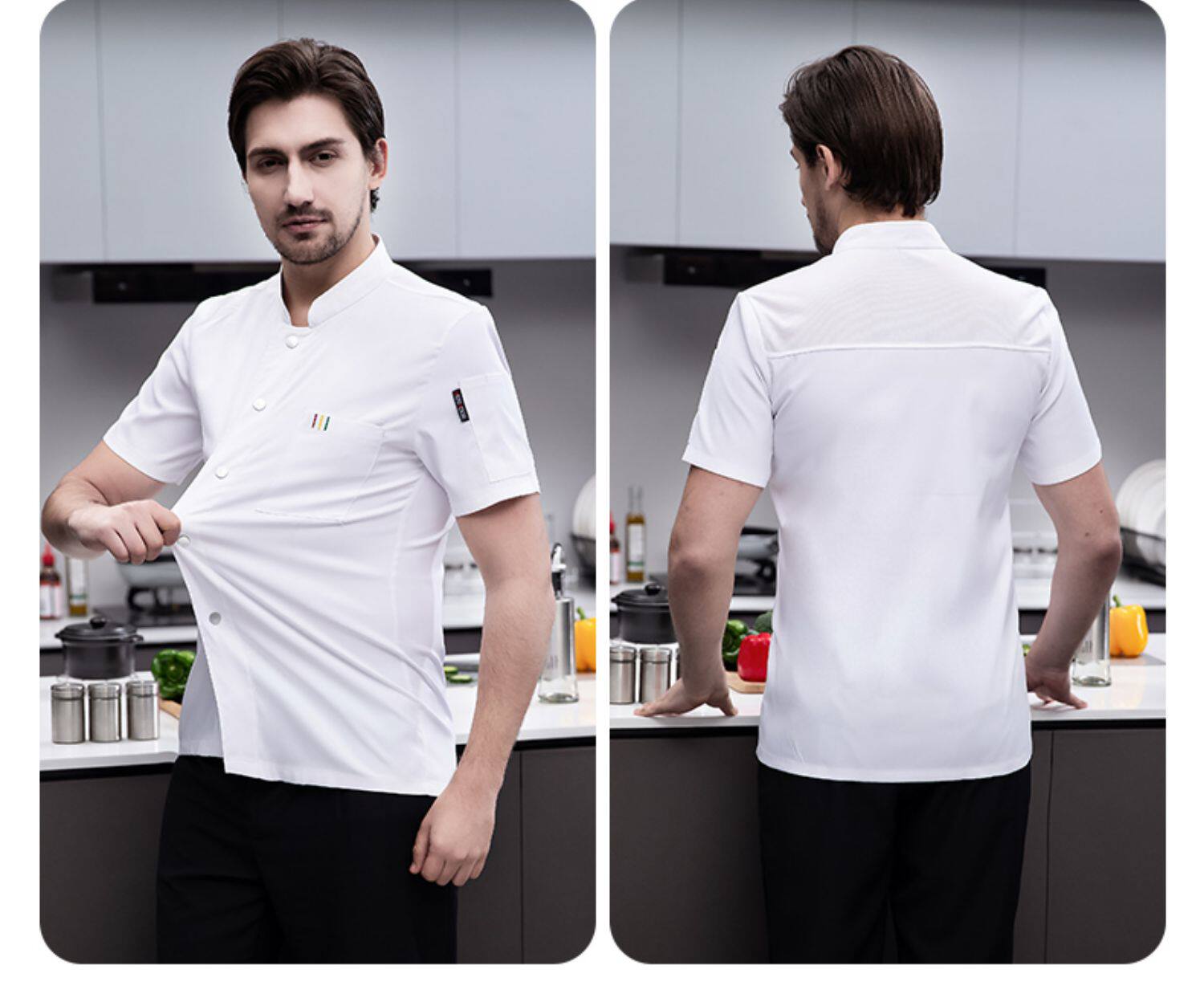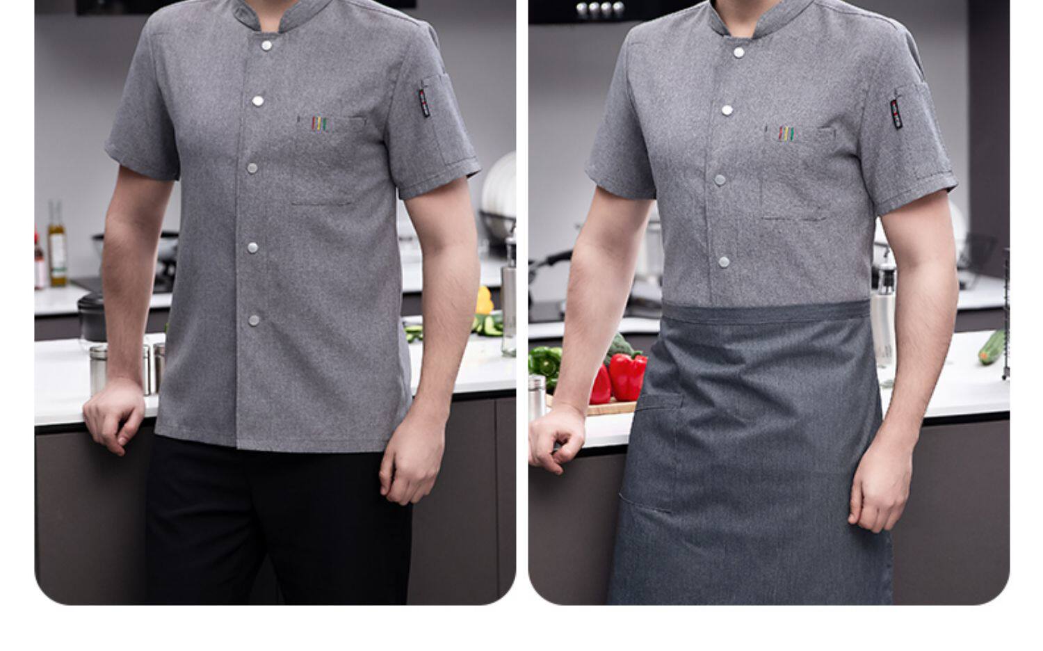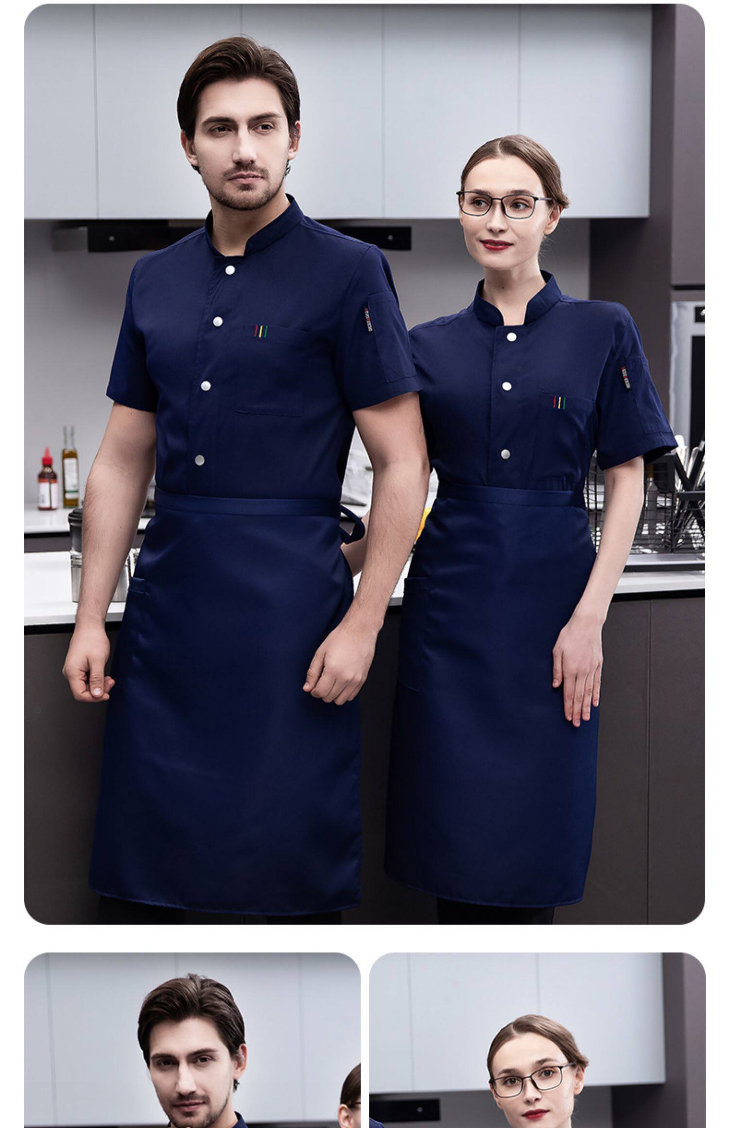 白色纯棉厨师工作服男短袖夏季餐饮酒店高档弹力服装厨房专用衣服