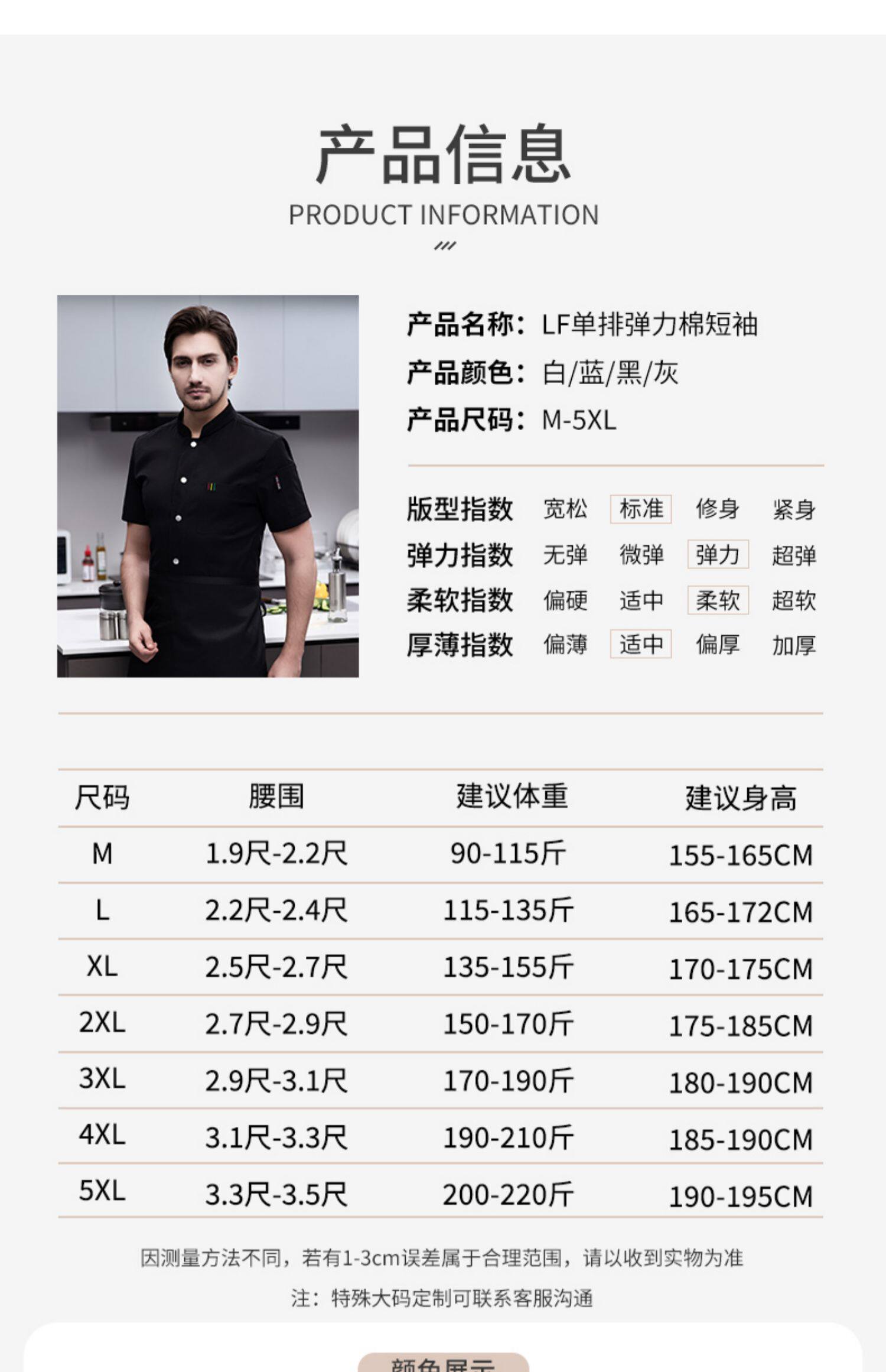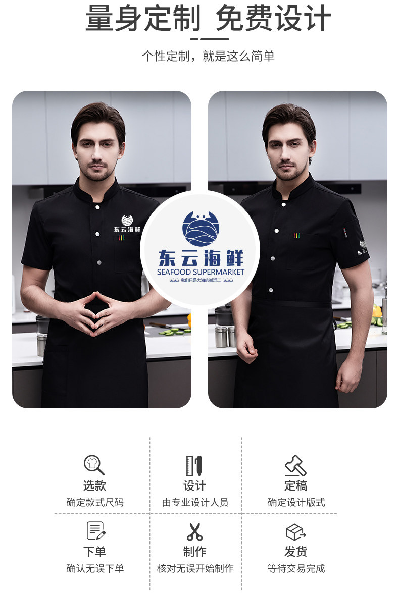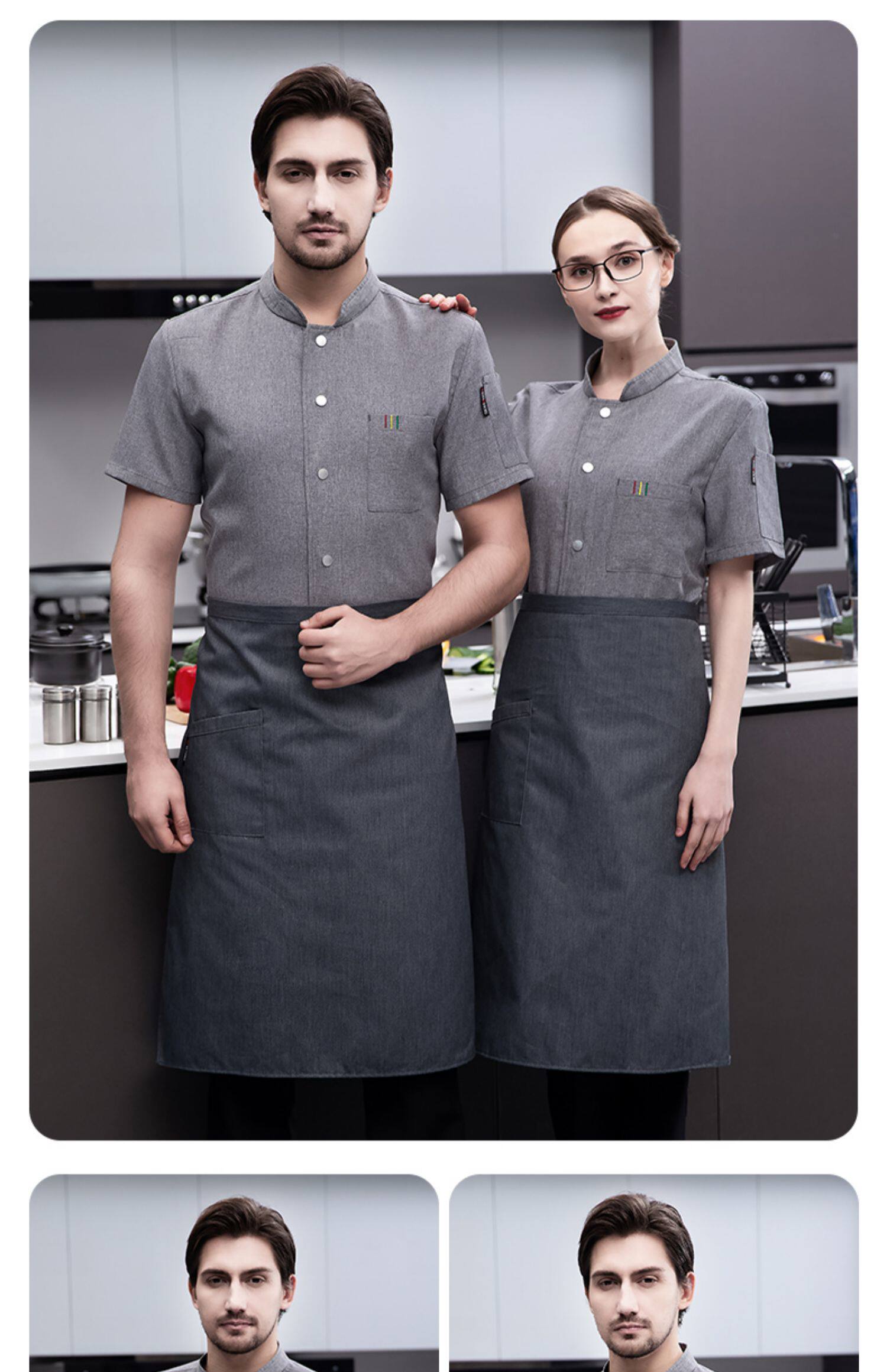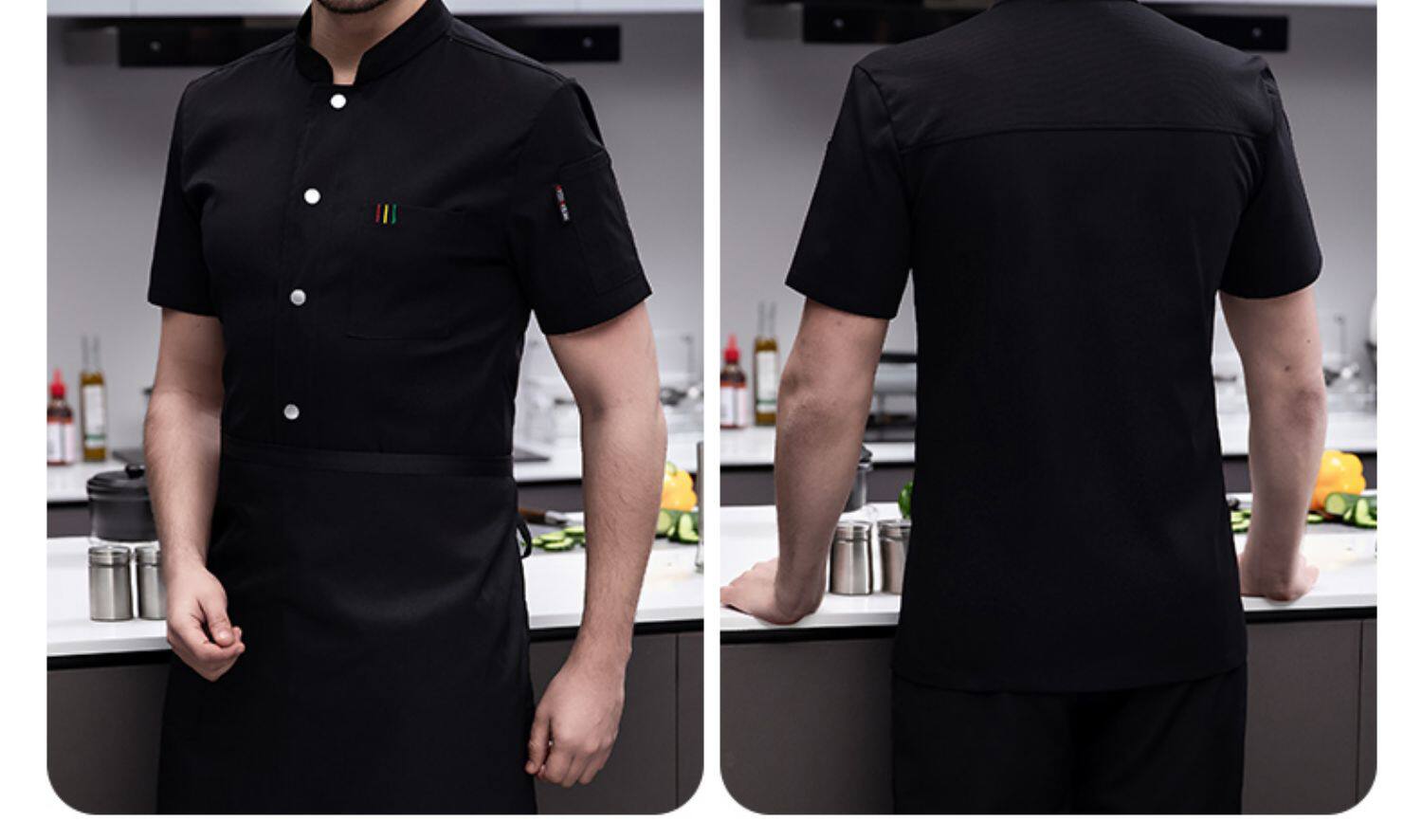 白色纯棉厨师工作服男短袖夏季餐饮酒店高档弹力服装厨房专用衣服