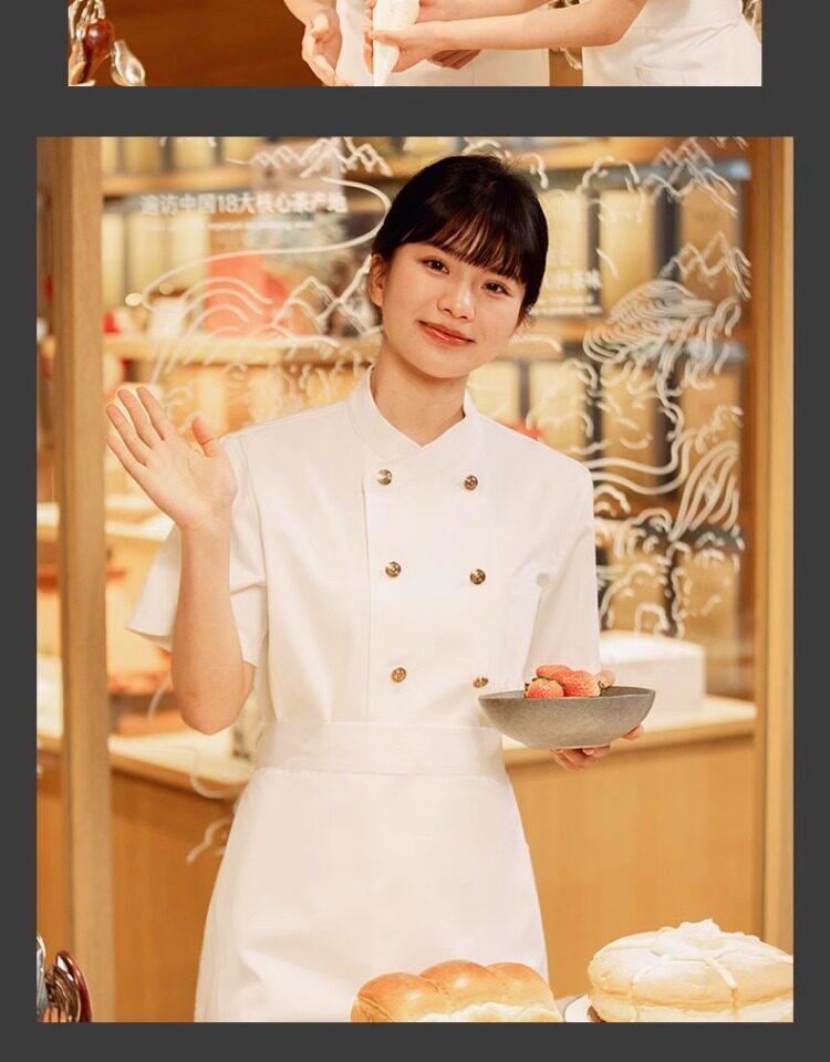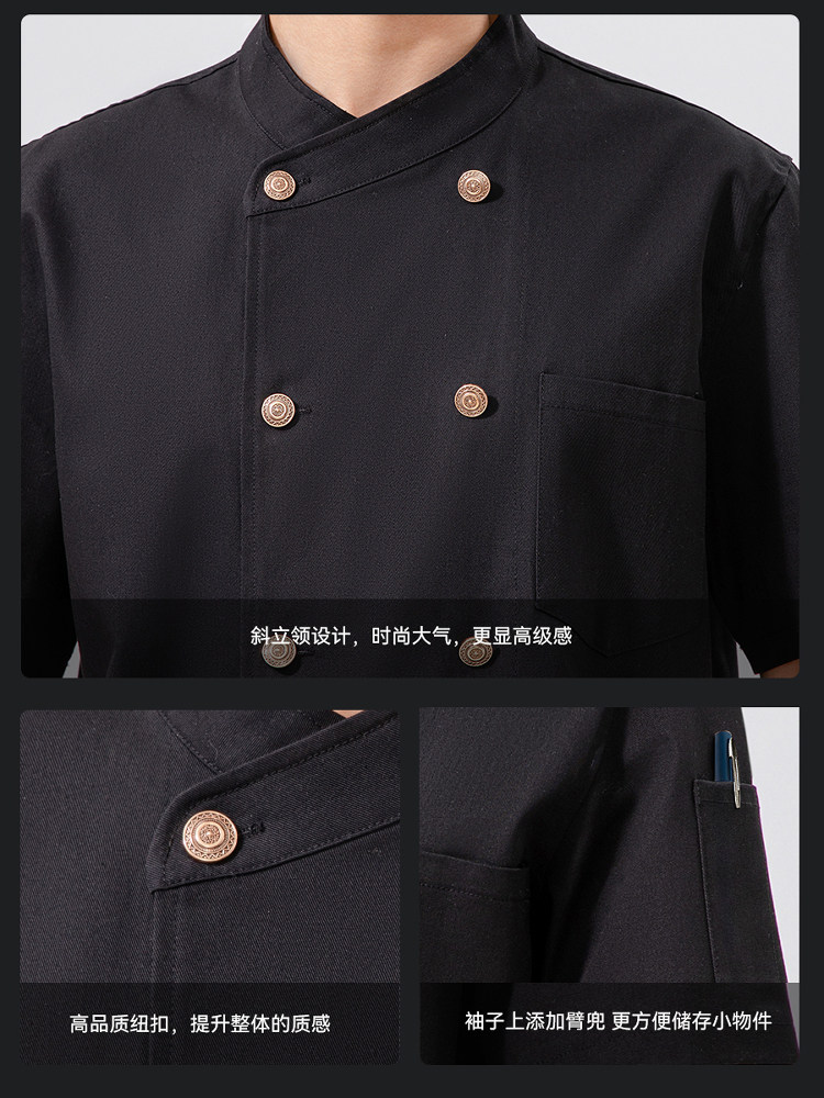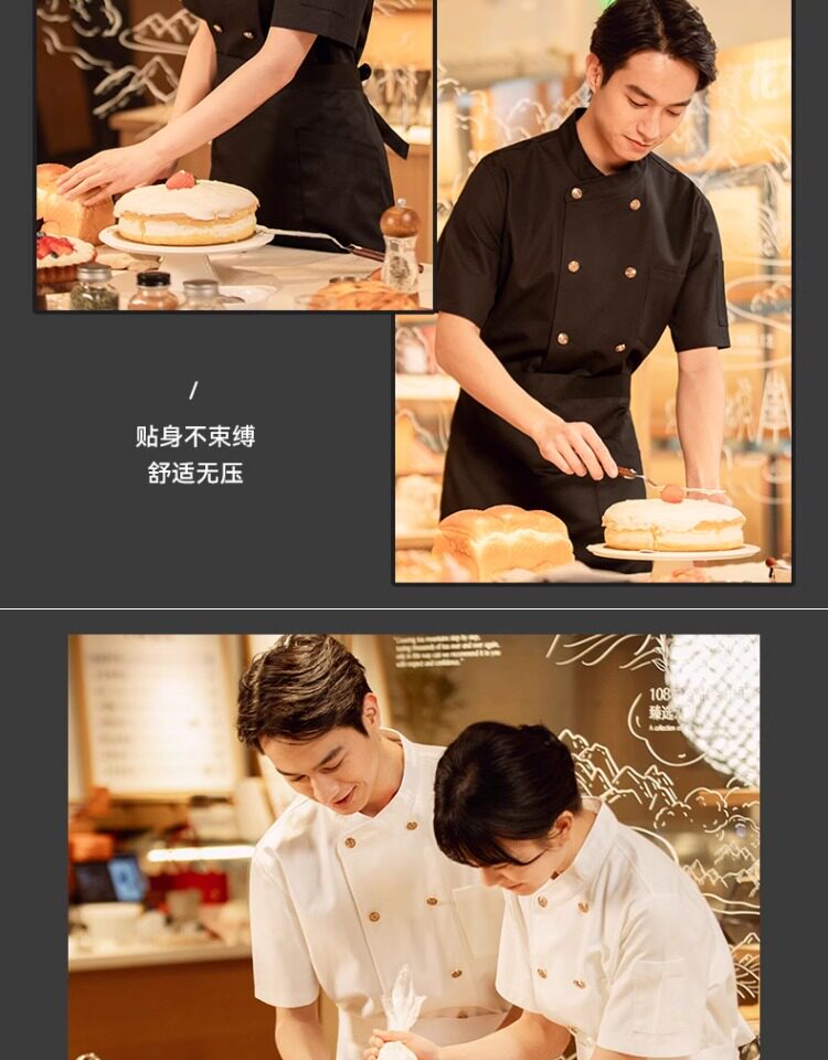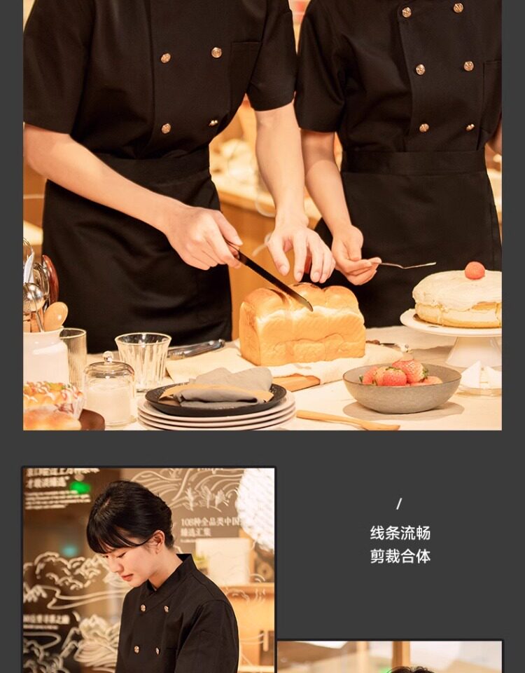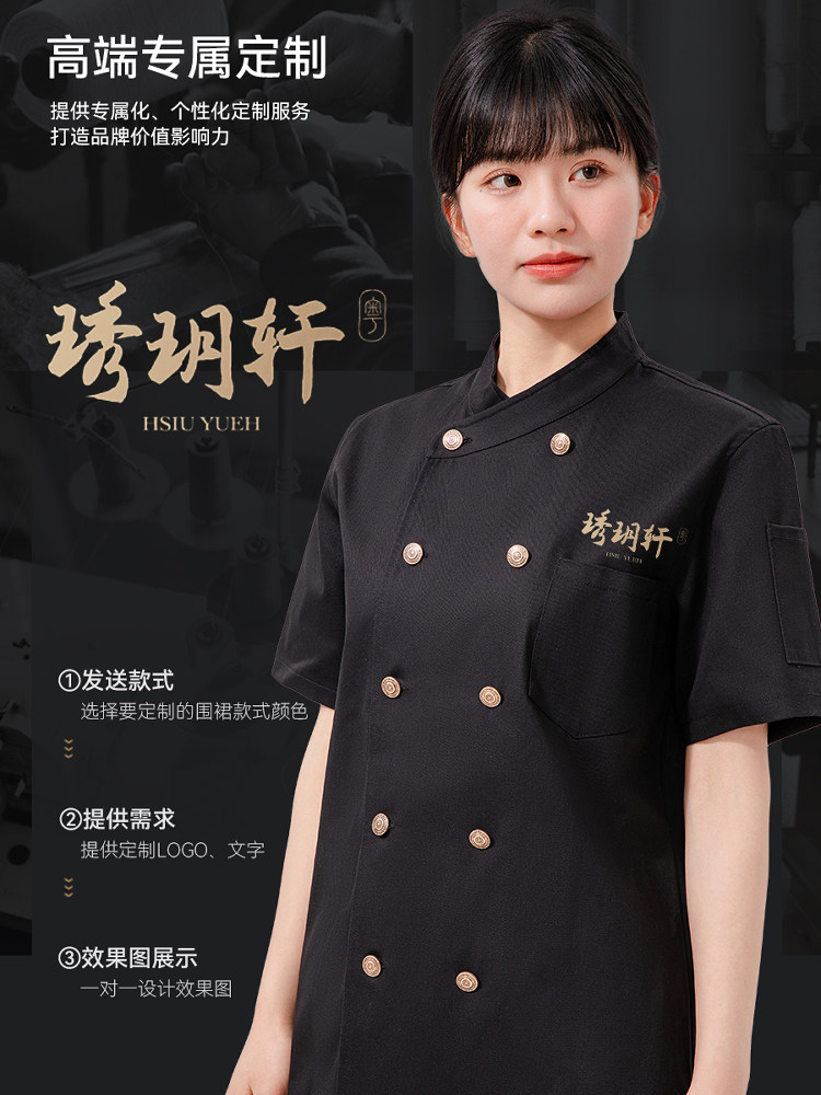 高端纯棉厨师工作服短袖夏季烘焙面点师酒店饭店后厨房餐饮工装男