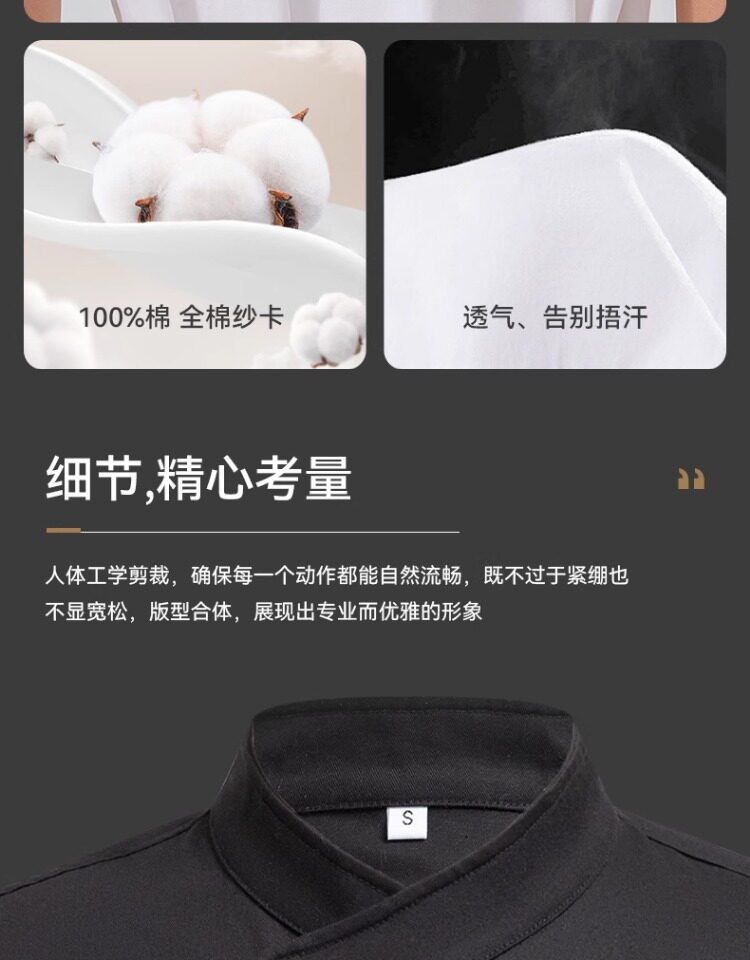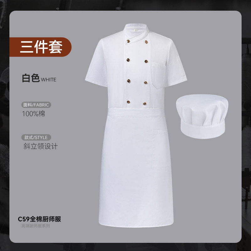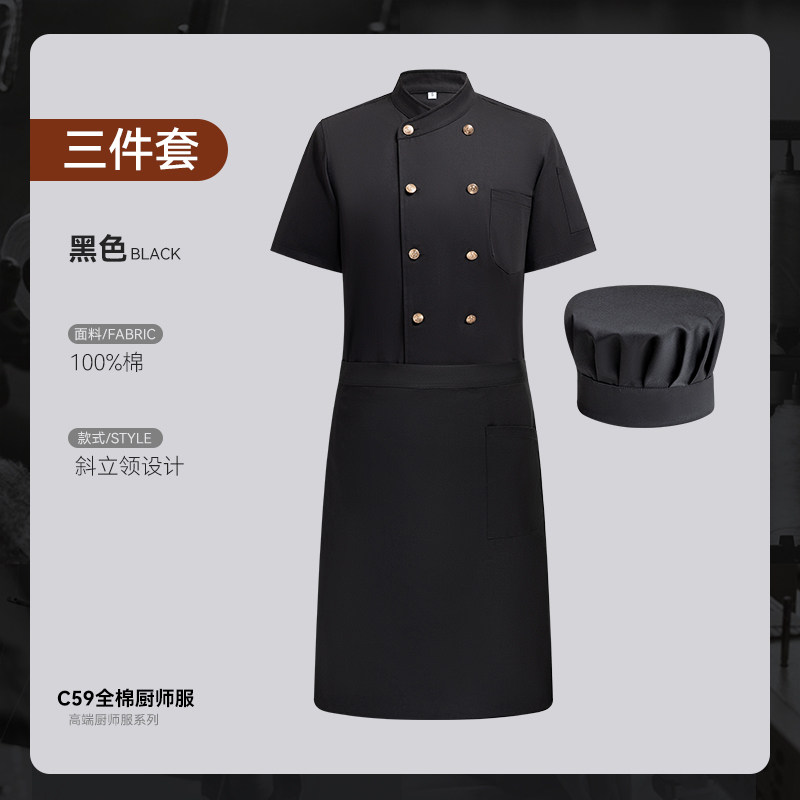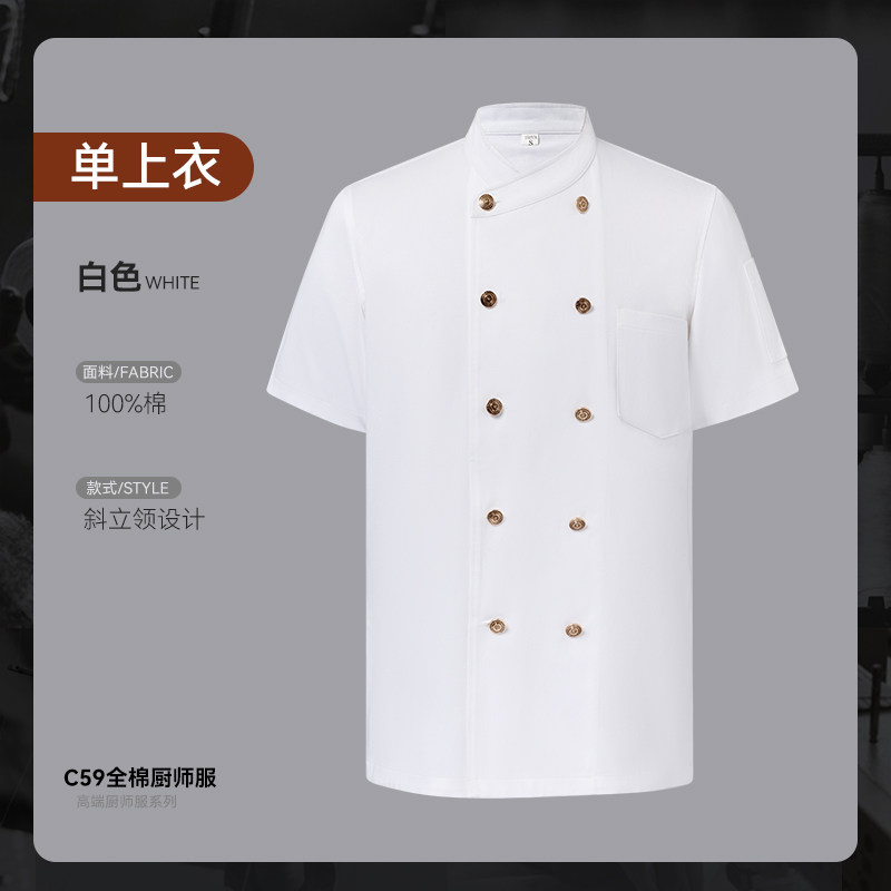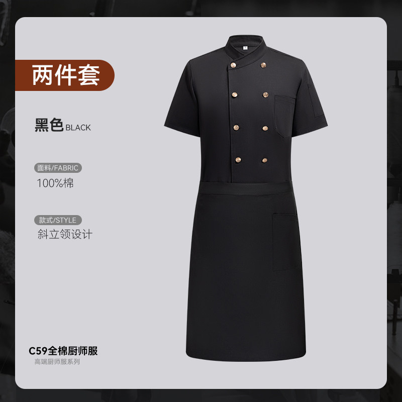 高端纯棉厨师工作服短袖夏季烘焙面点师酒店饭店后厨房餐饮工装男