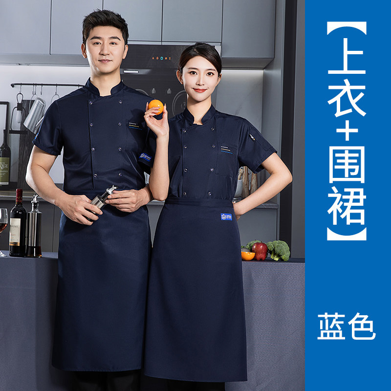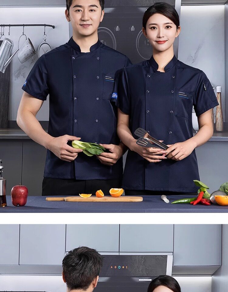 夏季餐饮厨师服短袖薄款透气餐厅酒店饭店厨房食堂后厨工作服定制