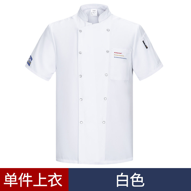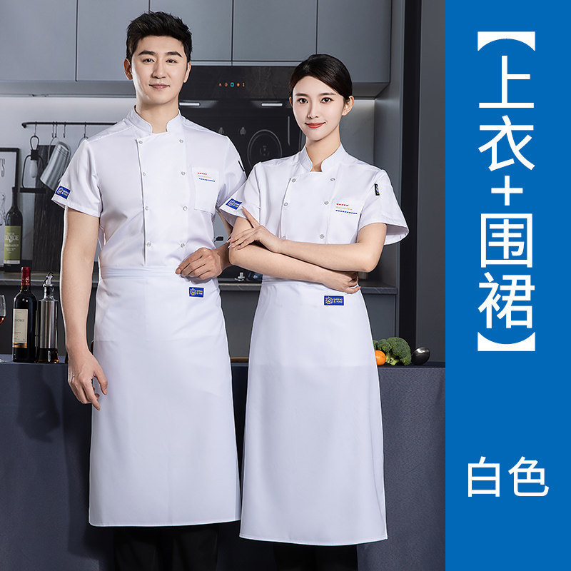 白色厨师工作服短袖薄款透气夏季酒店饭店幼儿园食堂厨房定制套装