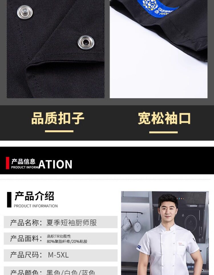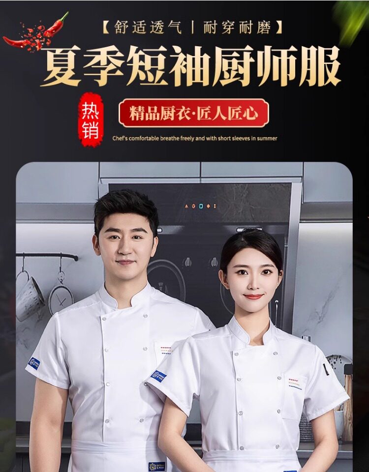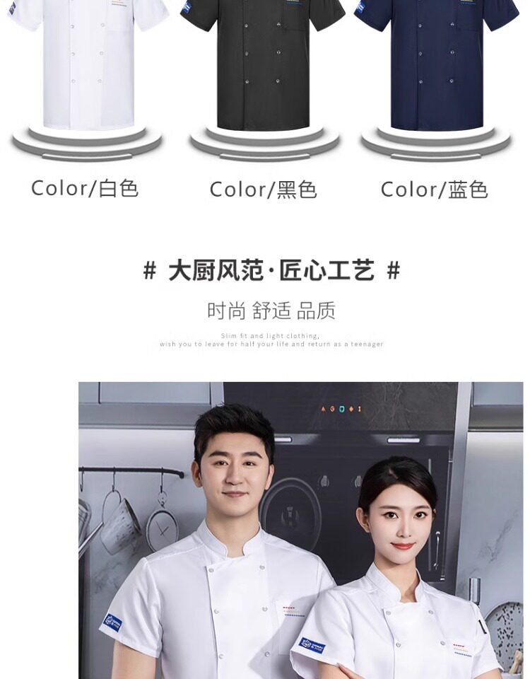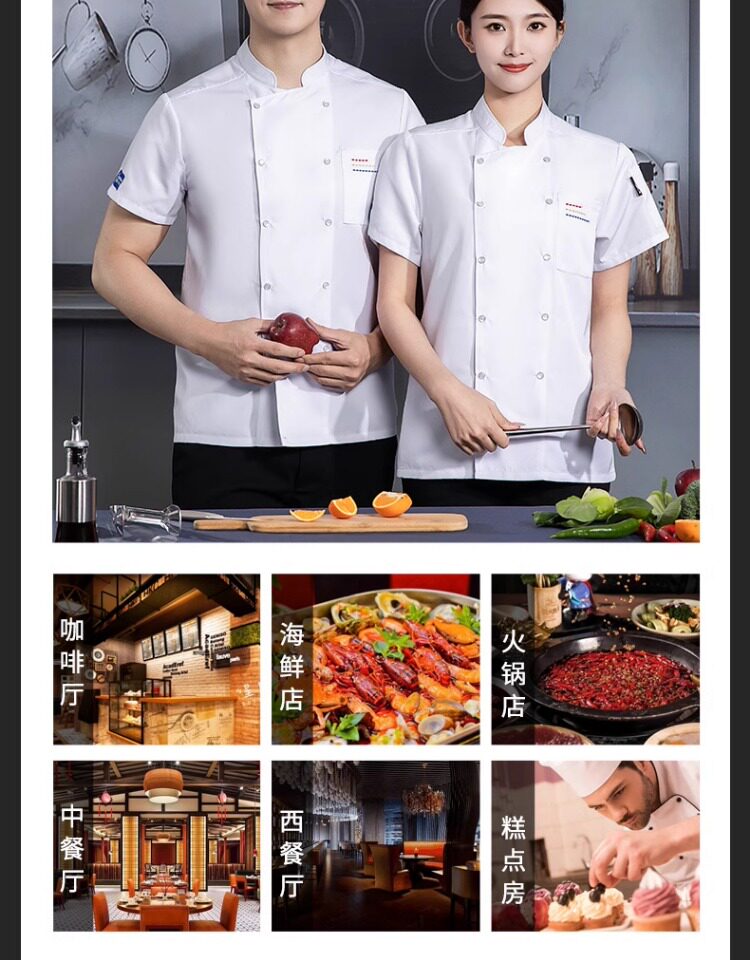 夏季厨师工作服短袖薄款透气餐饮高端星级酒店饭店后厨房工衣定制