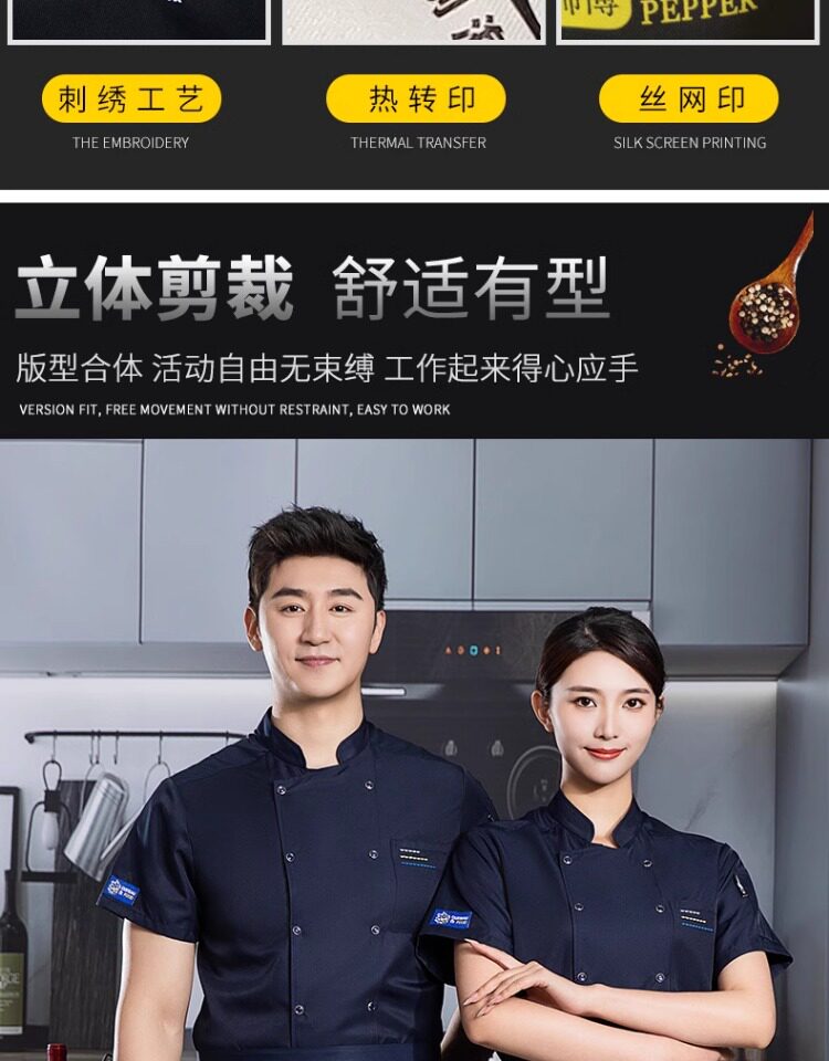 冰丝厨师服工作服短袖男餐饮烘焙饭店厨房面点透气定制厨衣印logo
