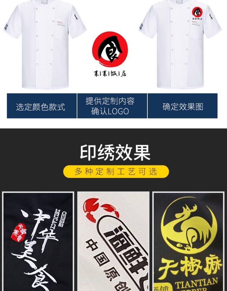 高端刺绣厨师工作服夏季短袖餐饮酒店西餐厅面点烘培师专用定制男