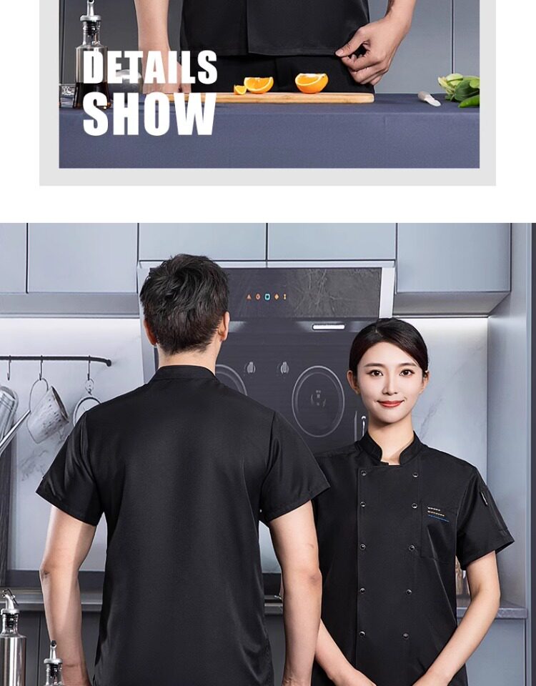 高档透气厨师工作服短袖服装男餐饮餐厅厨房后厨面点师弹力半袖女
