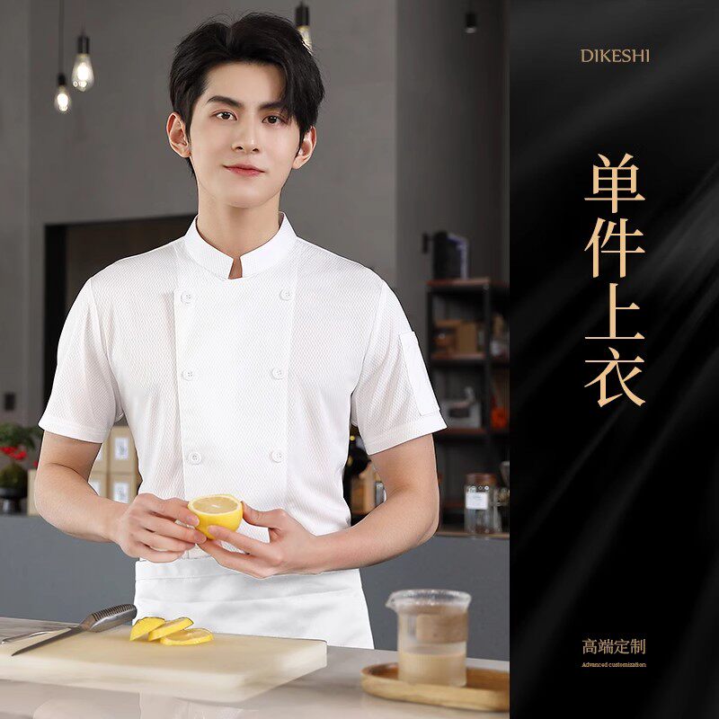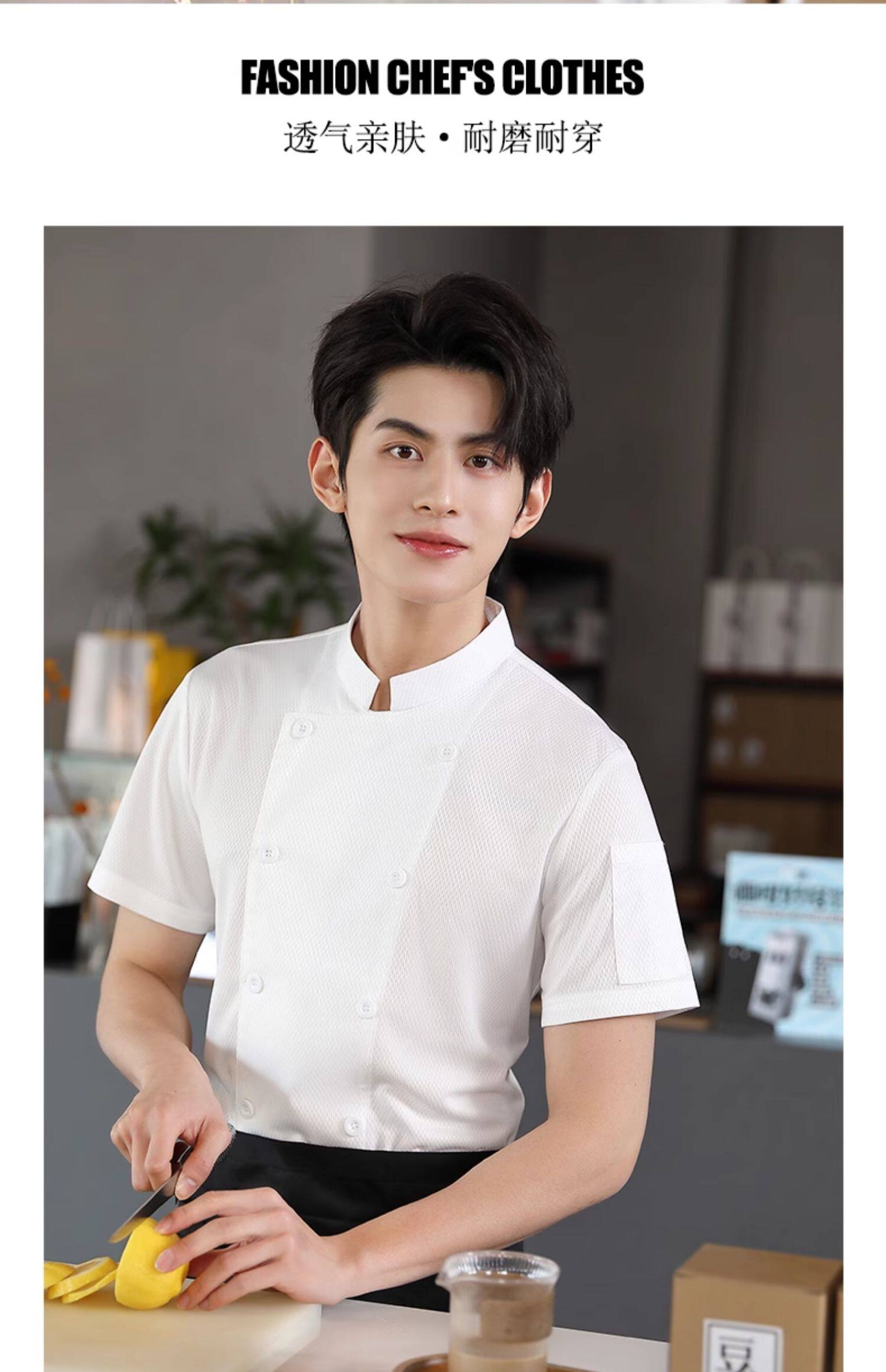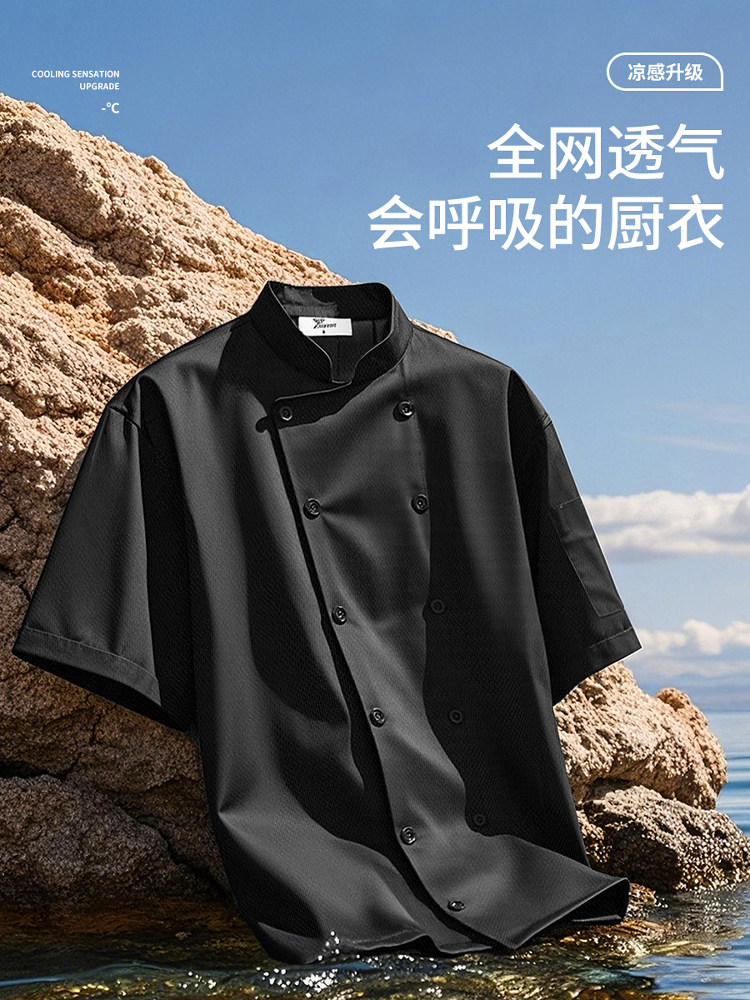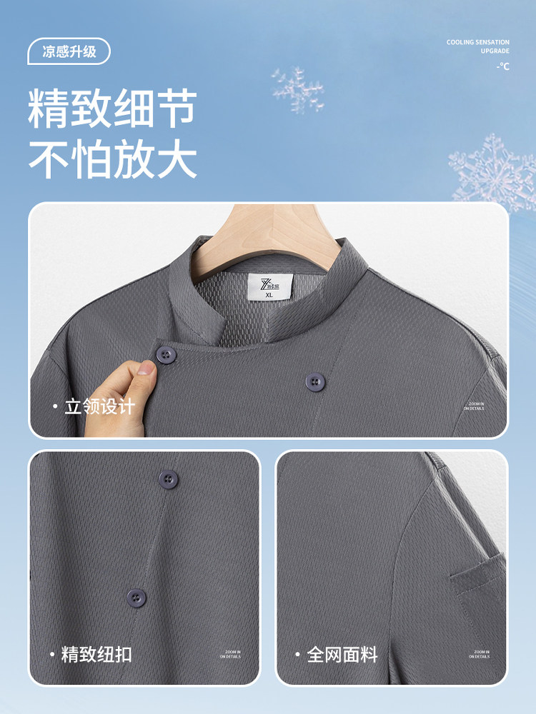 冰丝厨师工作服短袖速干透气网夏季酒店饭店餐饮食堂厨房薄款服装