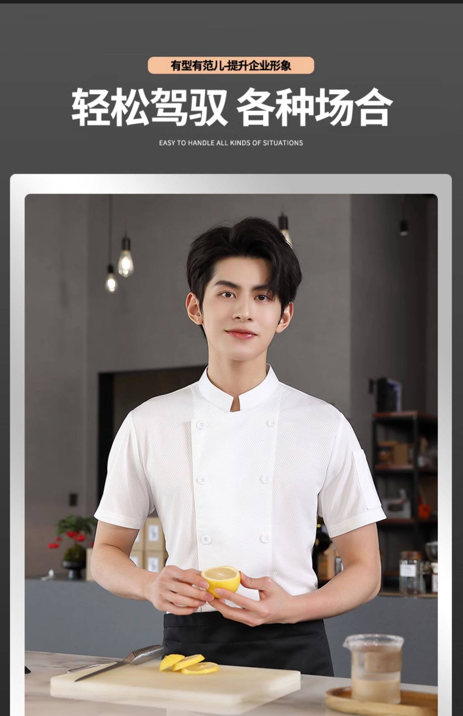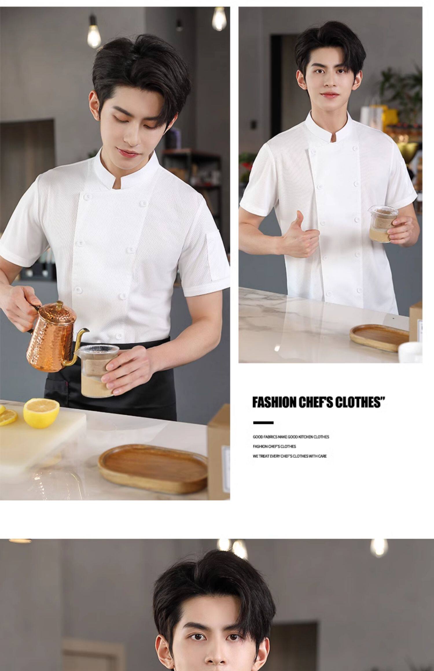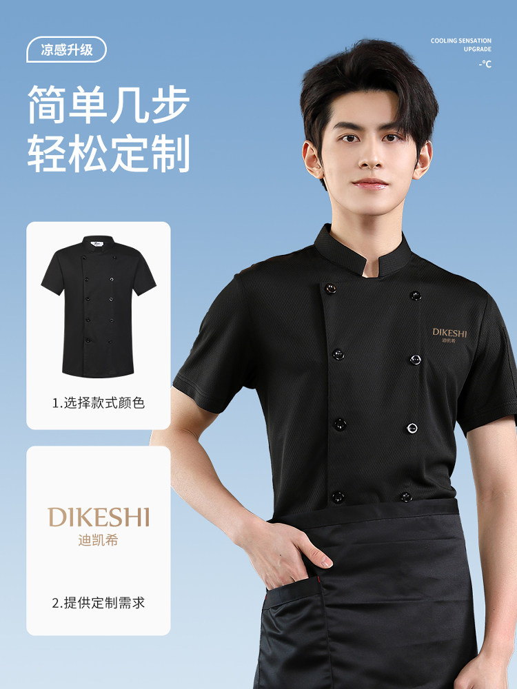 冰丝厨师工作服短袖速干透气网夏季酒店饭店餐饮食堂厨房薄款服装