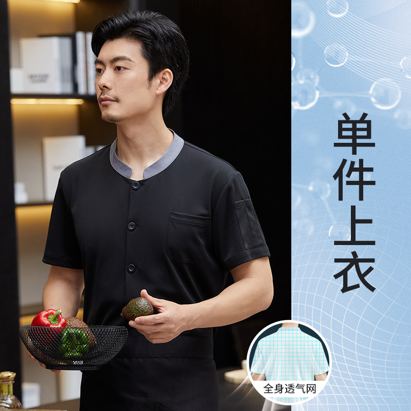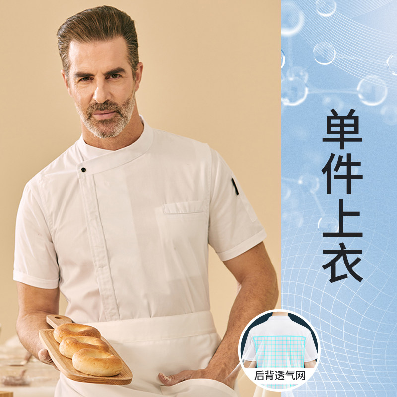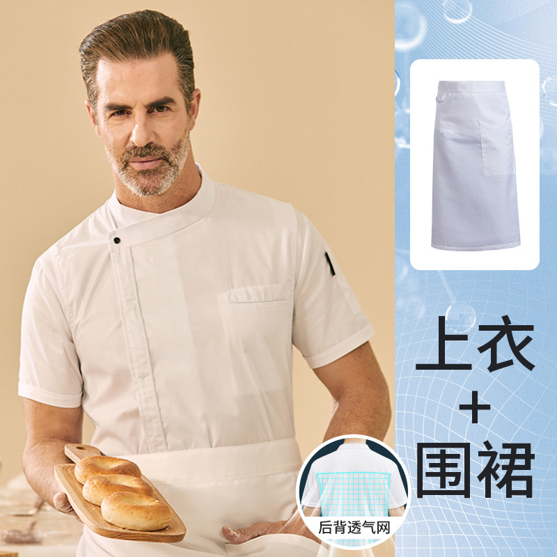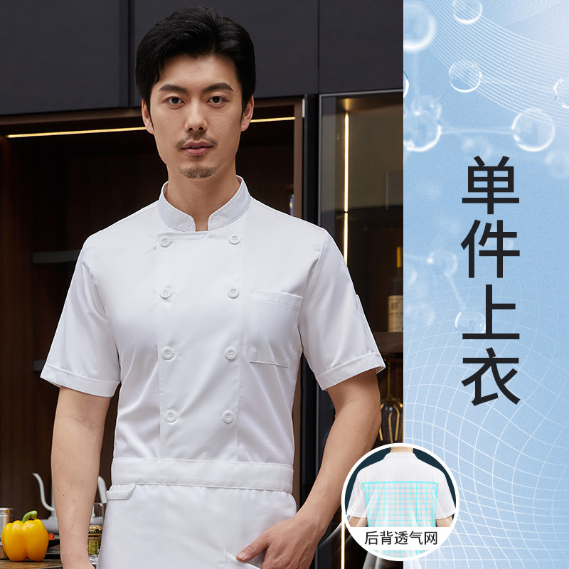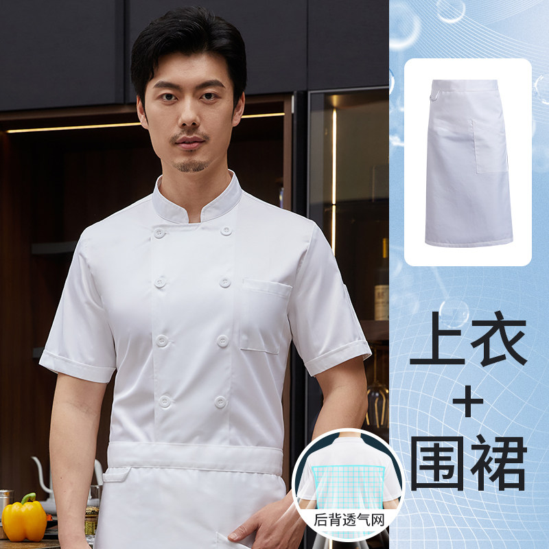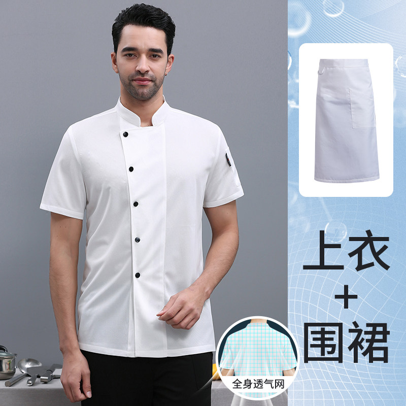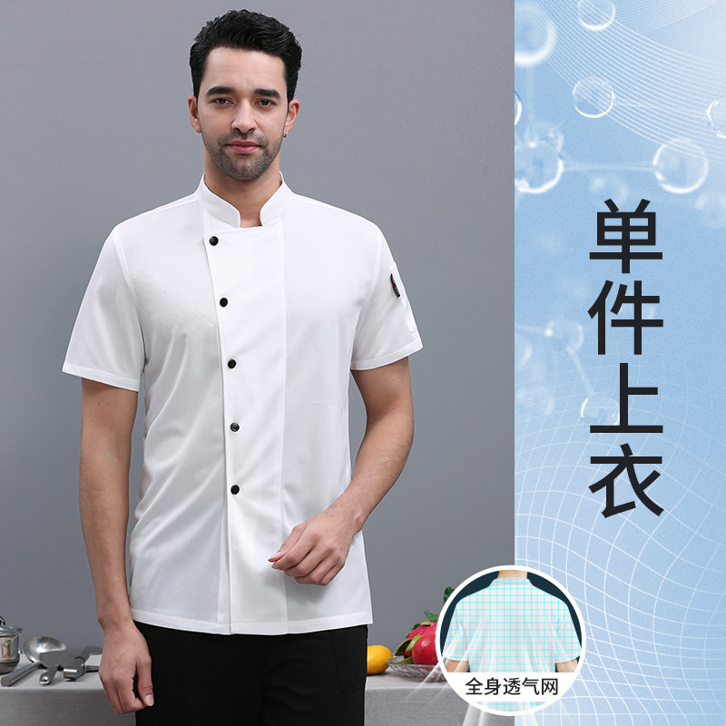 冰丝夏天厨师工作服短袖薄款透气网男装餐饮酒店厨房夏季白色套装